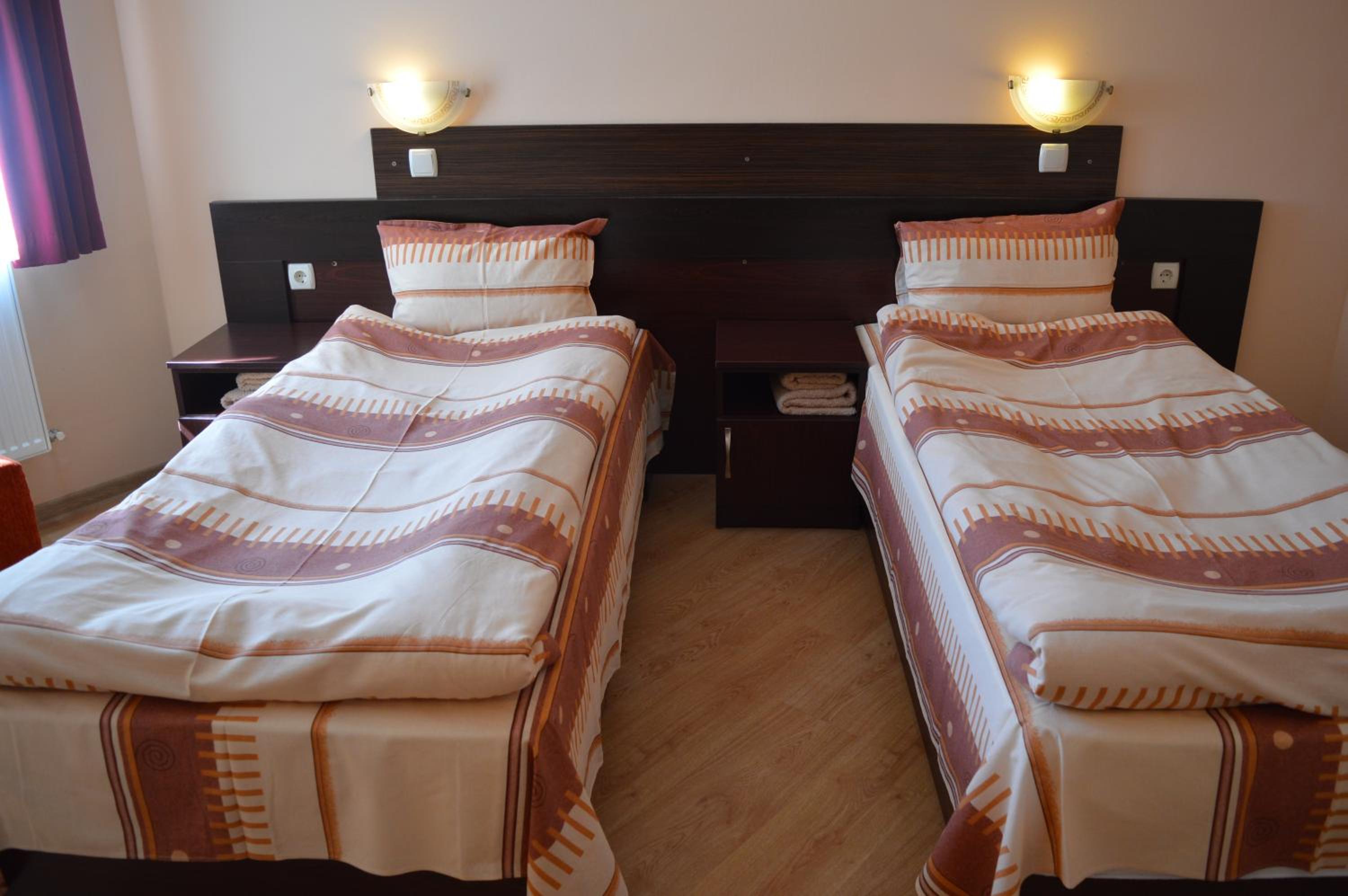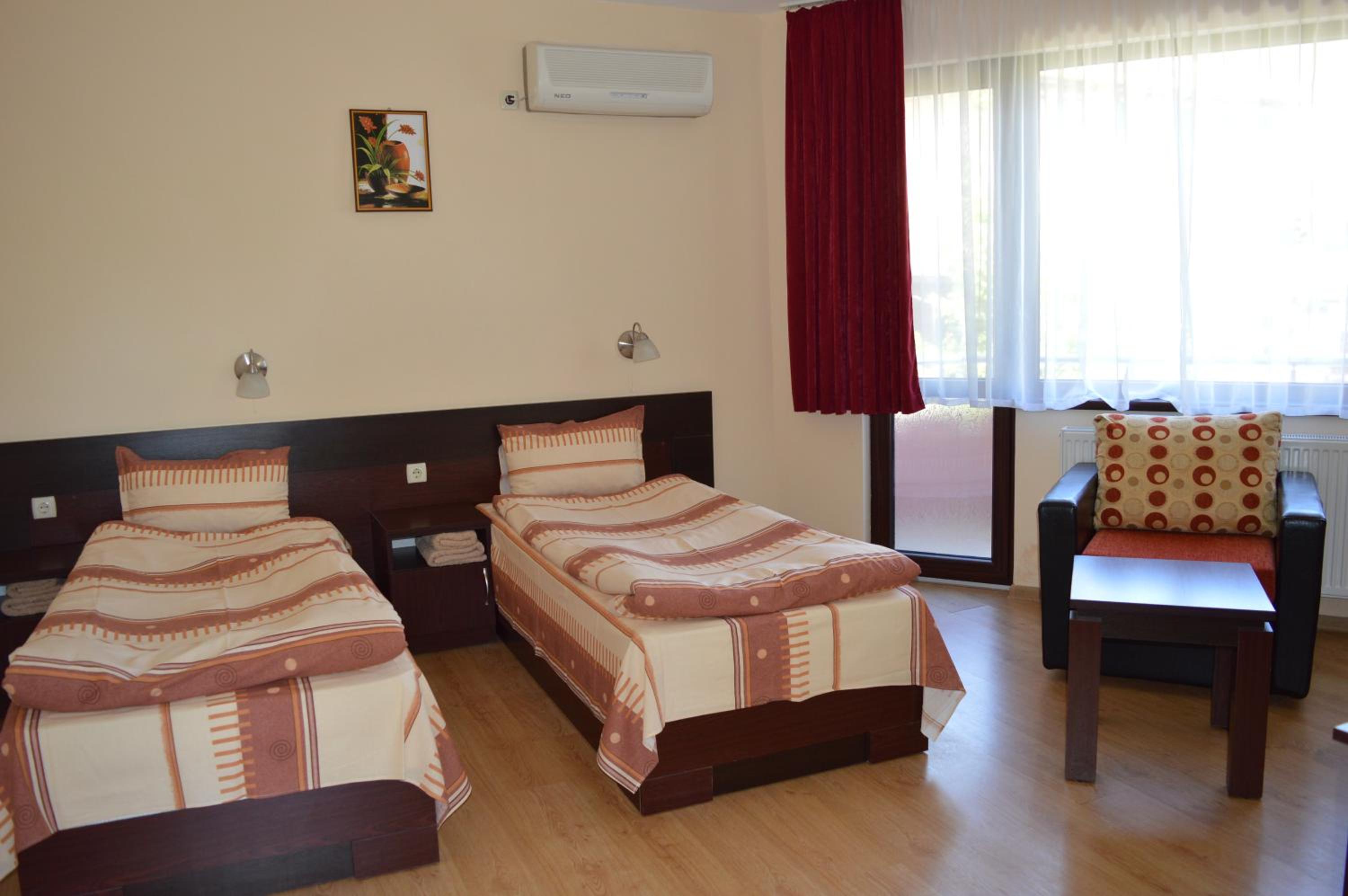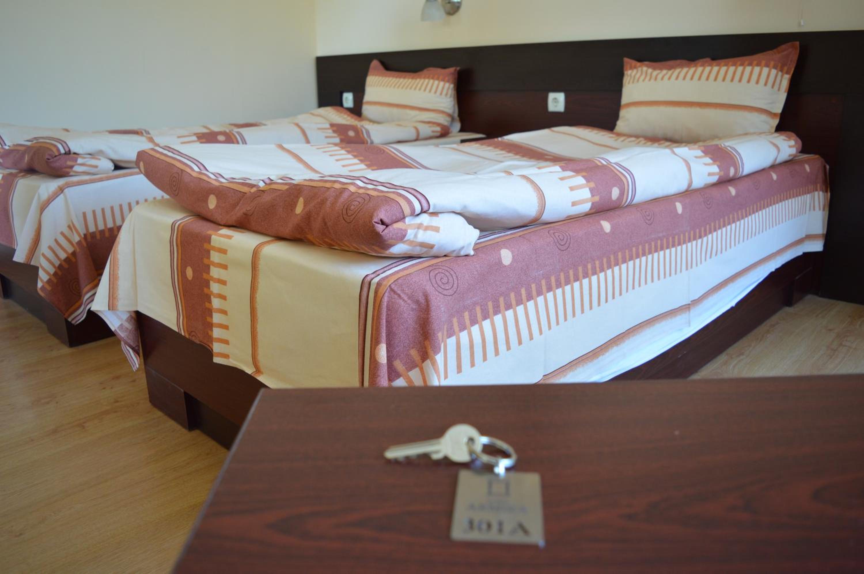 Стаите са големи и удобни, банята е най-голямата, която сме имали в хотел. Отношението на собствениците към гостите е отлично. Към комплекса има обособен собствен паркинг. В растотанта има разнообразна храна приготвена много вкусно. На закуска има прекрасни мекици или пържени филийки. Разположението на хотела е на 2 минути пеша от центъра и музеите. Благодарим за прекрасното преживяване!