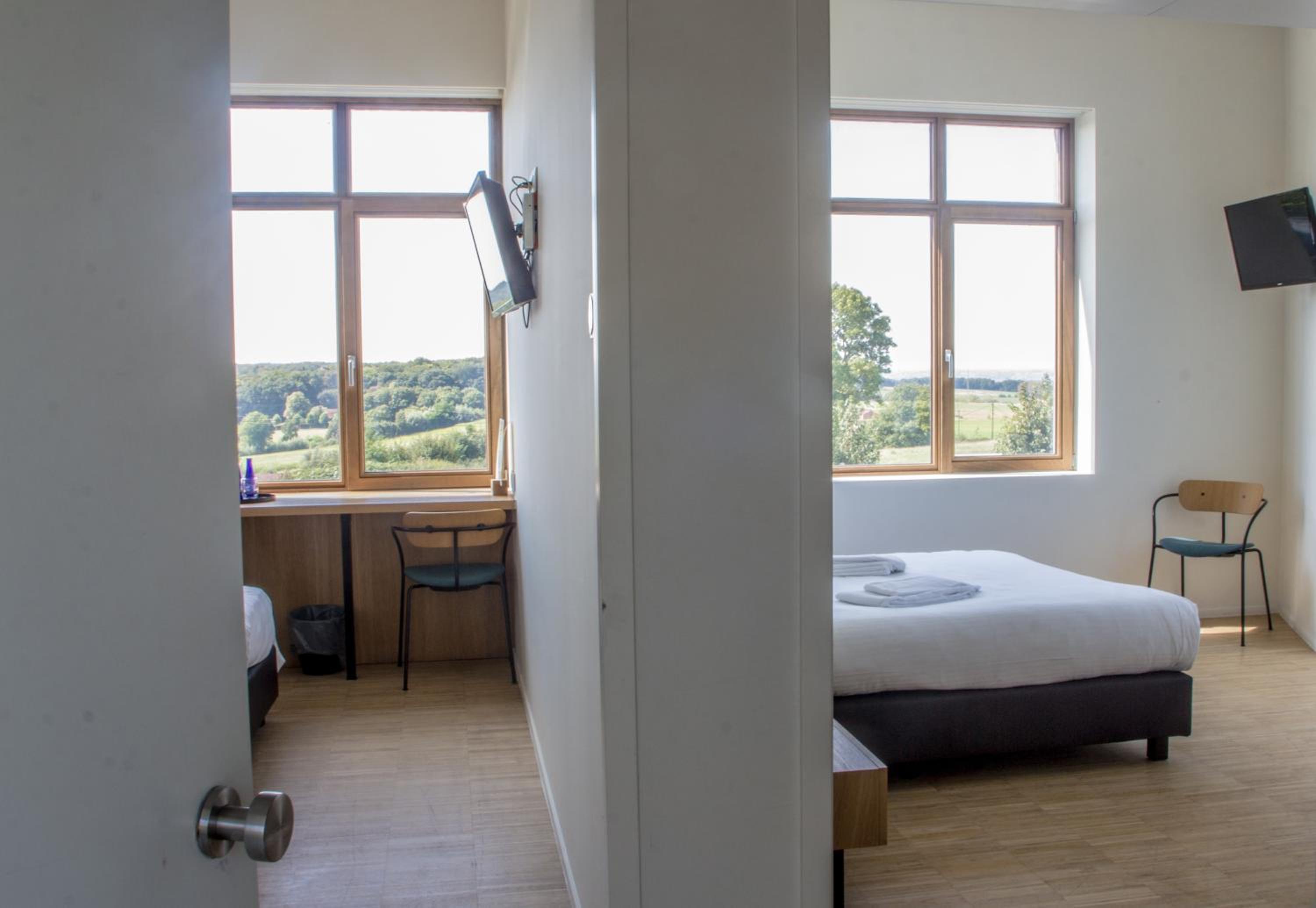 Hotond Sporthotel in Kluisbergen offers modern rooms with air conditioning, free WiFi, and flat-screen TVs. Each room is elegantly furnished, providing a comfortable stay for guests.