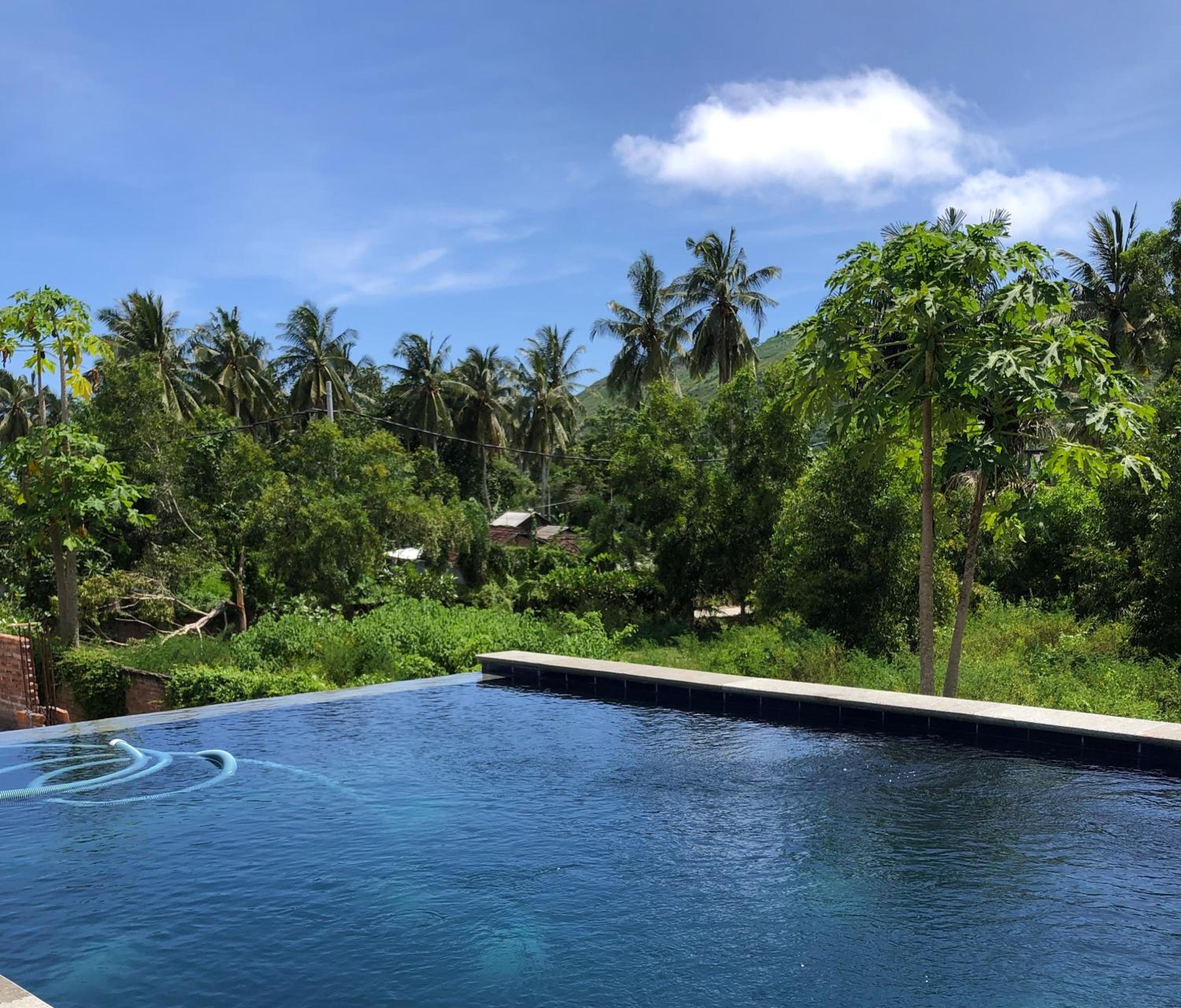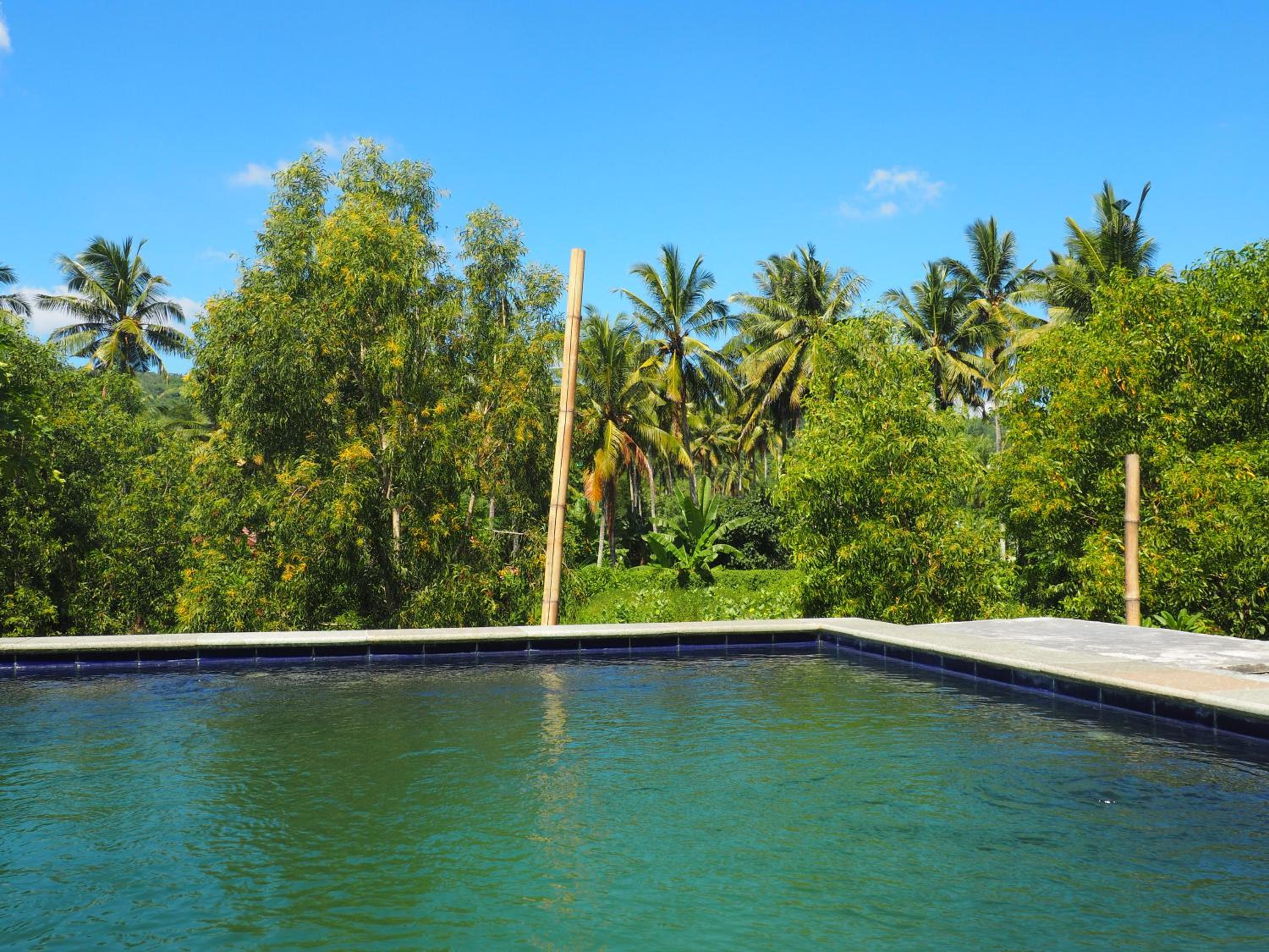 Pool didn't look very inviting for swimming. Might be due to rainy season and loads of rain. Pity, that the surroundings (e.g. veranda on 2nd floor) are not very well taken care of. Would be lovely corners to hang out.