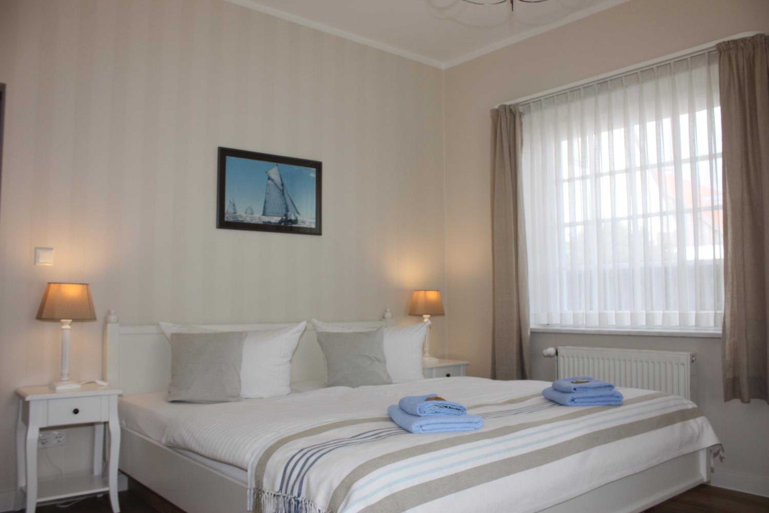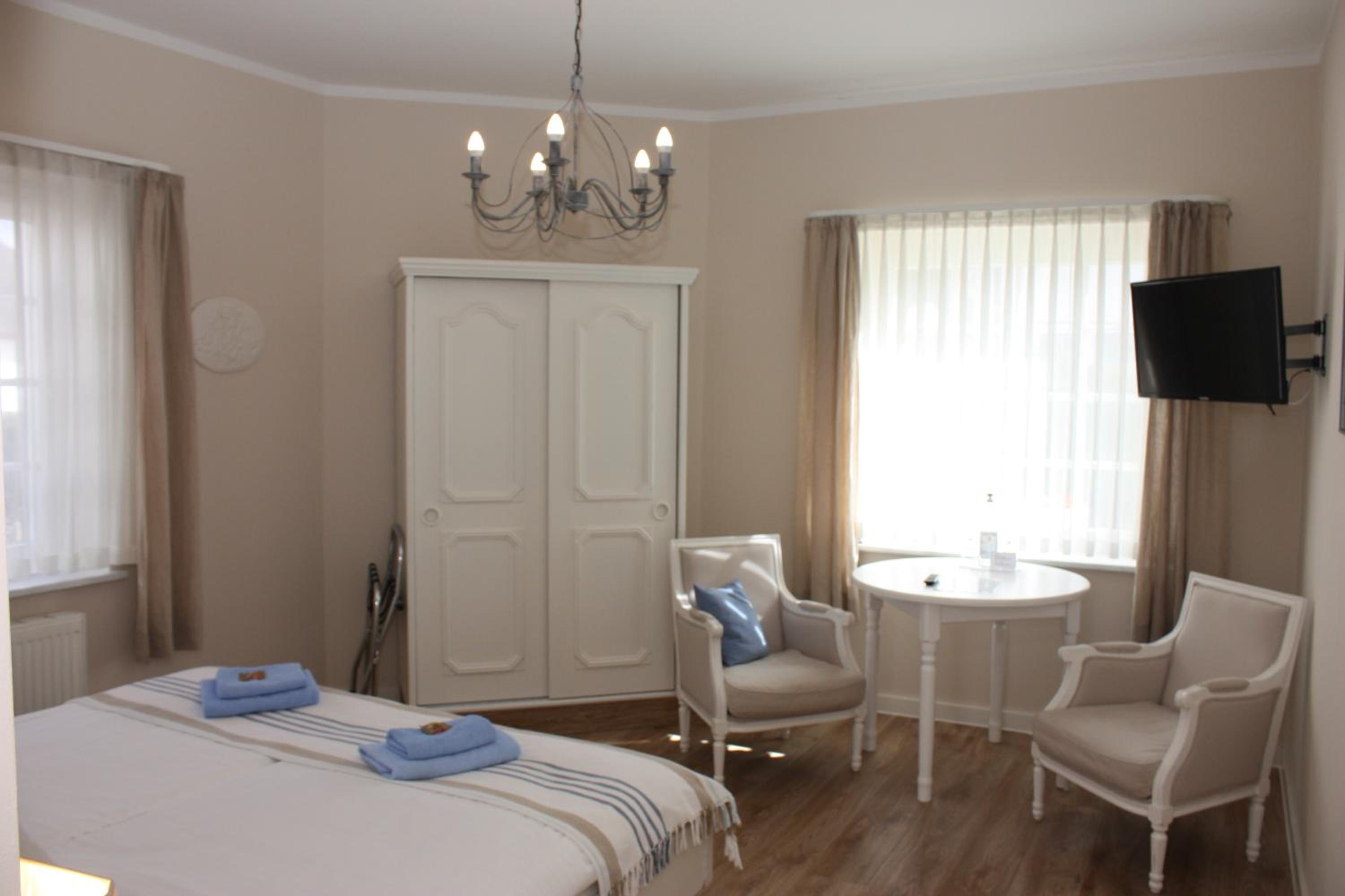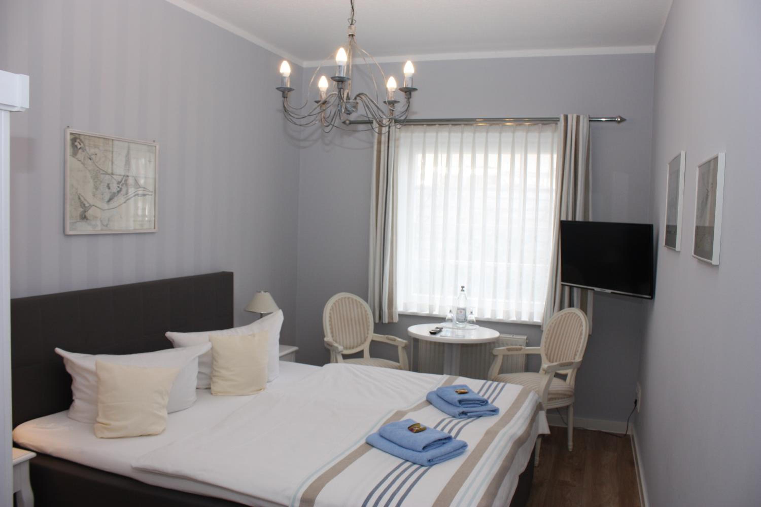 Das Rund-um-Paket. Super netter Empfang, netter Service, ruhige Lage, gutes Frühstück. Wir hatten das Apartment mit 2 Zimmern, Balkon und großes Badezimmer. Alles modern, hell mit maritimen Touch ausgestattet. Es gab ebenso einen Wasserkocher mit Tee/Kaffee Portionen + Tassen sowie 1 Flasche Wasser + Gläser. Auf der Booking Website sind noch alte Bilder in der Darstellung. Die gerne bei Gelegenheit austauschen. WLAN gibt es nur am Empfang und im Frühstücksraum. Parkplätze für die Gäste stehen kostenfrei zur Verfügung. Uns hat es sehr gefallen.