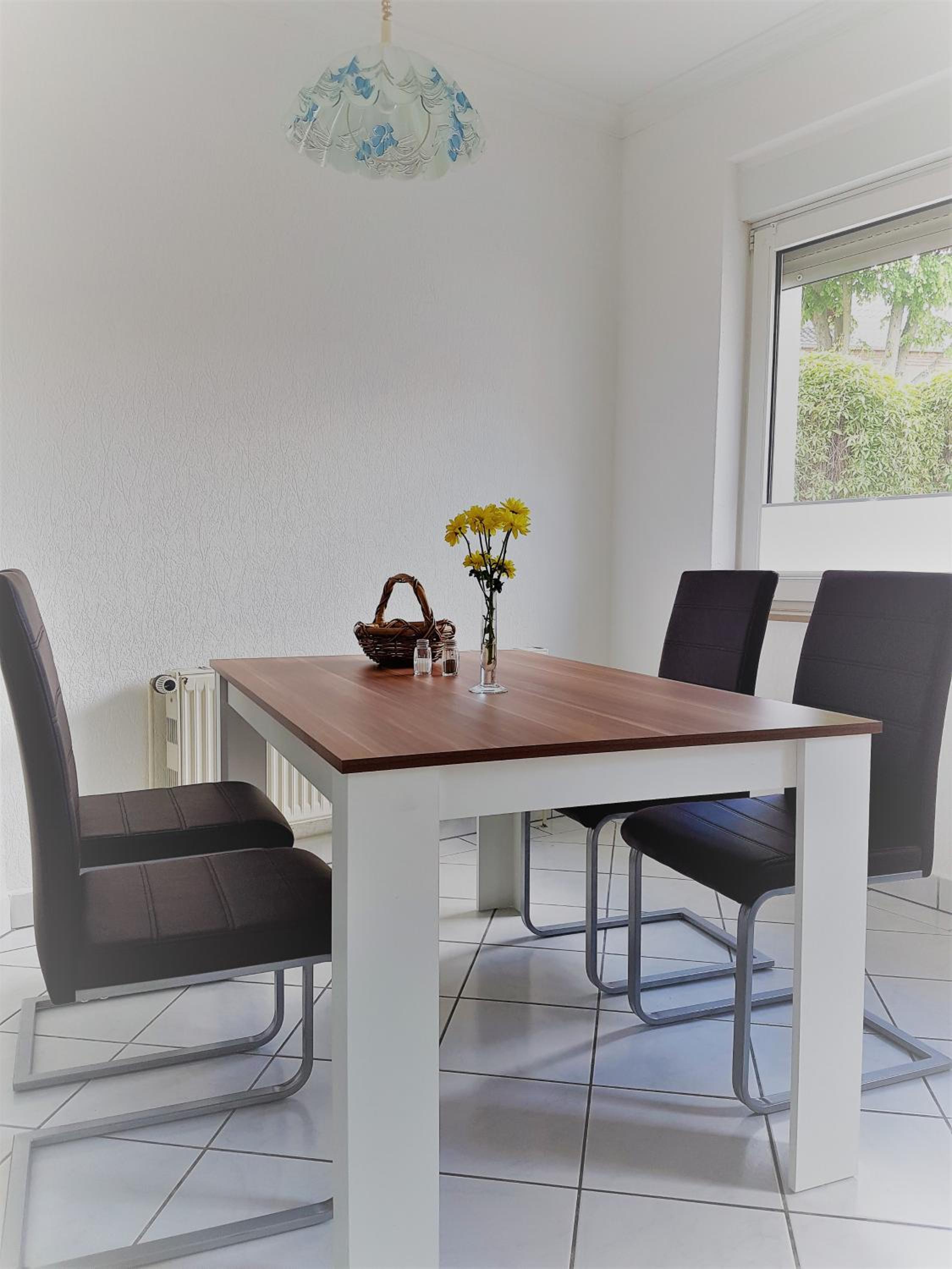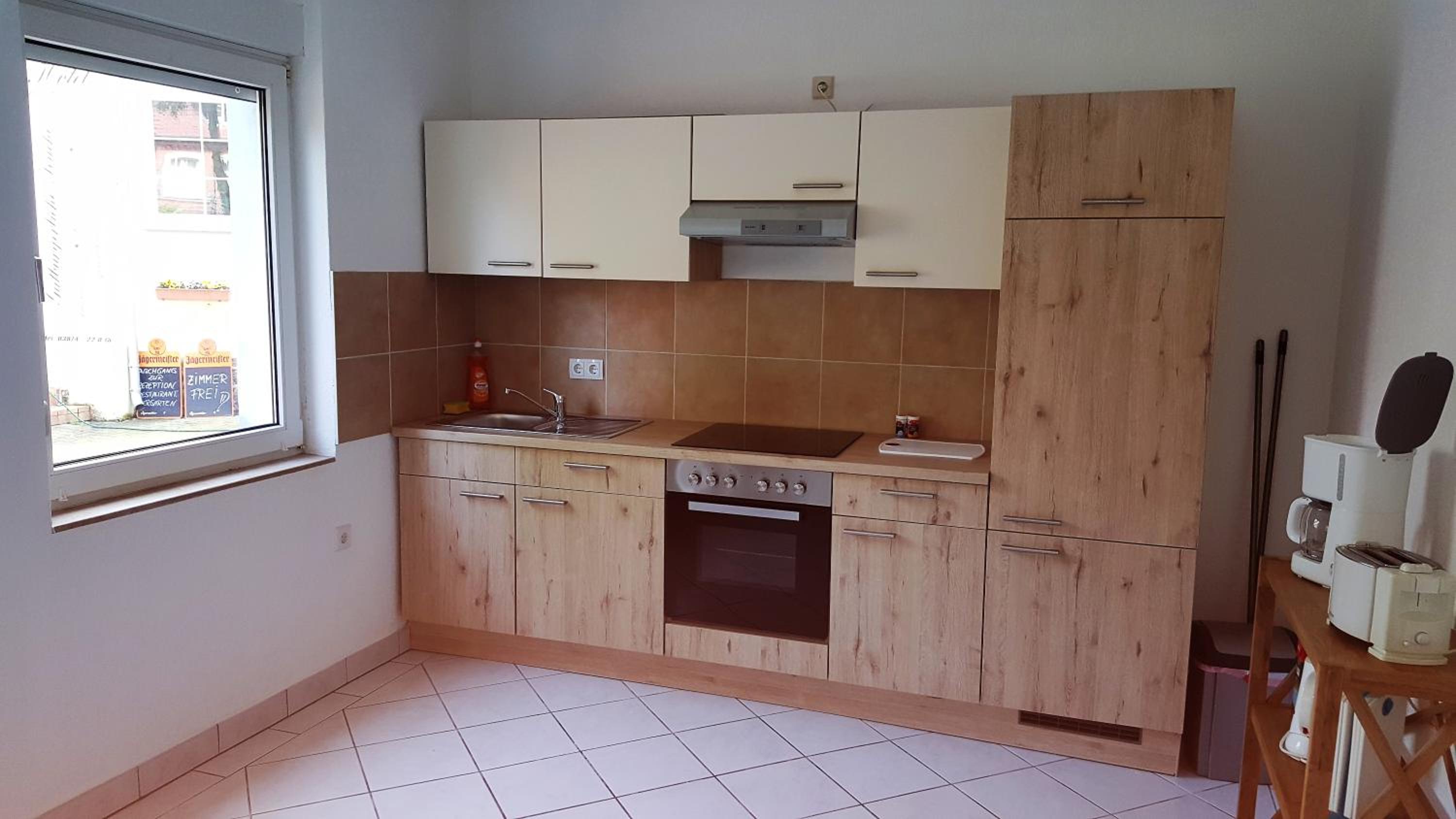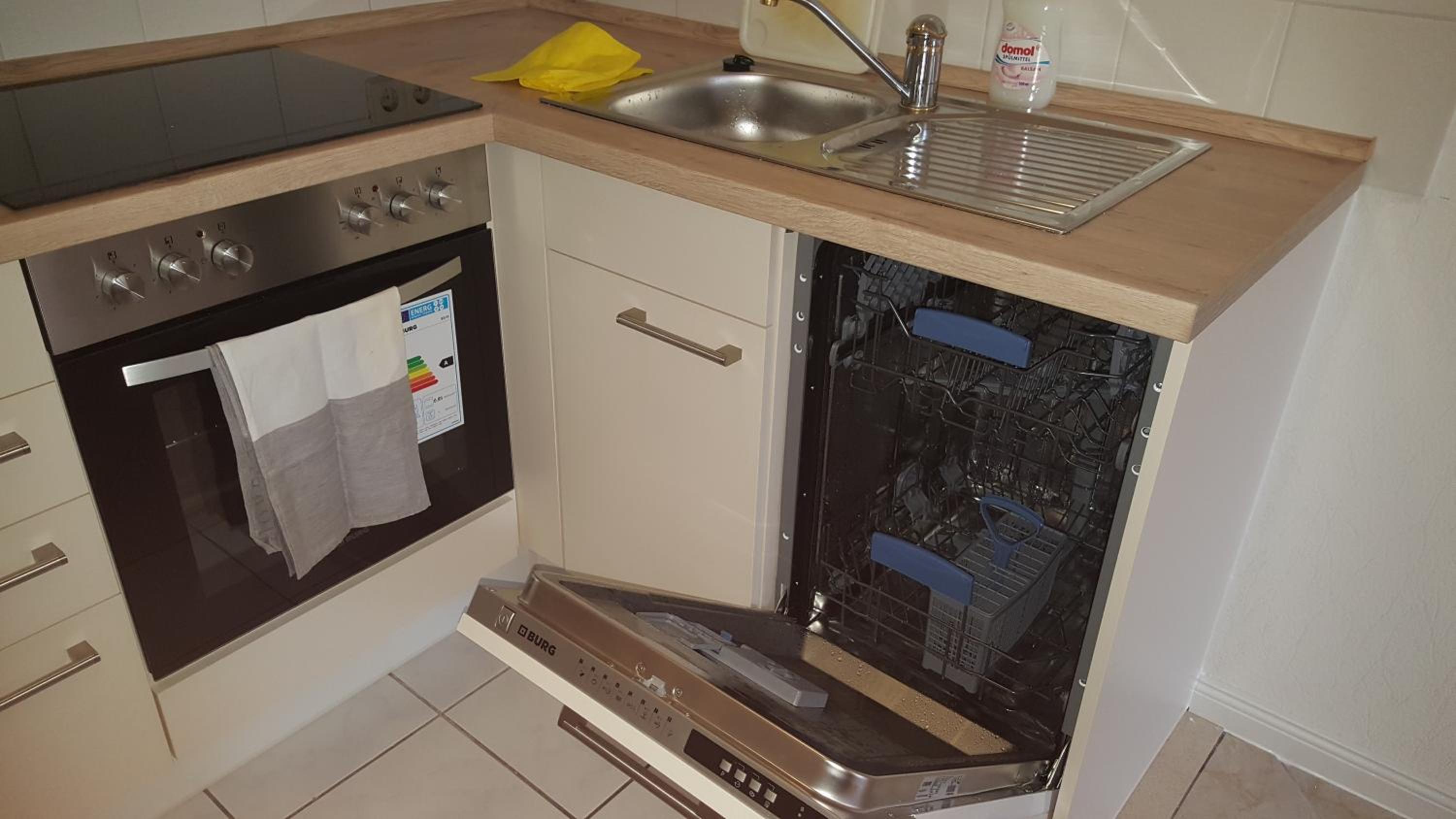 Das ist jetzt mein individuelles Empfinden. In der Küche und auch im Wohnzimmer würden ein paar Bilder an der Wand oder sonst Dekoratives dem Appartement ein gewisses Etwas geben, das i- Tüpfelchen fehlt.