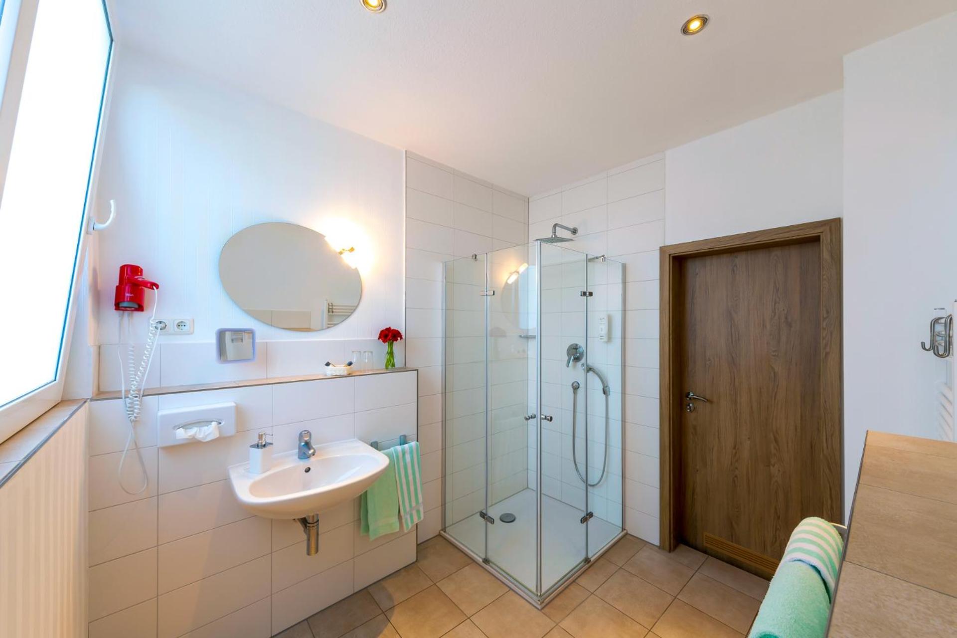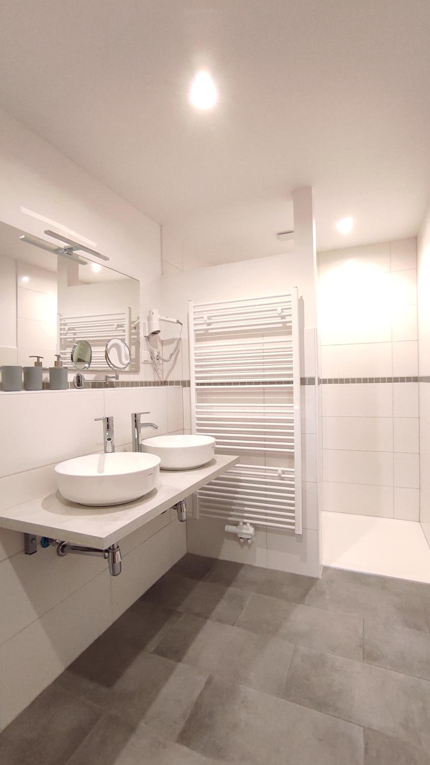 Wir hatten das Appartement im Erdgeschoss. Es ist richtig schön groß und hat eine ebenerdige Dusche.