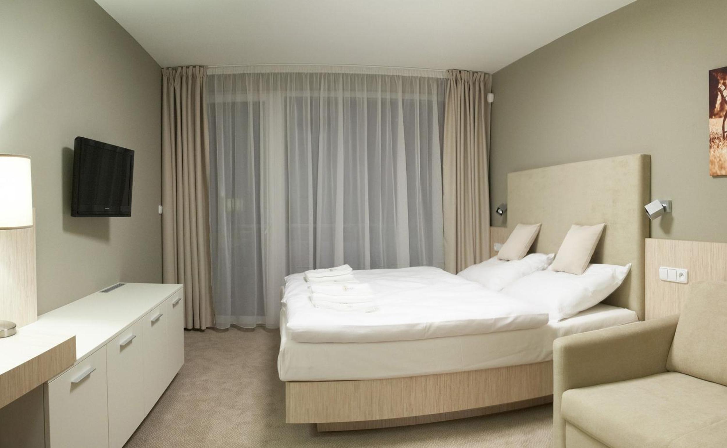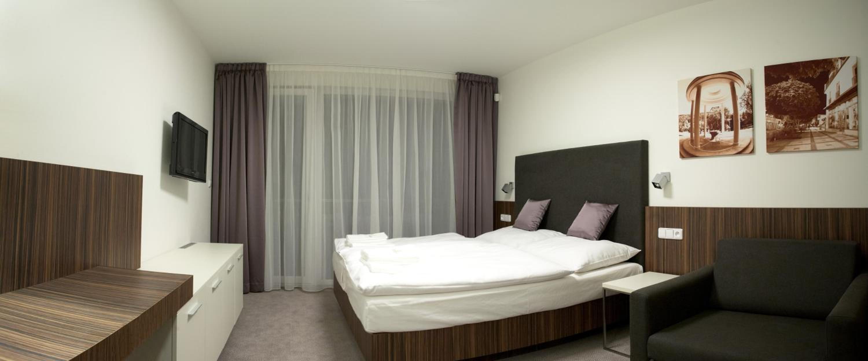 Hotel Pohoda in Luhačovice offers modern rooms with balconies, flat-screen TVs, and minibars. Enjoy the comfort of air-conditioning and upscale amenities like bathrobes and a hairdryer in the bathrooms.