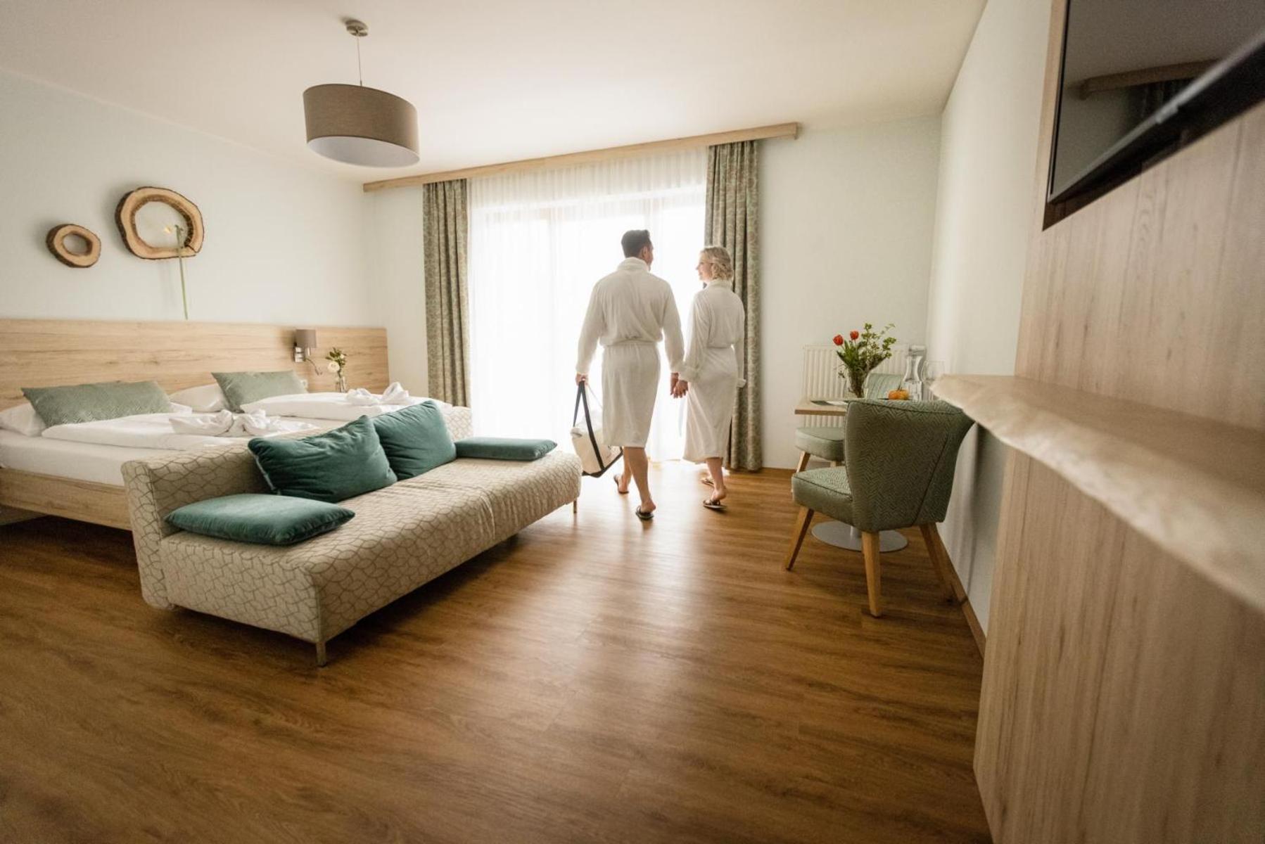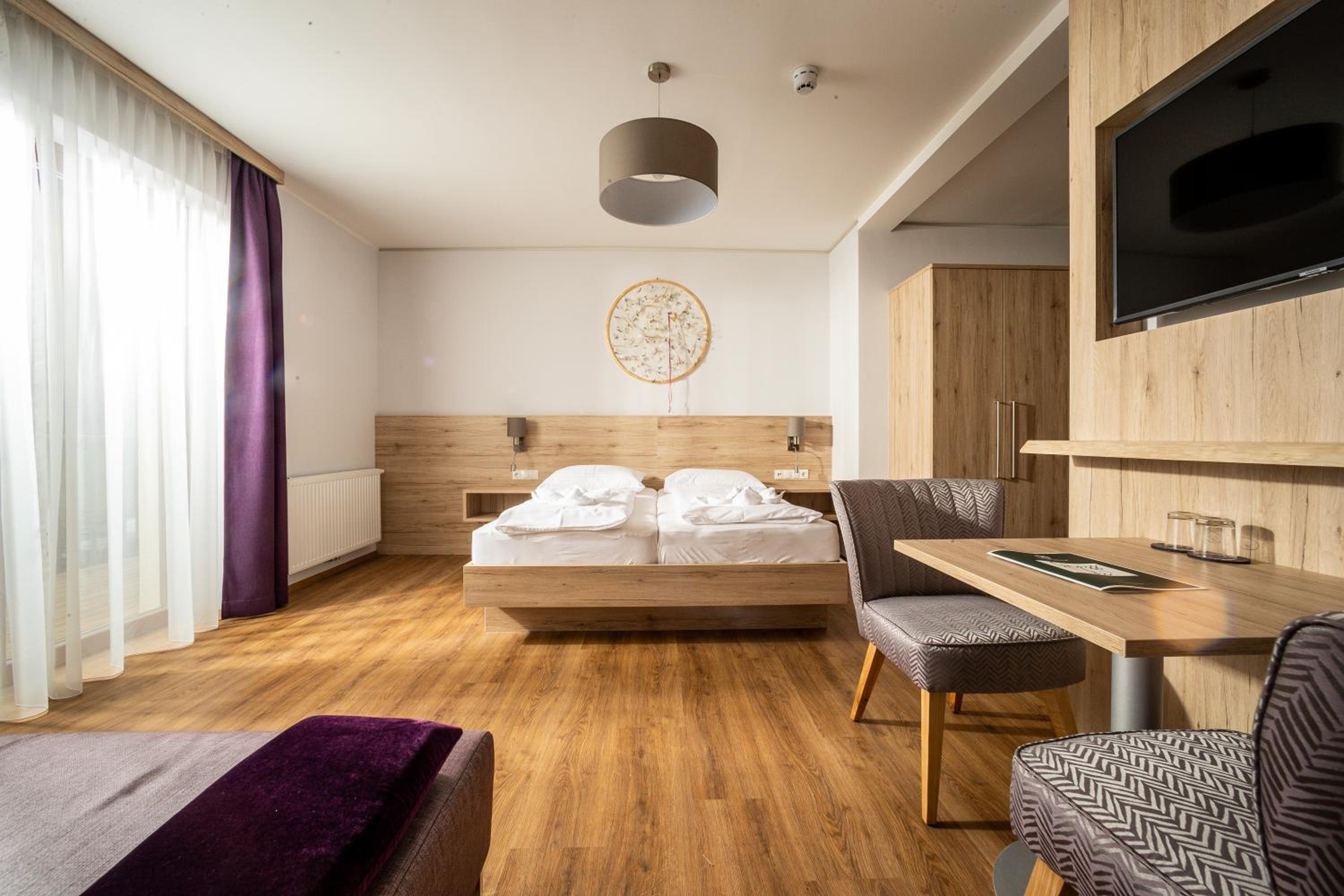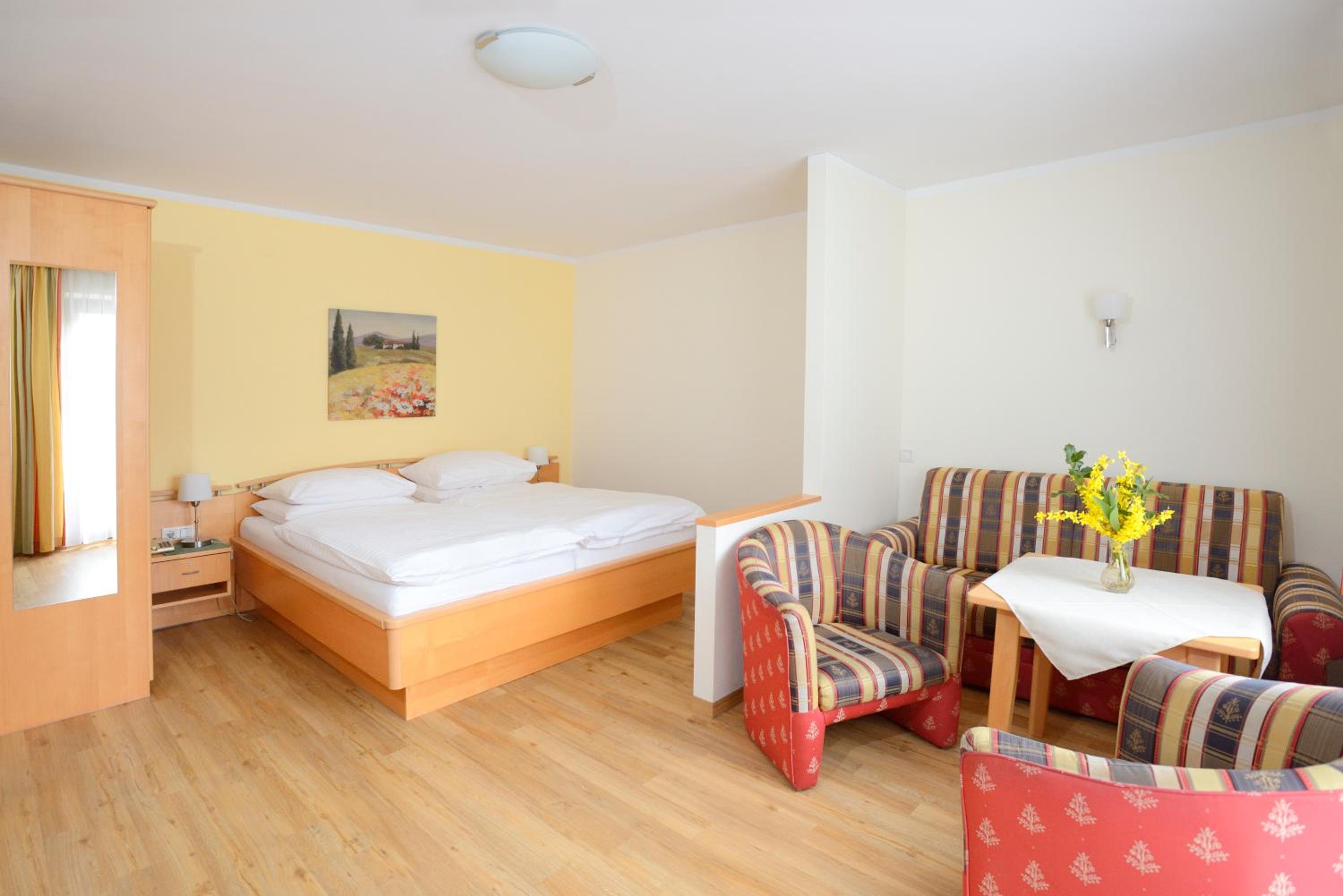 Sehr geräumiges Zimmer mit kleiner - räumlich getrennter - Sitzecke, die auch gut als "Spieleecke" genutzt werden konnte. Alles (Zimmer, Wellnessbereich, Gastraum) war sehr sauber. Ausgezeichnetes Essen in Top-Qualität und ausreichender Menge.