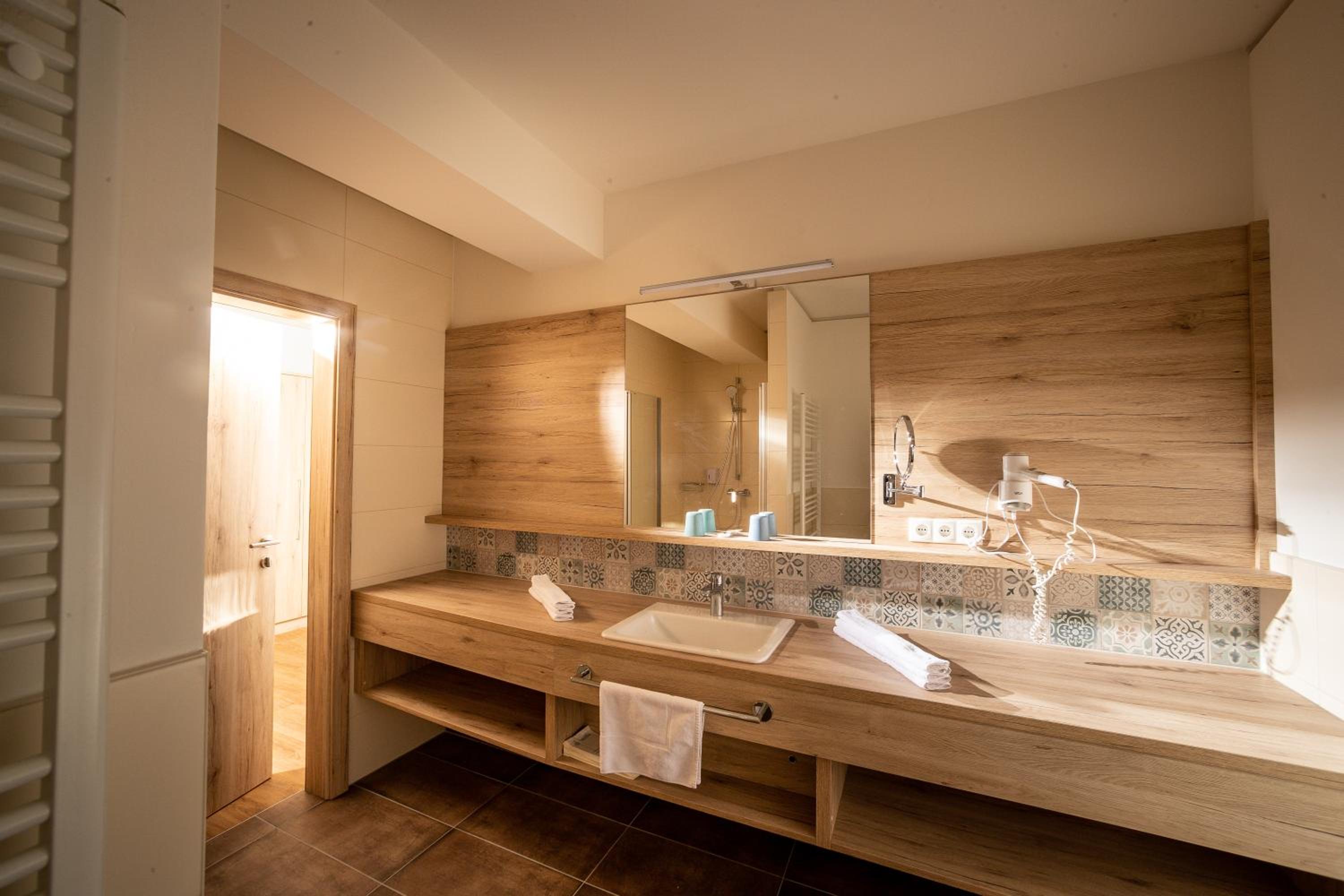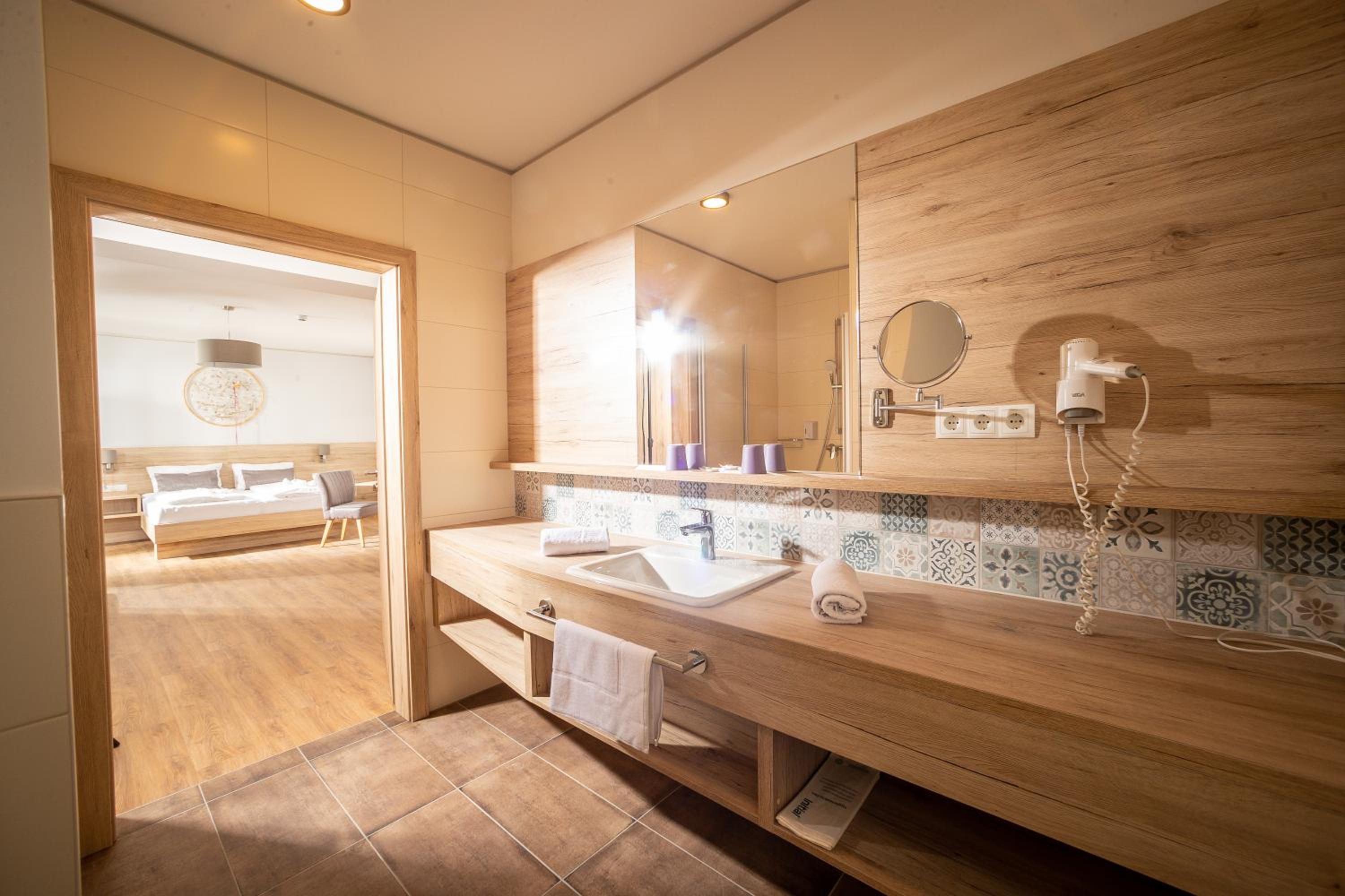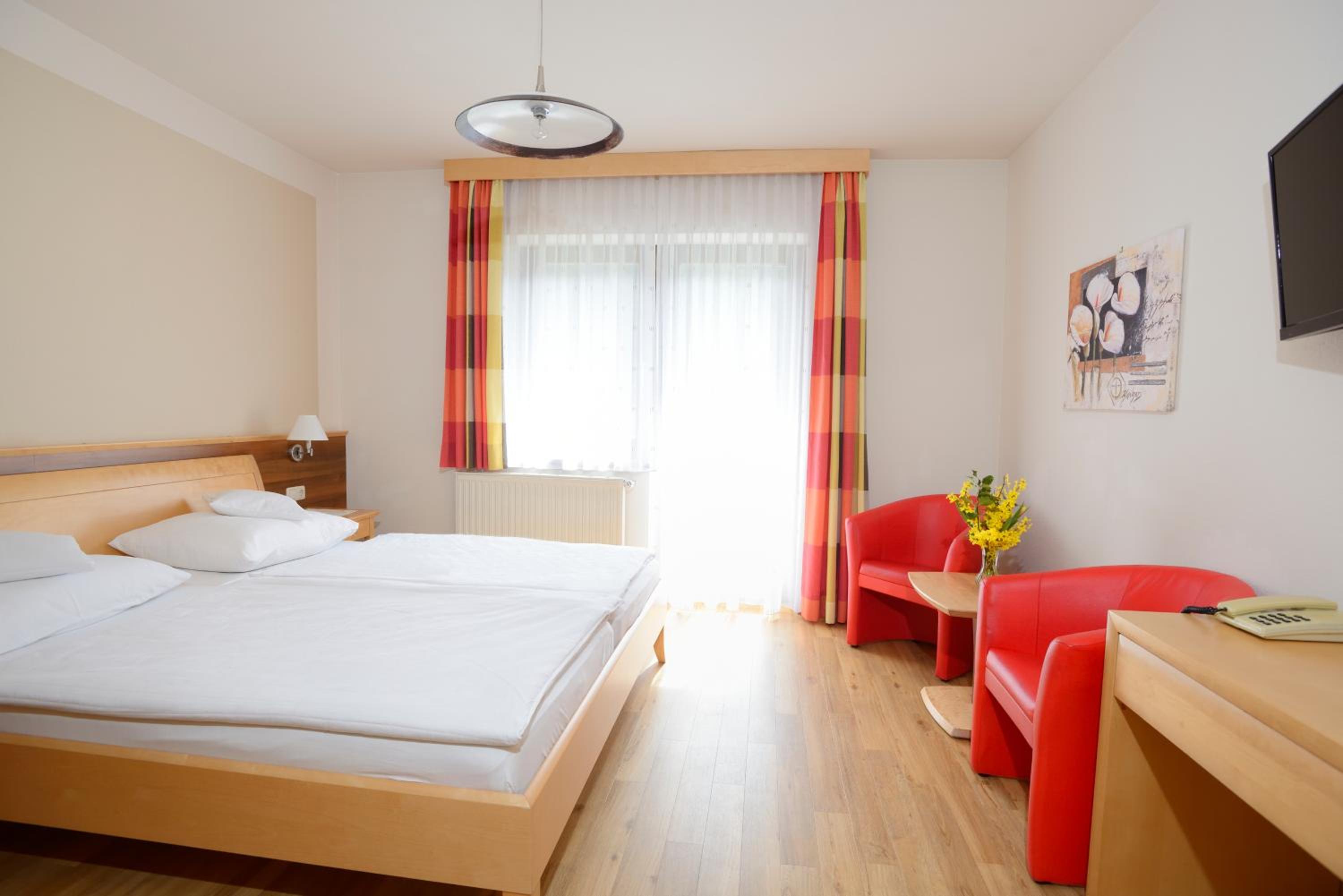 Sehr geräumiges Zimmer mit kleiner - räumlich getrennter - Sitzecke, die auch gut als "Spieleecke" genutzt werden konnte. Alles (Zimmer, Wellnessbereich, Gastraum) war sehr sauber. Ausgezeichnetes Essen in Top-Qualität und ausreichender Menge.