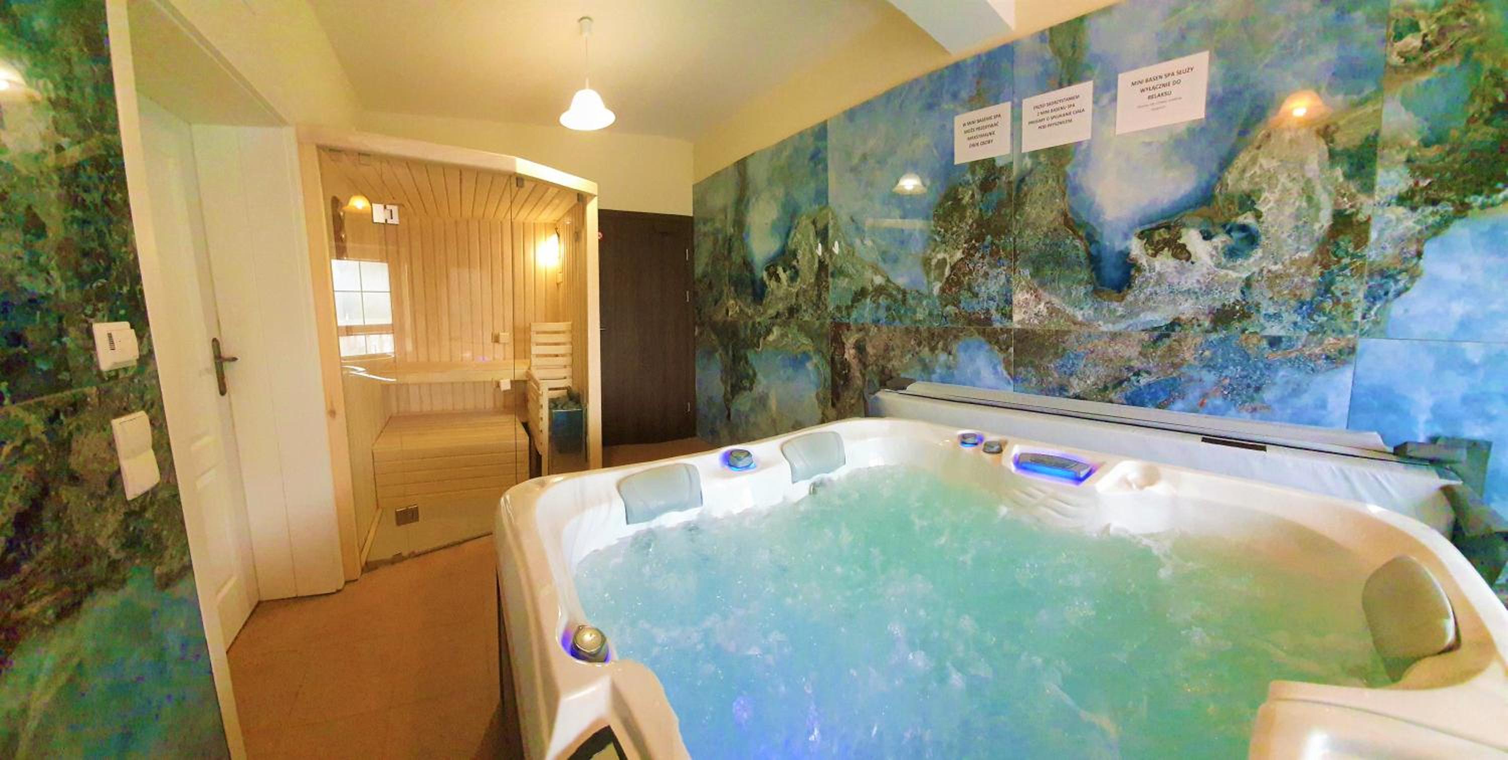 Pokój z wanna i sauną.