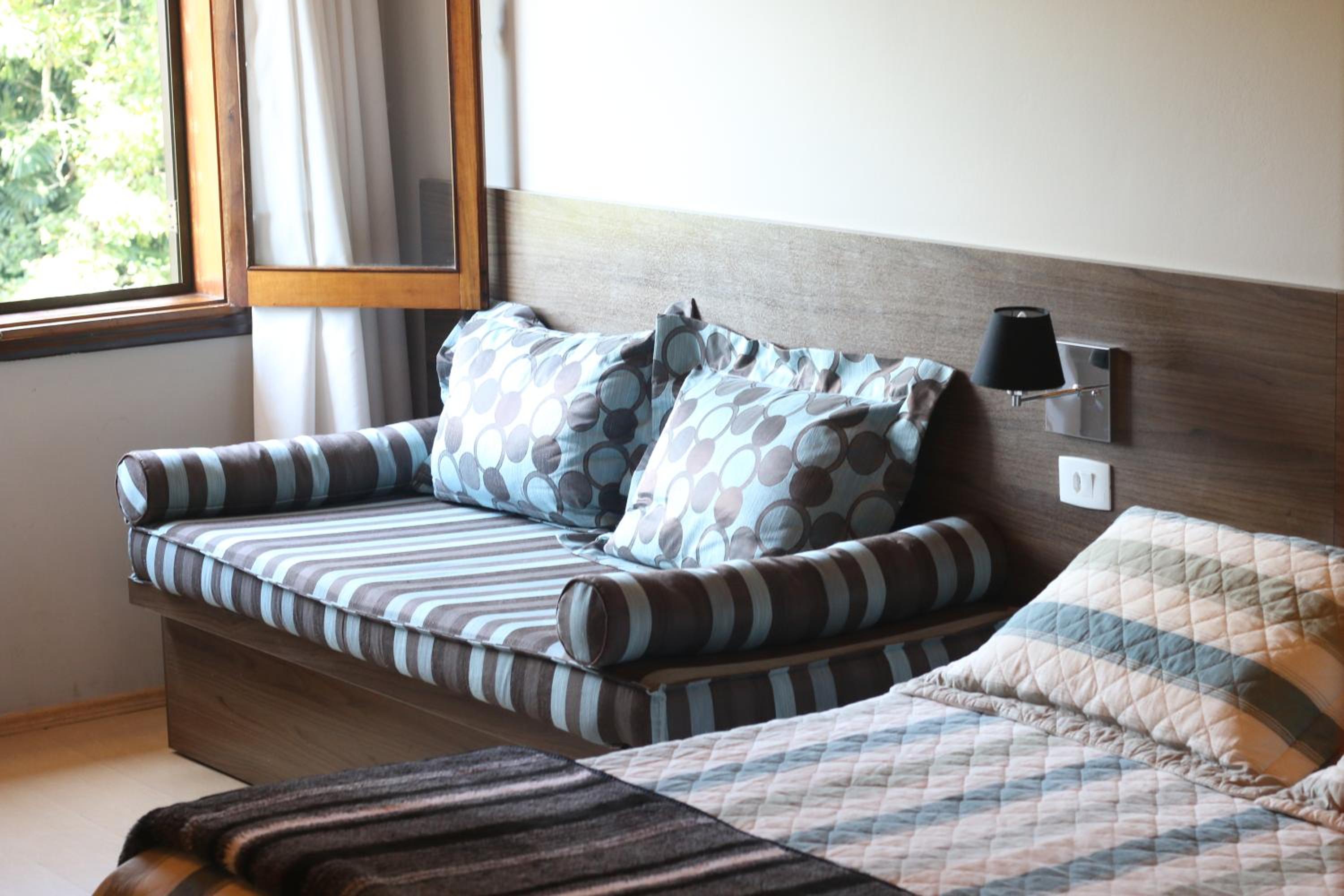 Book your stay at Stefano Hotel for a peaceful retreat in São Roque. Enjoy the lush garden surroundings, comfortable family rooms, and a sun terrace for relaxation. Take a dip in the outdoor pool or prepare a meal in the shared kitchen. With a children's playground and billiards, there's something for everyone. Conveniently located near Sorocaba shopping centre and Morumbi Stadium, Stefano Hotel is the ideal choice for your next getaway. Reserve your room now and experience a memorable stay in São Roque.