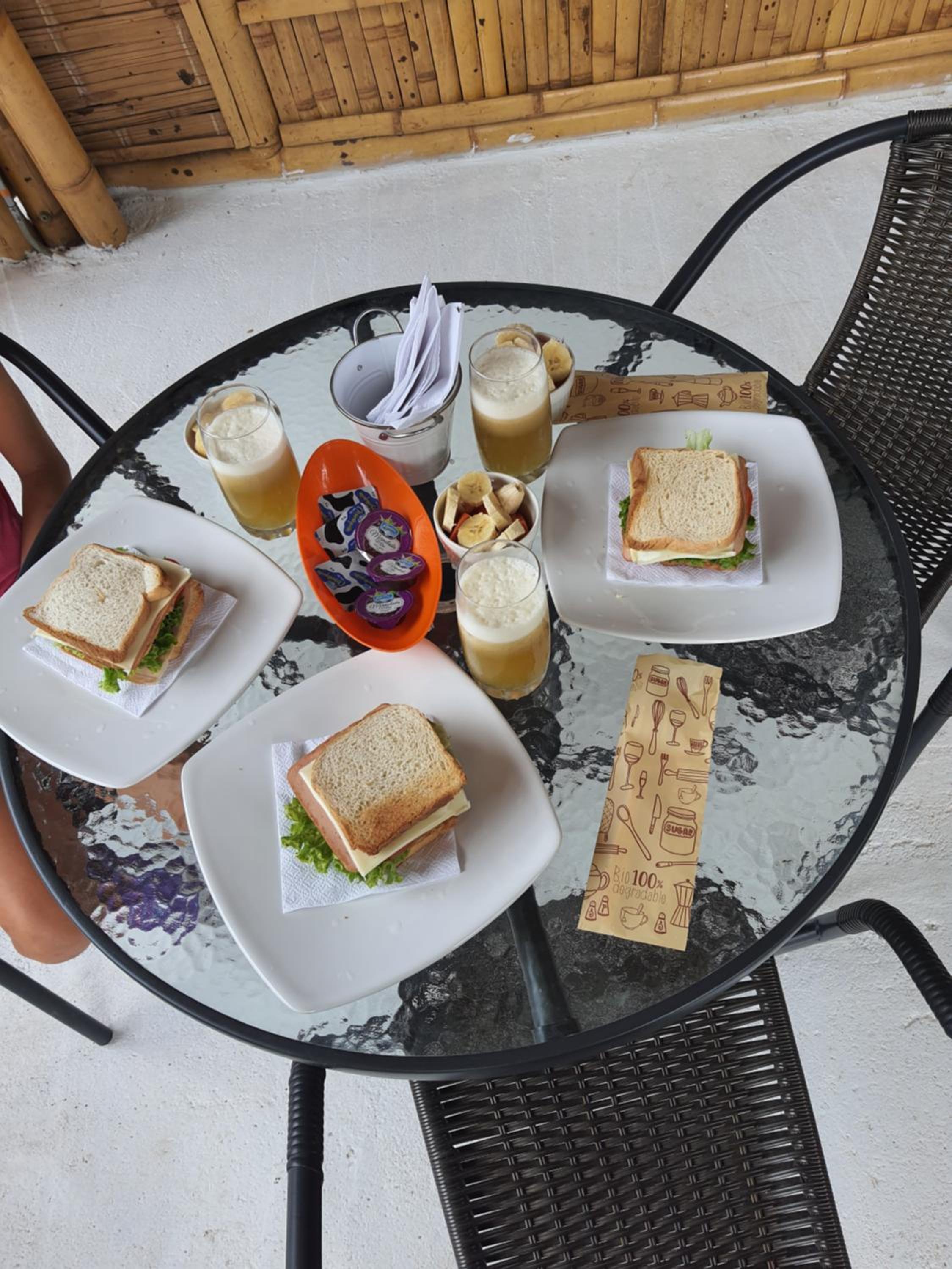 The breakfast is really good, big and served directly at our terrace ☺️ The receptionist was very helpful and friendly