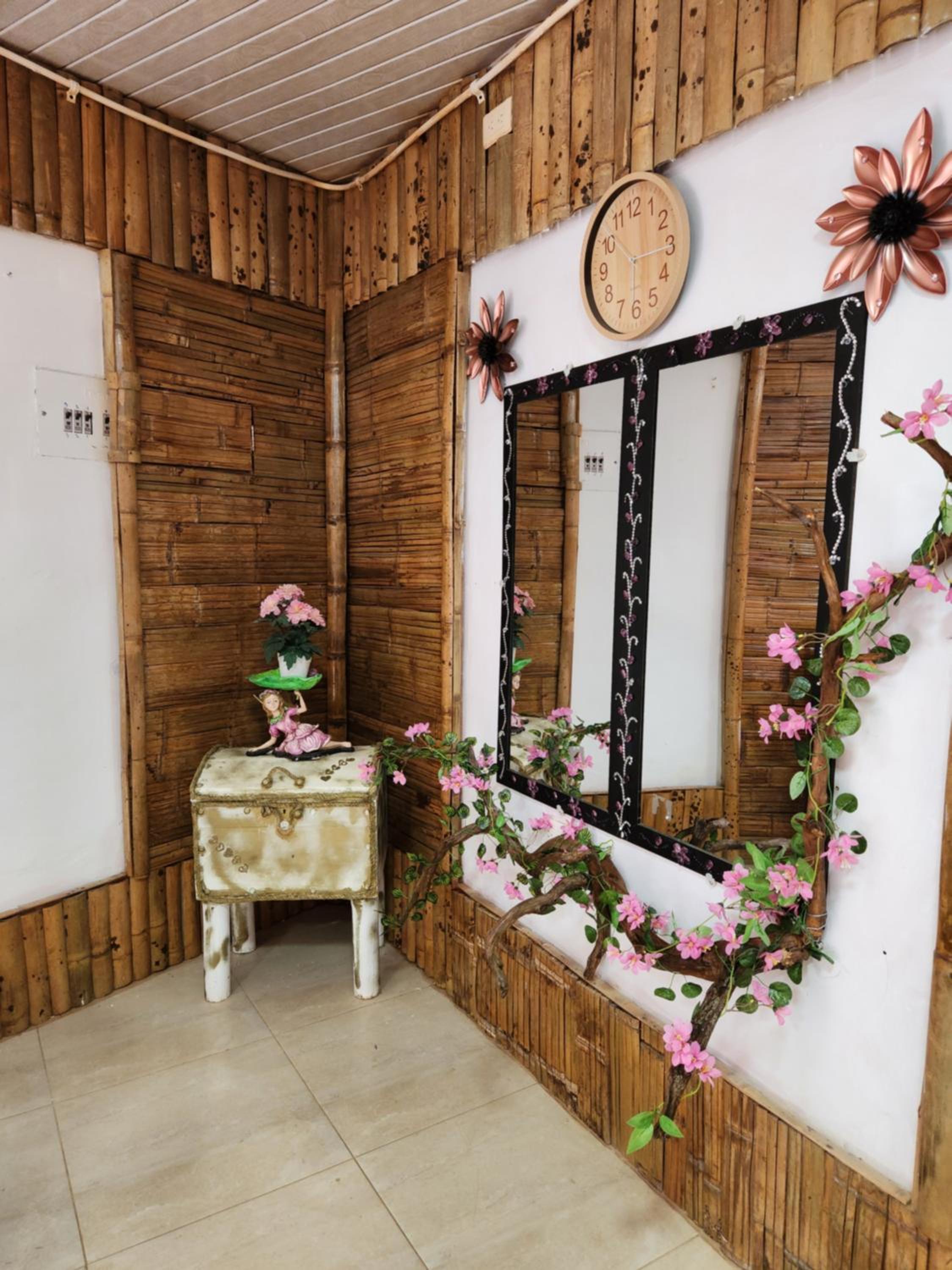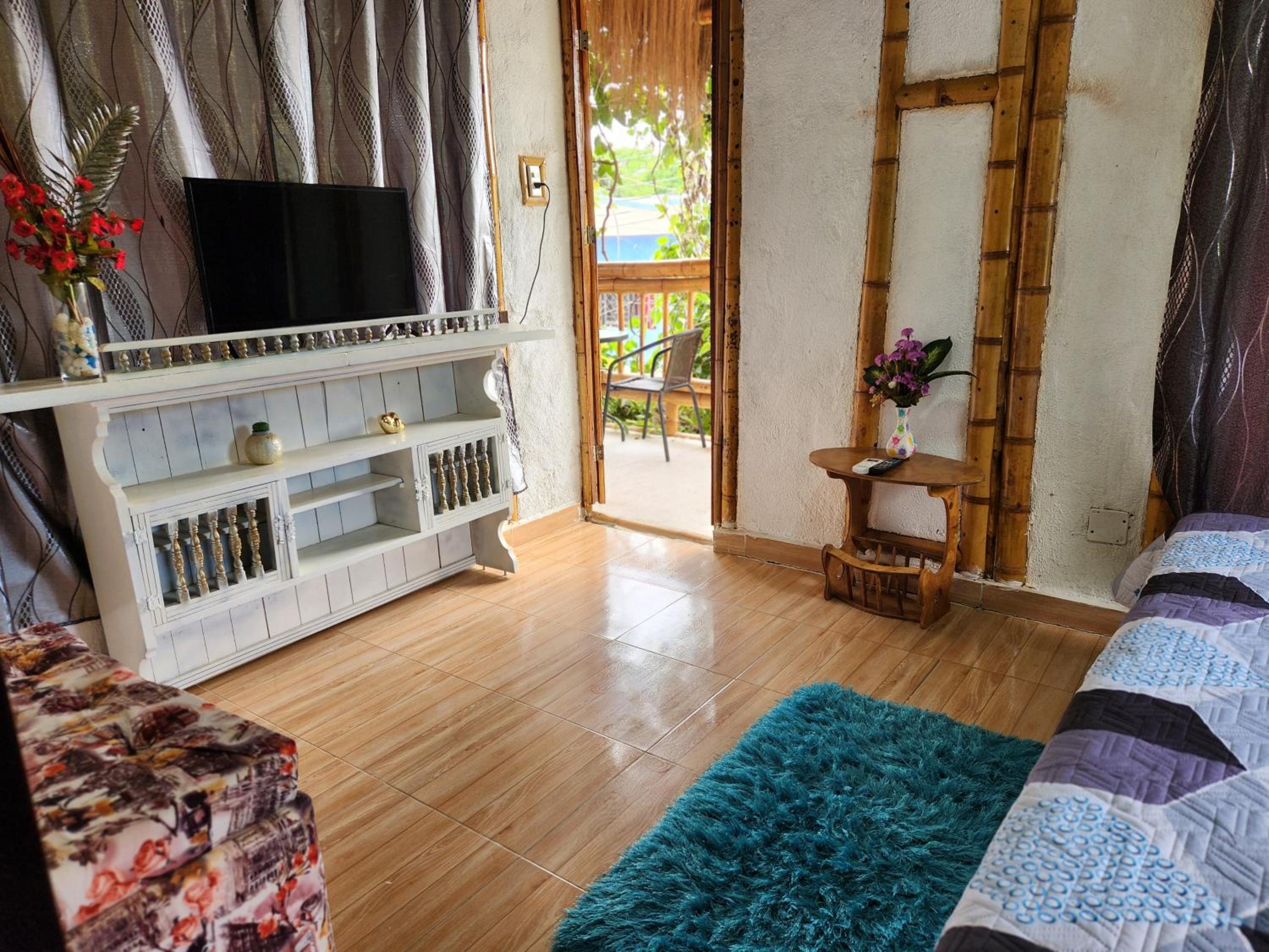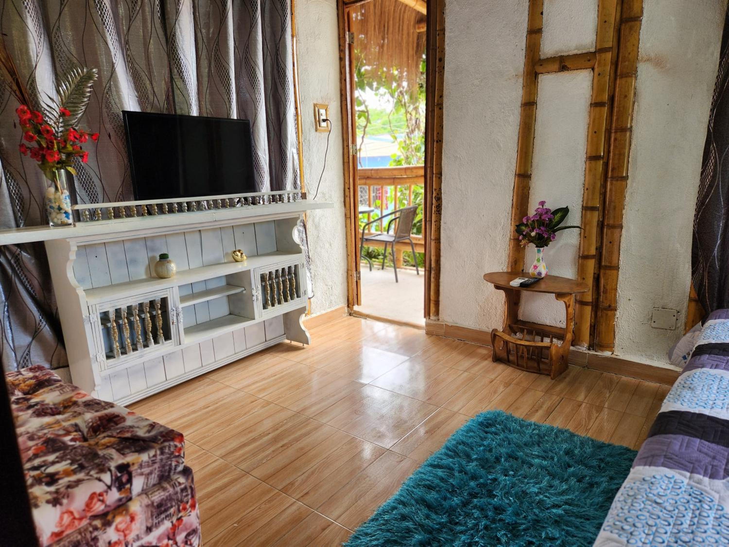 There is a cute effort in the decoration, an AC, a tv, the room is cozy and had 3 windows.