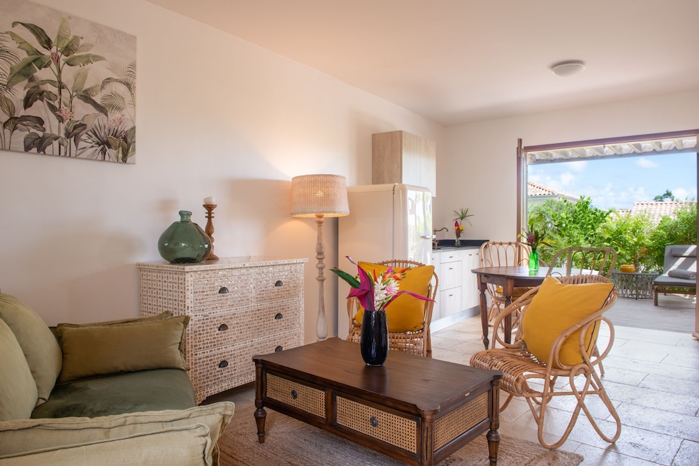 Modern place with charming pool area and garden. High quality restaurant on spot providing also very good breakfasts (included) . Convenient location for both Basse and Grande Terre islands. Free and convenient parking. Mixed international and local guests.