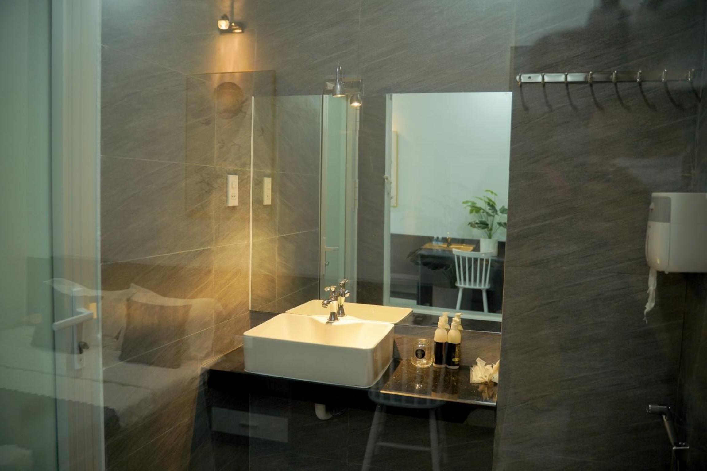 - Ở ksan còn xài dầu gội và xà bông tắm dạng gói, ko dc sang và tiện. Mỗi lần tắm nội xé cái gói đó cũng tốn 5-10p