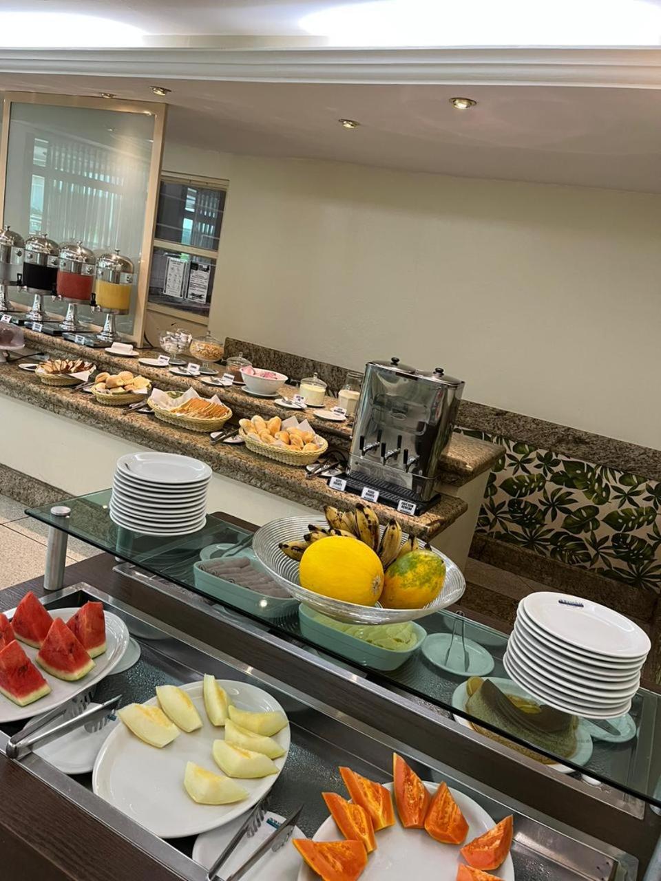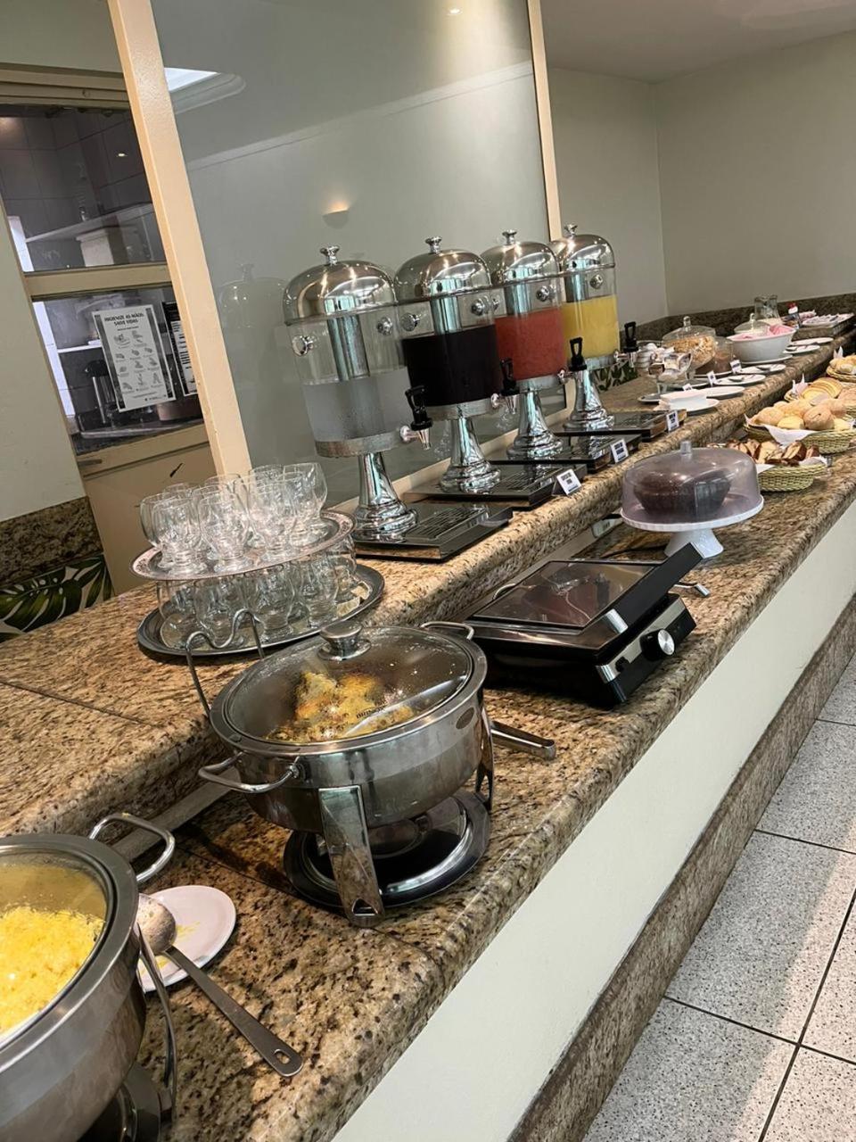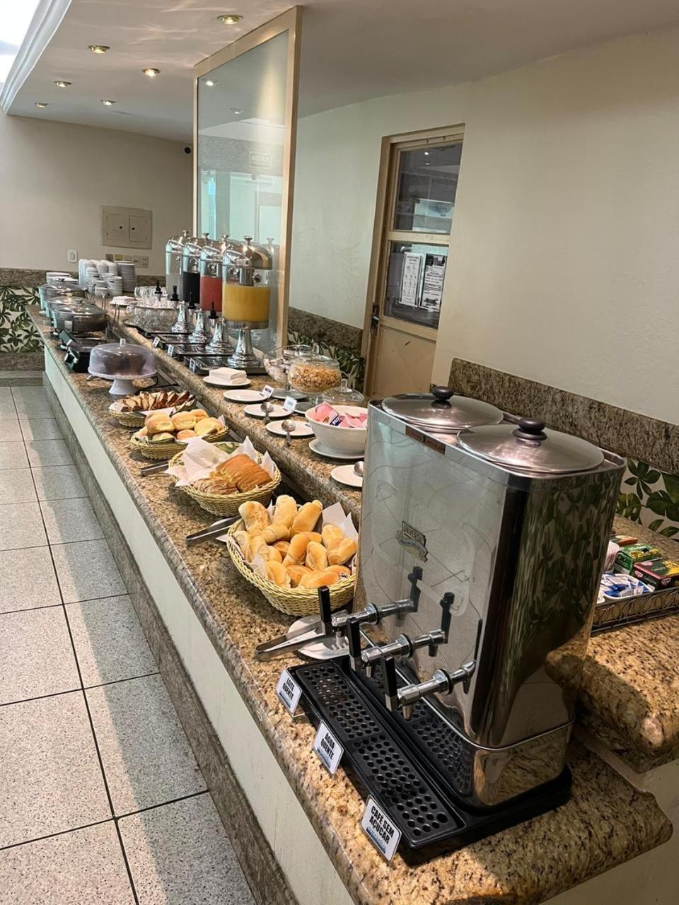 Quartos silenciosos (4o. Andar) é Café da manhã com opções de pães , bolos, tapiocas , ovos mexidos, cuscuz, batata doce e salsicha em rodelas, 2 opções de suco, cereais e frutas frescas.