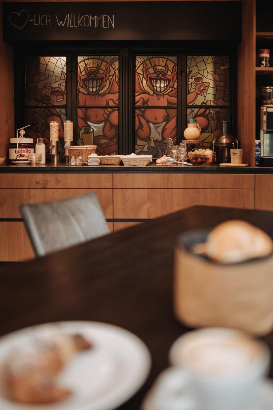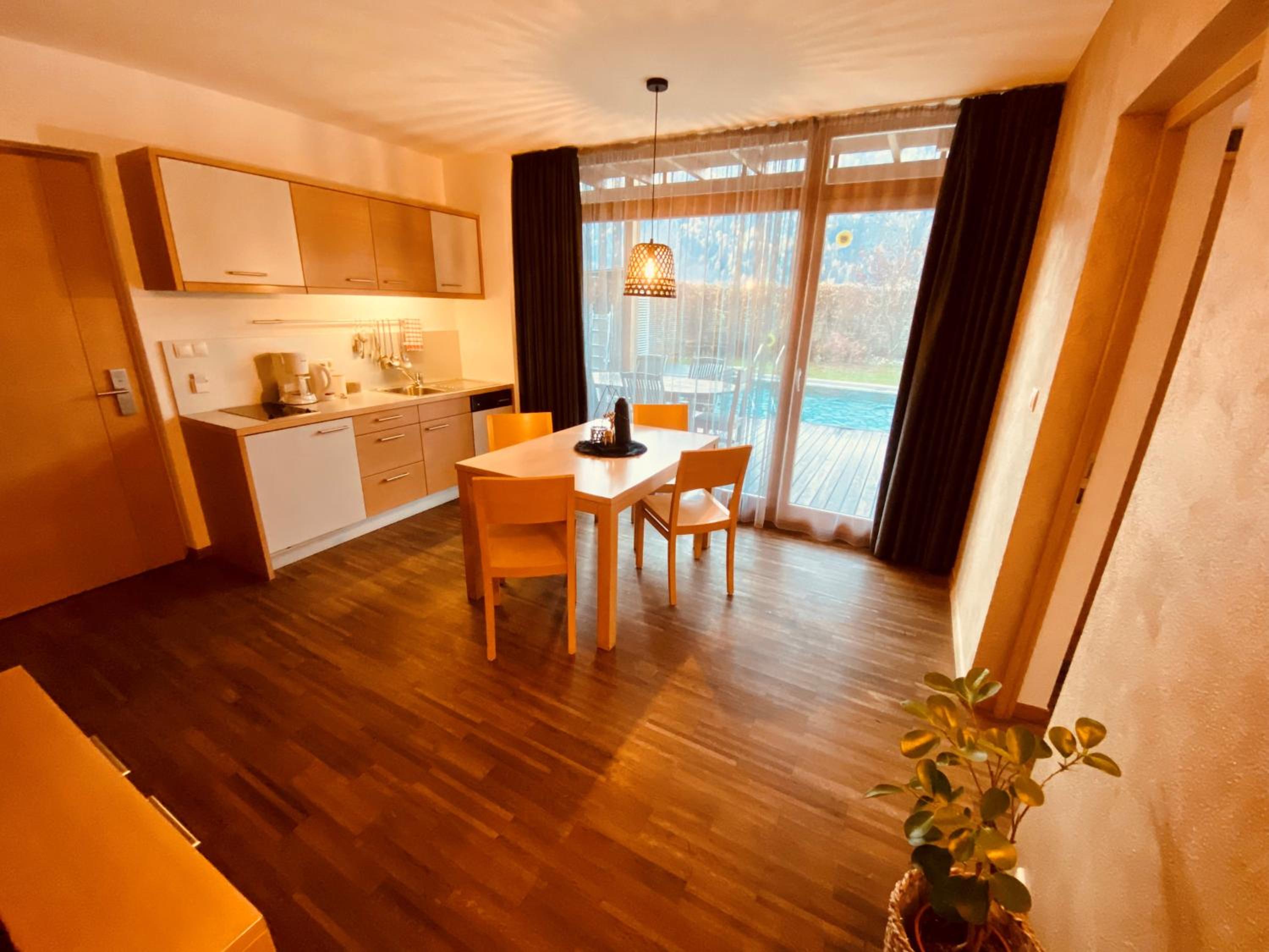 Breakfast buffet, pool, bar and mini market are located in the main house (Brugghof).