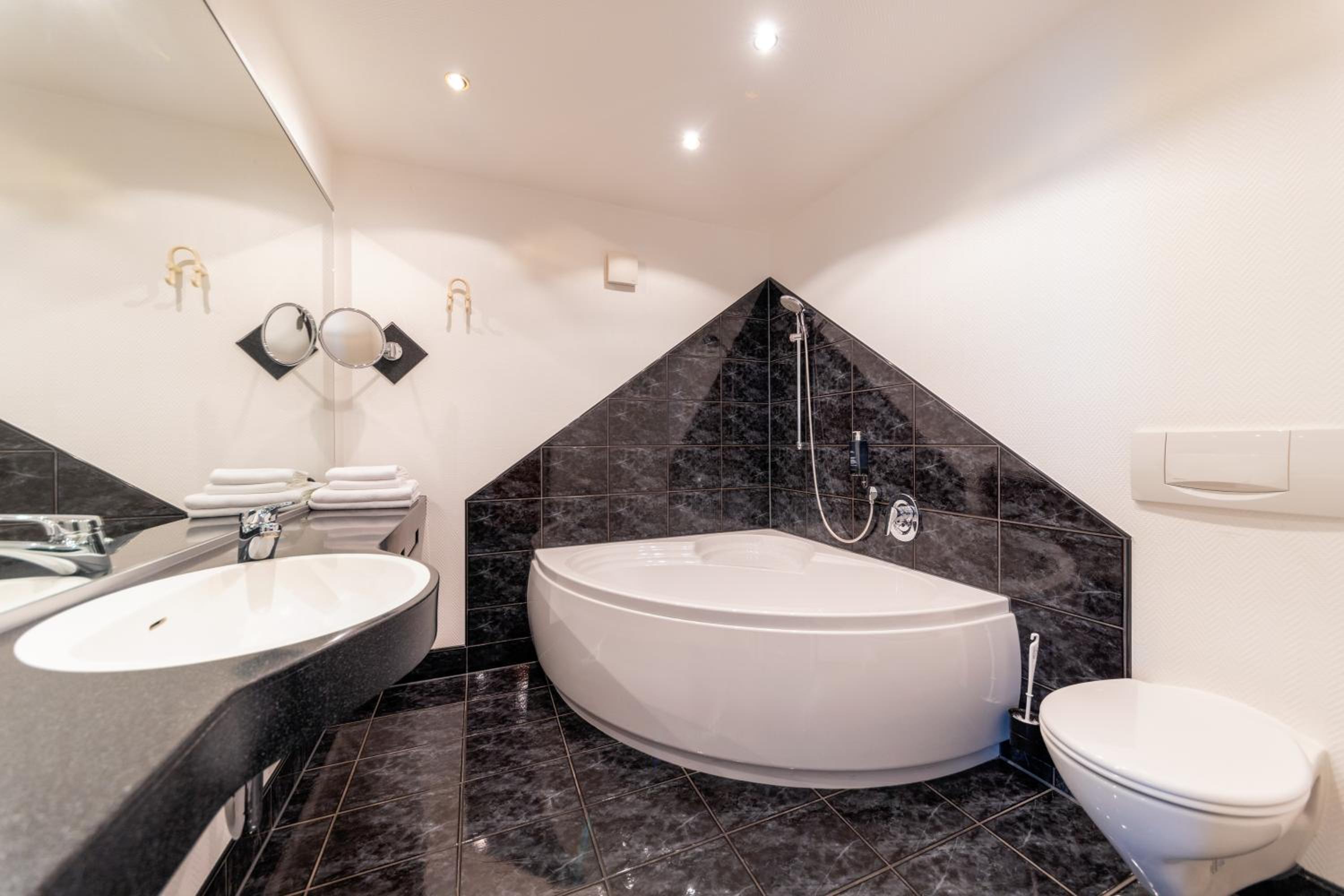 Indulge in Mediterranean dishes and seasonal specialties at the hotel's à la carte restaurant, Ross-Stuben. Enjoy a relaxing meal on the terrace or unwind at the stylish hotel bar, Rossino.