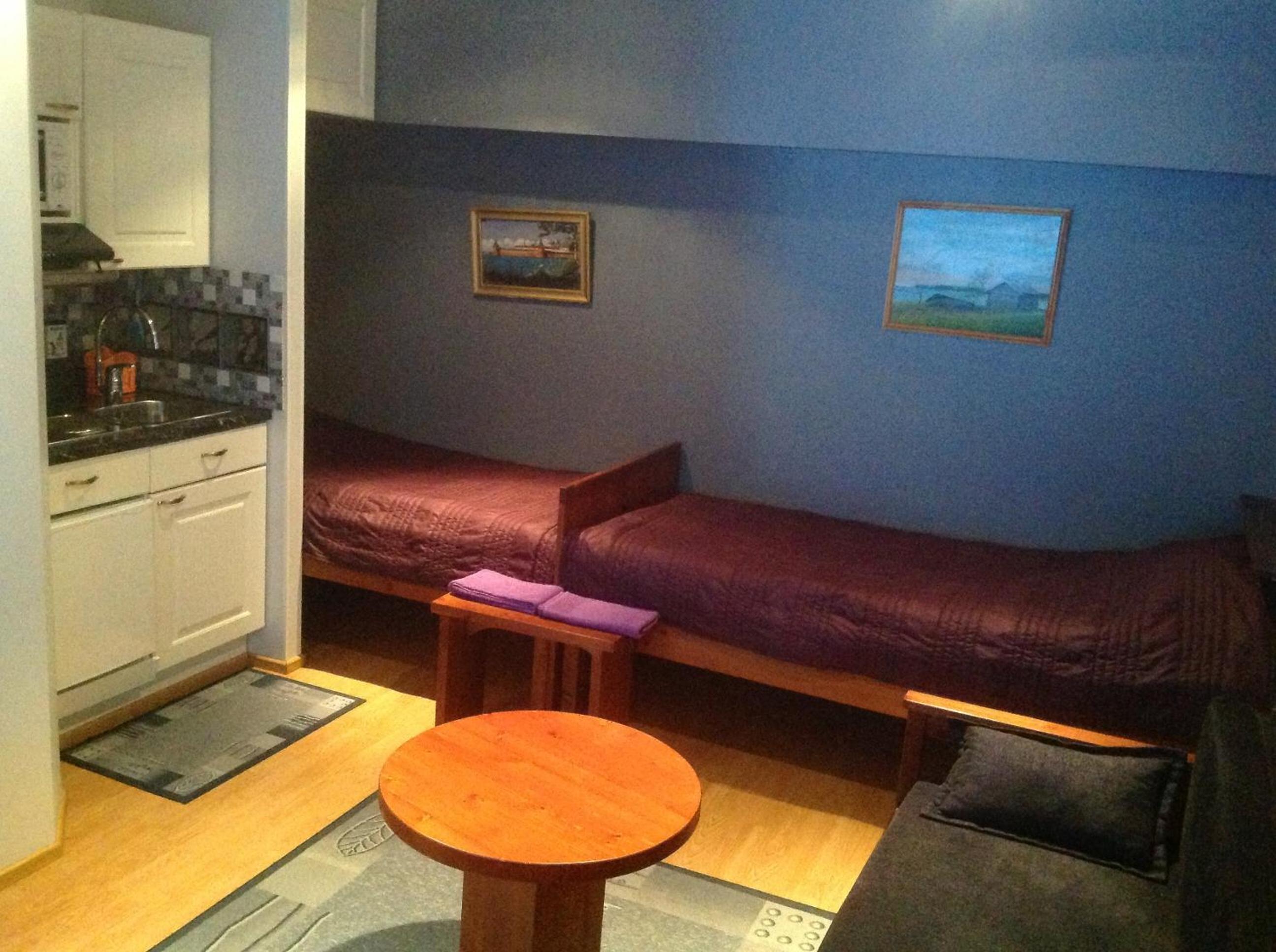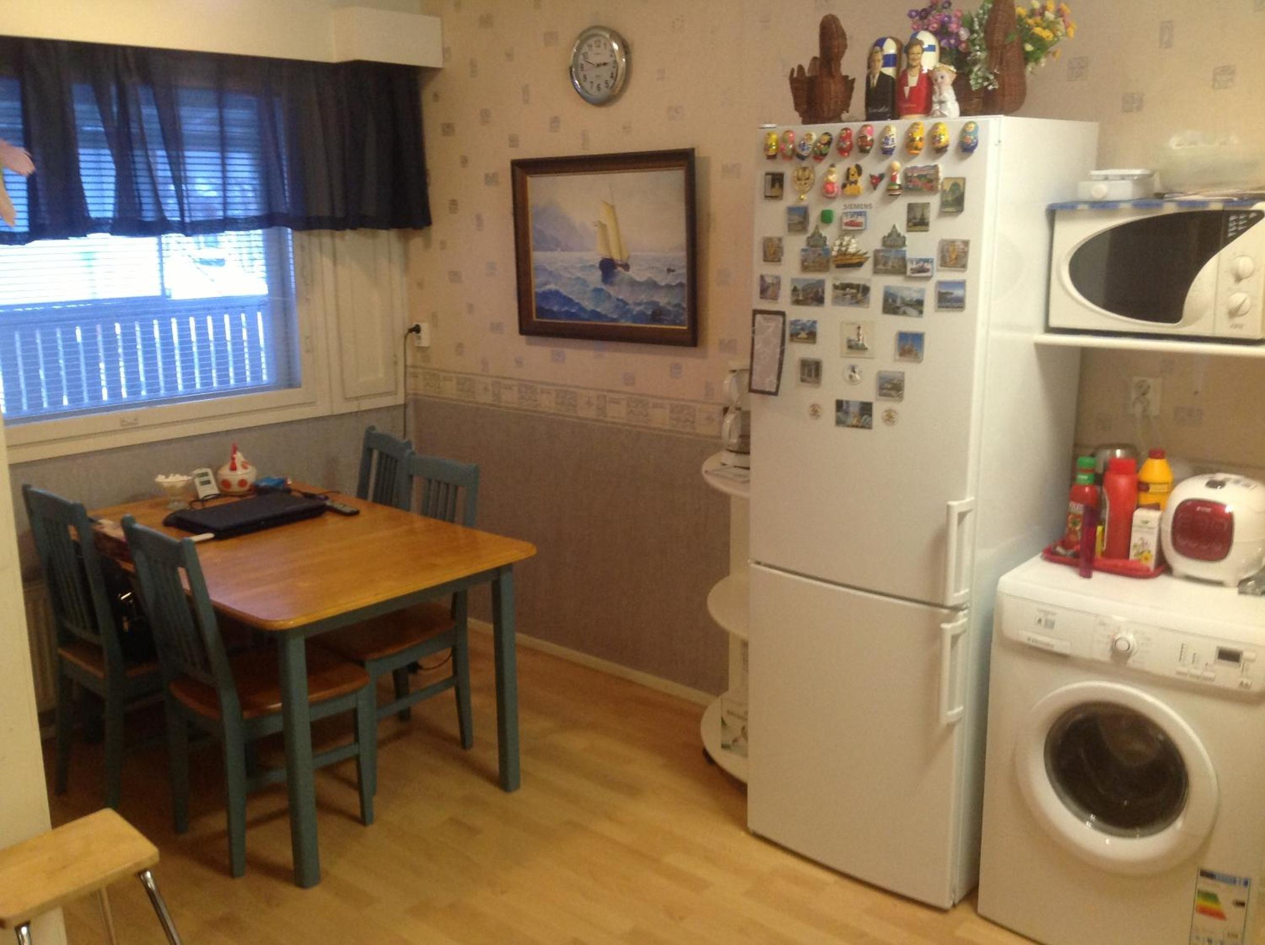 Lovely, quirky room within a few minutes walk of the lake and shops and yet surrounded by trees. I even saw a pair of reindeer on my way back from the supermarket! Plenty of parking and close to the road, but quiet. Very friendly host greeted us. I don't speak Finnish and she didn't speak much English so we got by with a mix of broken German and lots of pointing! The room was clean and well equipped. The shower was small but adequate.