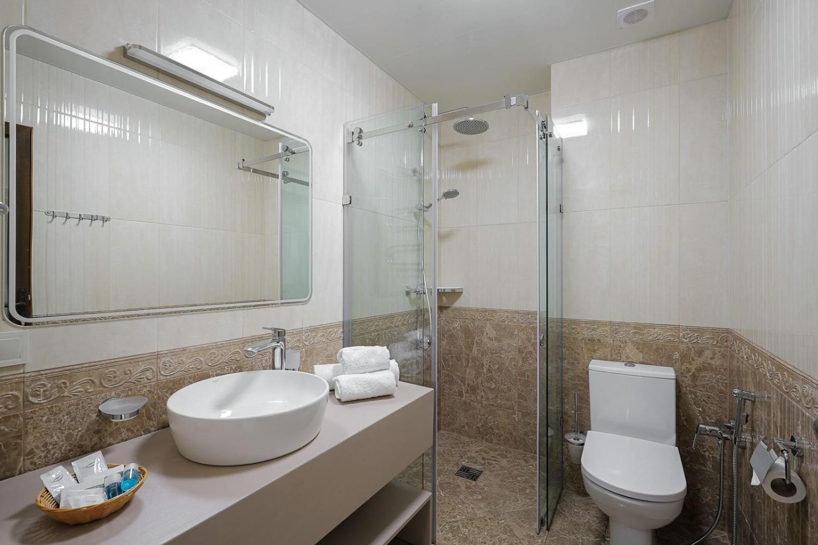 The hotel's 3-star rooms feature air conditioning, flat-screen TVs, and private bathrooms with free toiletries. Some rooms even offer a balcony for guests to relax and enjoy the view. Bed linen and towels are provided for a comfortable stay.