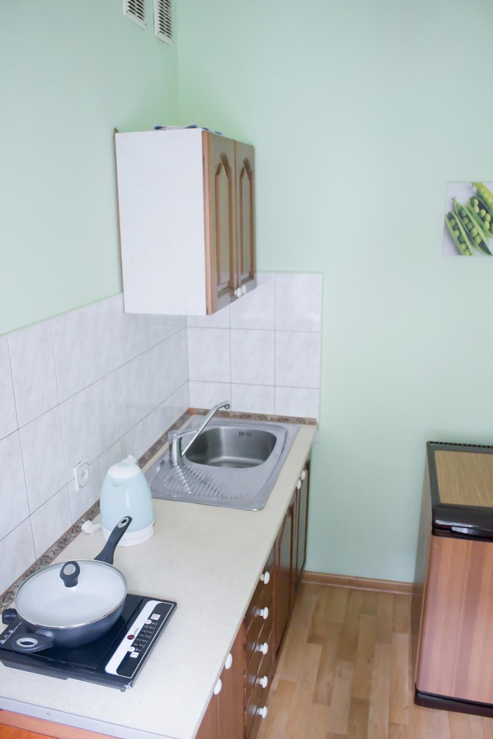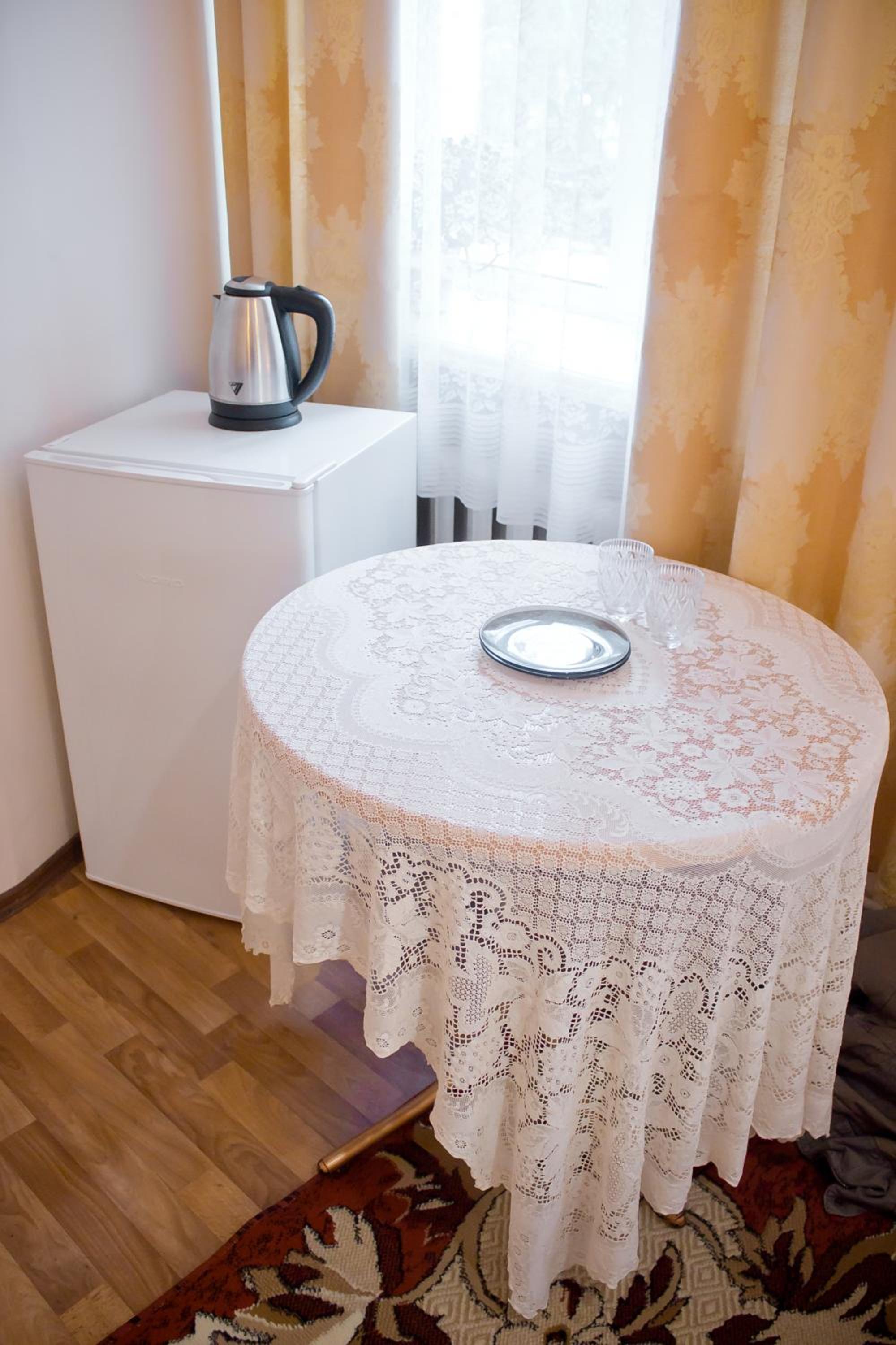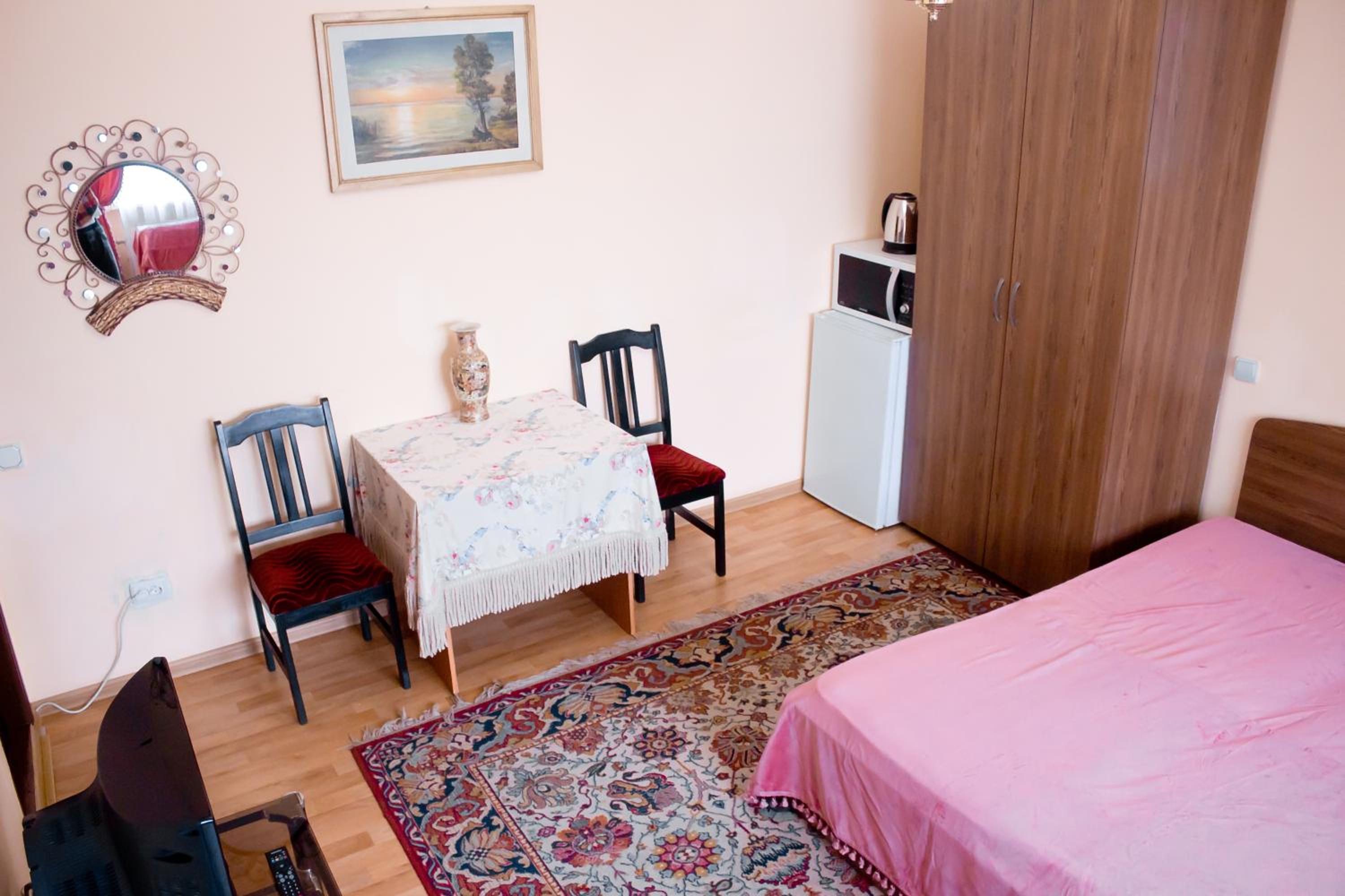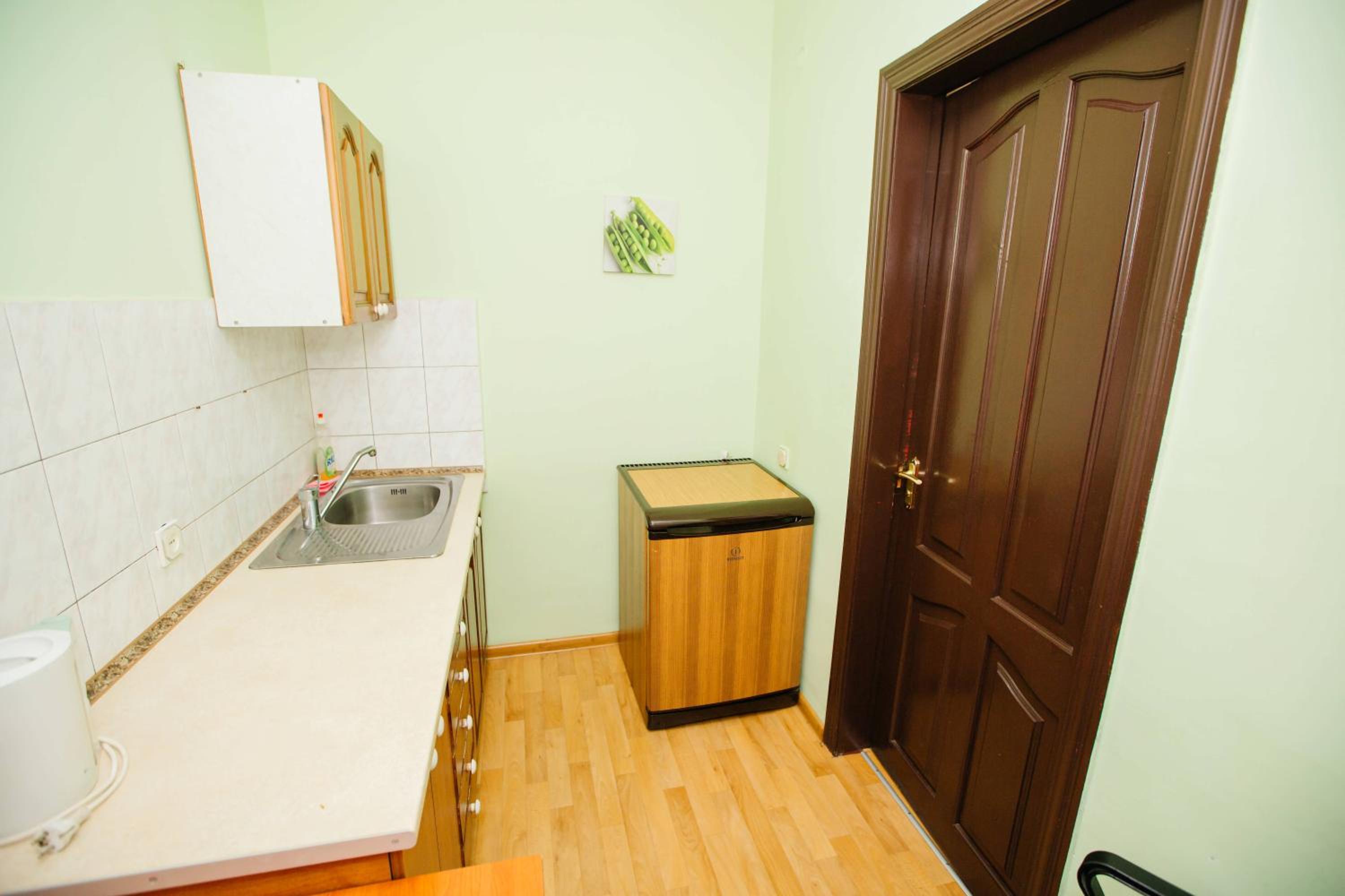 All accommodations at Hotel Uyut are thoughtfully furnished with essential amenities including a TV, microwave, fridge, and kitchenware. For added convenience, apartments boast fully equipped kitchens with stoves.