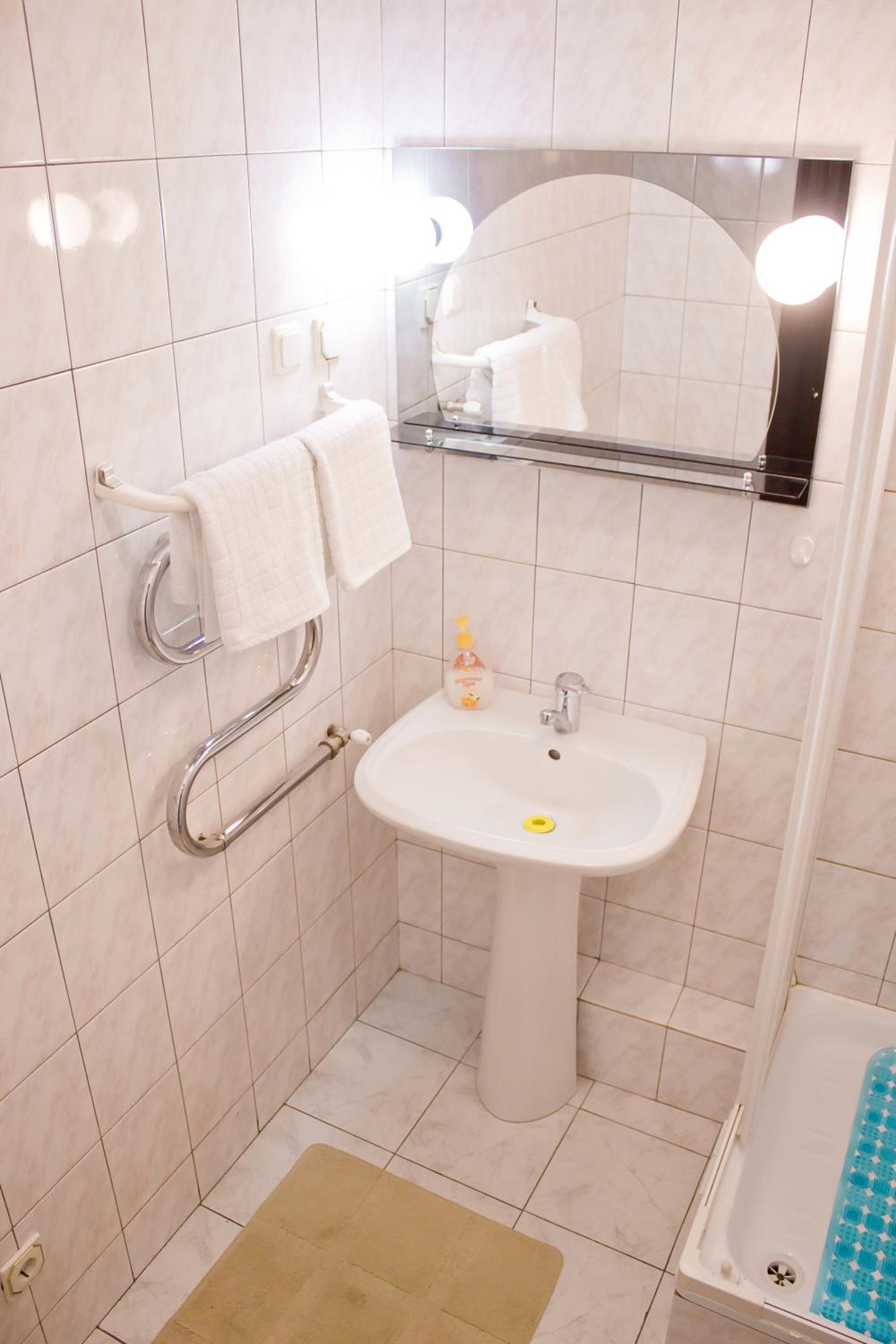 Ужасные душевые кабинки, на кухне только микроволновая печь, в комнате только общий свет, то есть ни ламп, ни светильников, ужасно неудобно! В 7 или в 8 утра женщина которая заселяла начала громко разговаривать, то есть вообще все равно что есть люди которые могут еще спать в это время! У хостела был генератор, но он работал якобы только на котельную, в итоге в номере все равно было холодно! У меня был номер за 500 грн с удобствами на коридоре и это трэш!