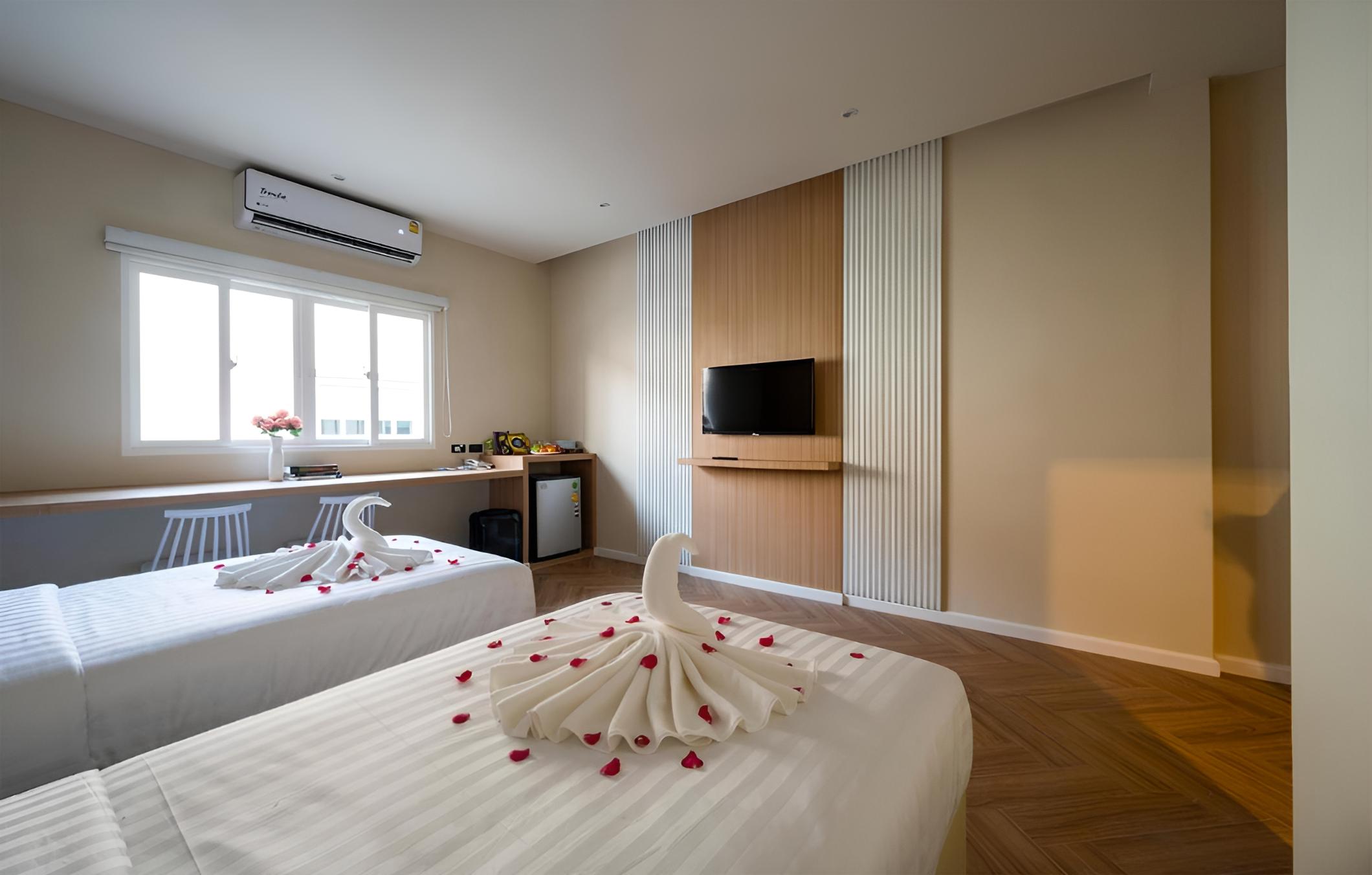 The 4-star Grandbangsaray offers air-conditioned rooms with free WiFi and private bathrooms. Each room comes with a desk, flat-screen TV, and complimentary toiletries for a comfortable stay.