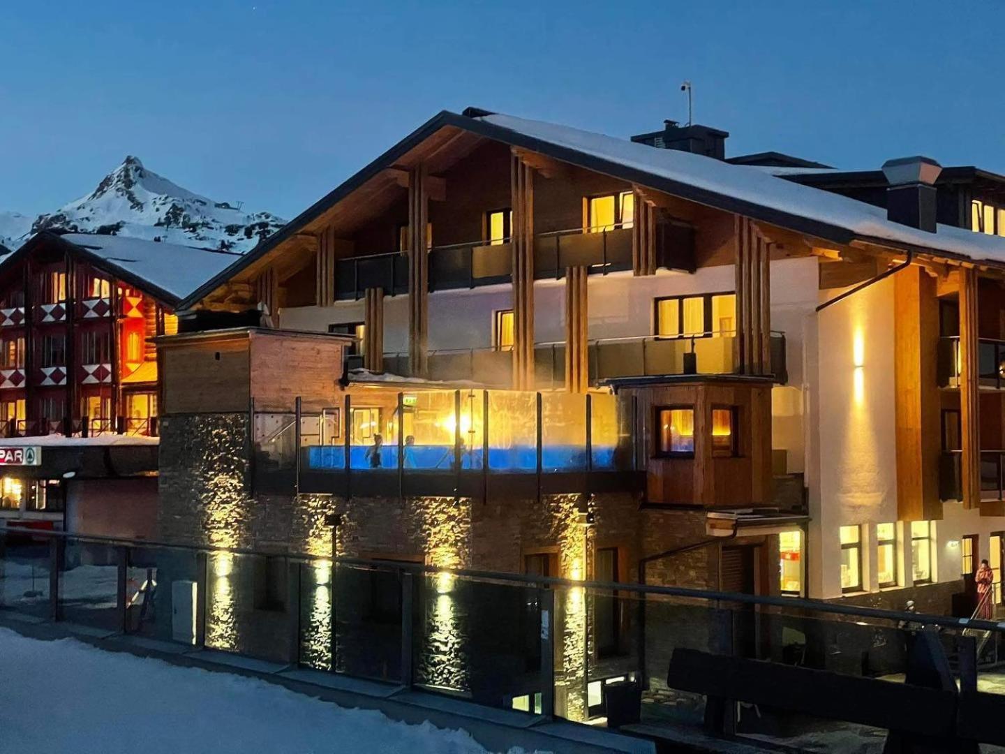 Sehr schönes Hotel, geschmackvolle Ausstattung, direkt neben Lift, hervorragende Küche, reichliche Auswahl bei Frühstück & Abendessen. Schöner Wellnessbereich und besonderes Highlight der warme Pool auf der Terrasse mit Blick auf Piste und Sonnenuntergang .
