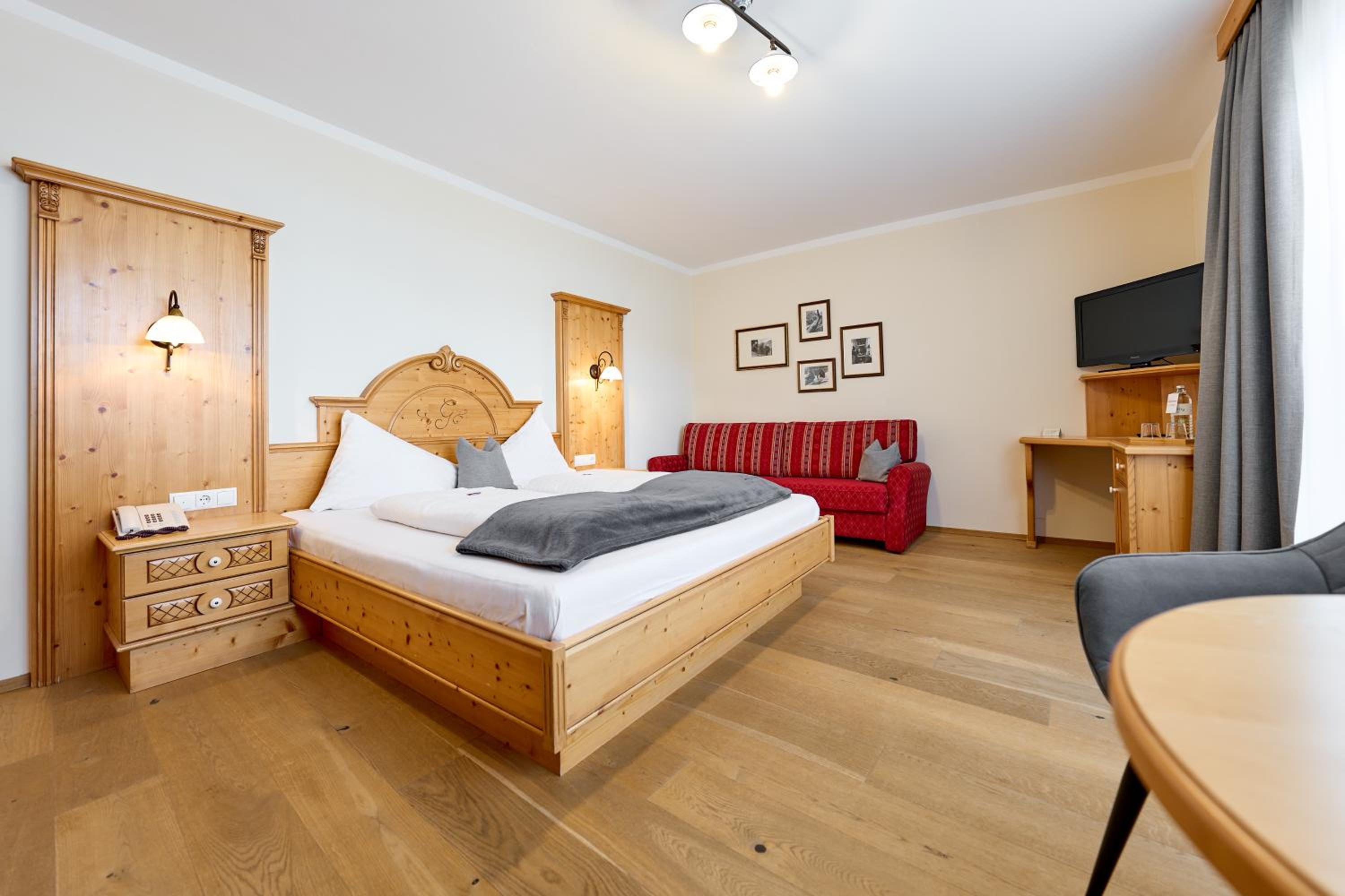Immerse yourself in the charming Alpine atmosphere with most rooms furnished in traditional country-style, providing a cozy and authentic experience during your stay.