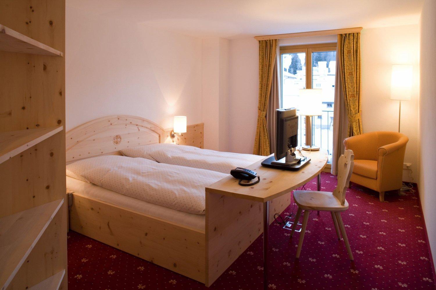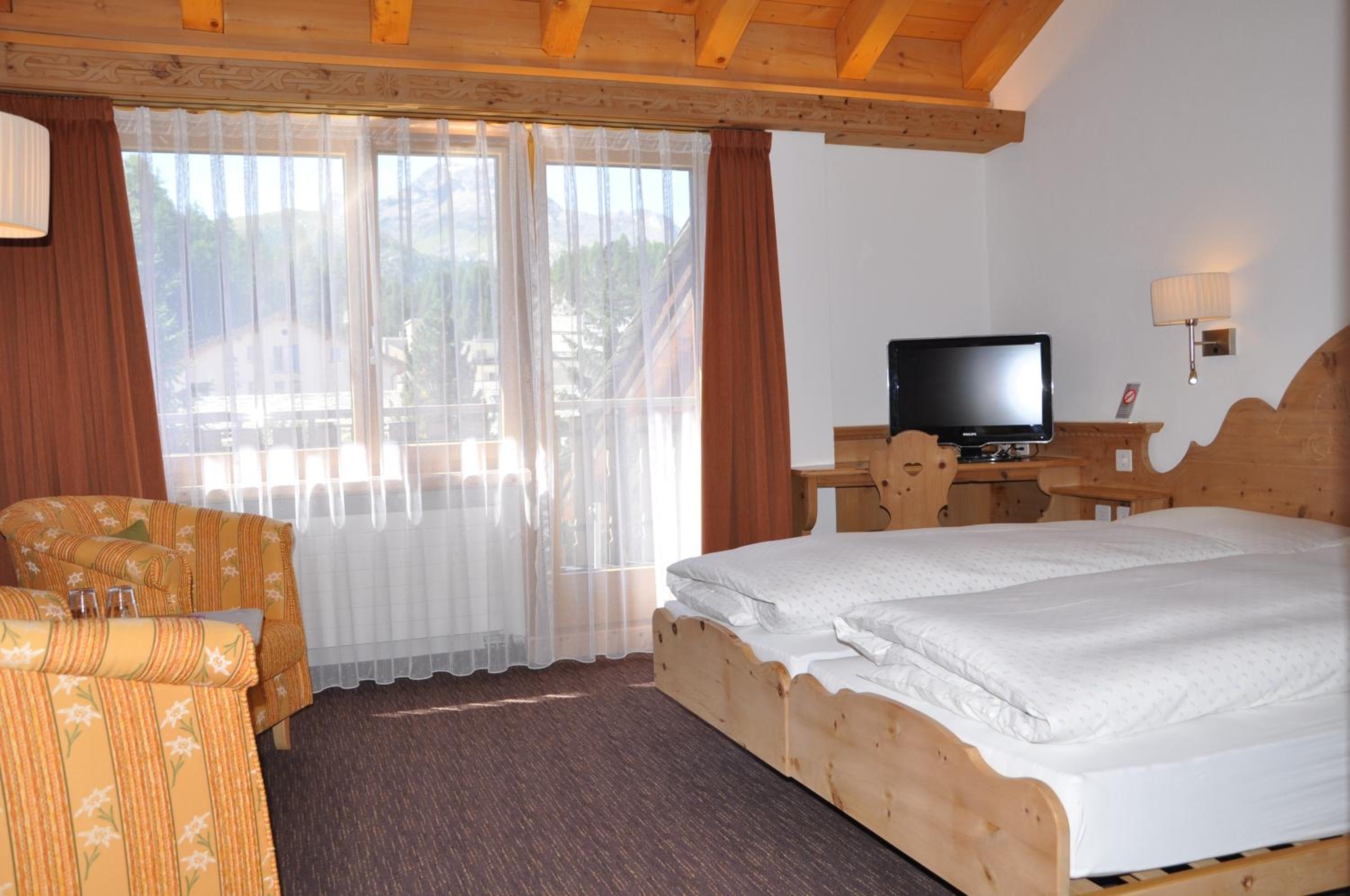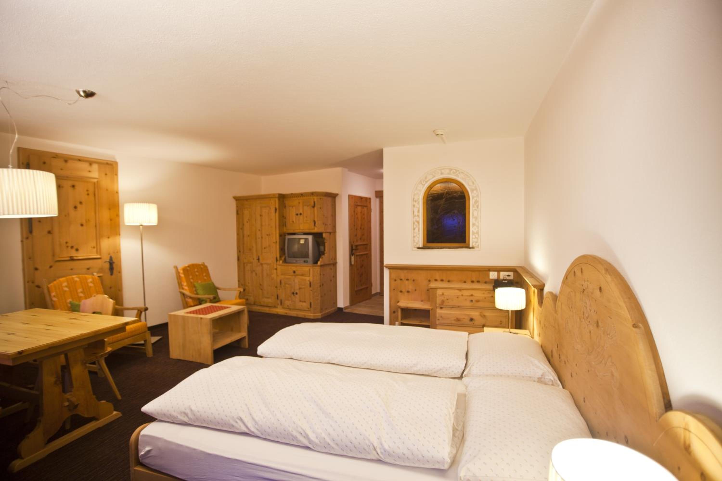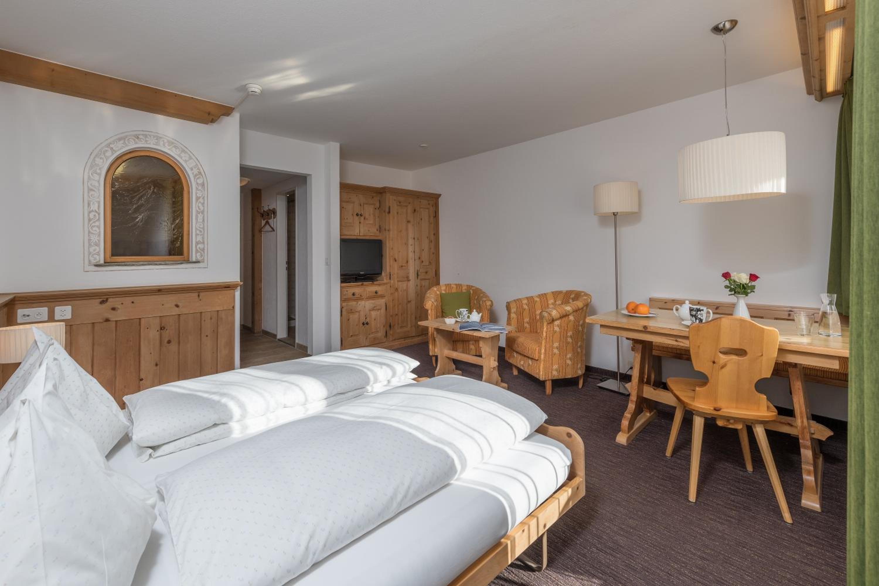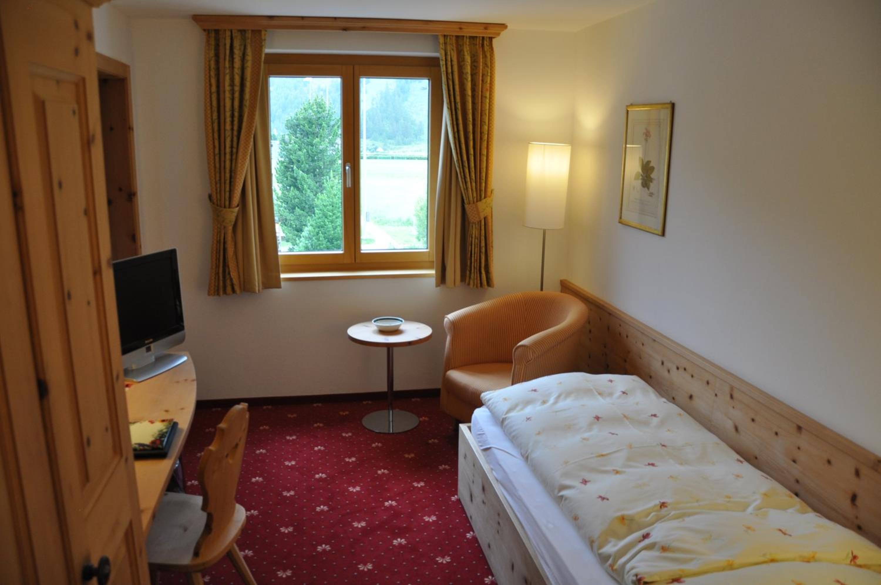Im Zimmer duftet es heimelig nach dem Arvenholz der geschreinerten Einbaumöbel. Personal immer sehr nett und hilfsbereit. Zentrale Lage gegenüber dem Eisplatz und der Tiefgarage.