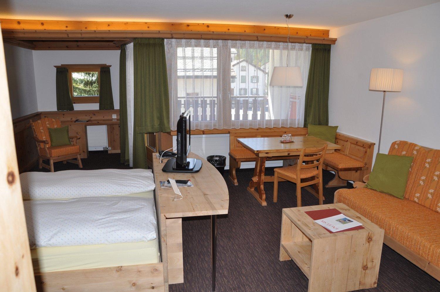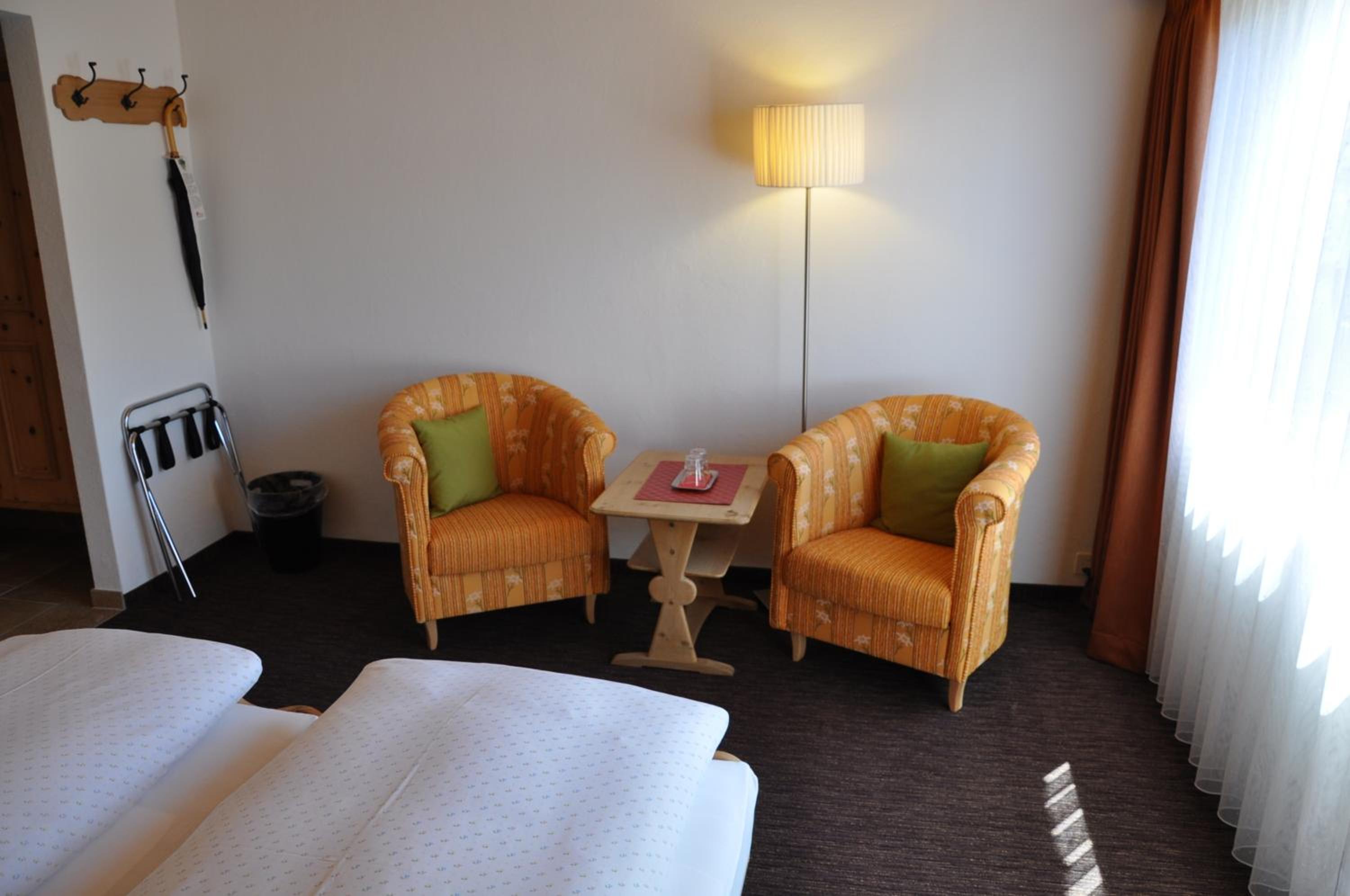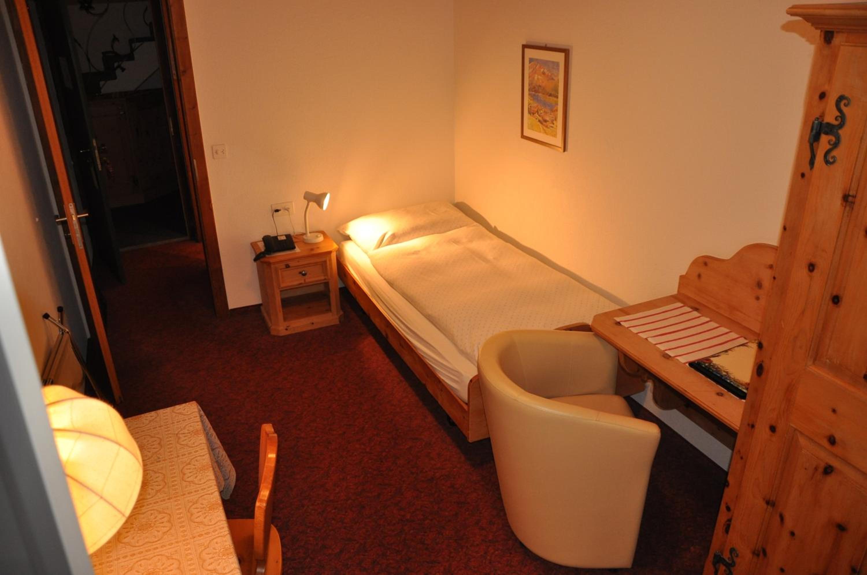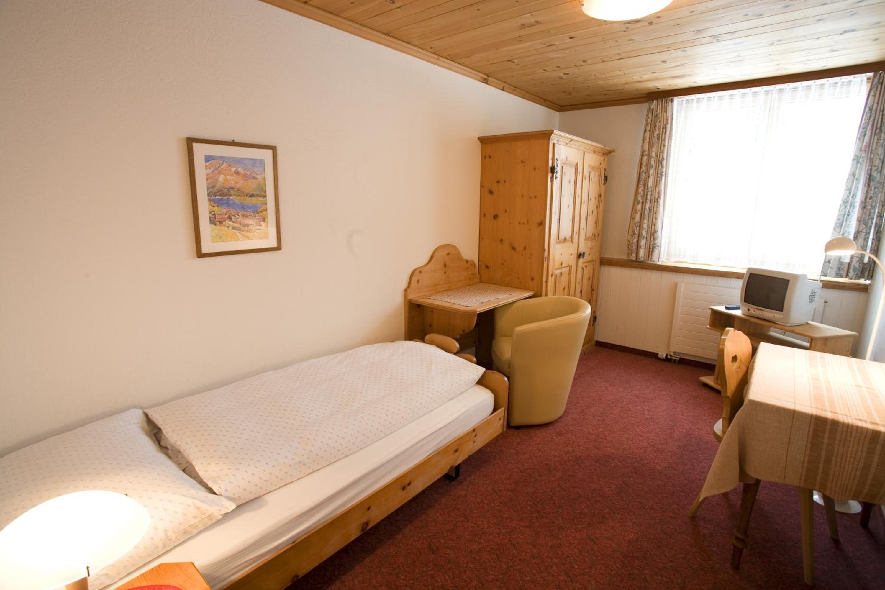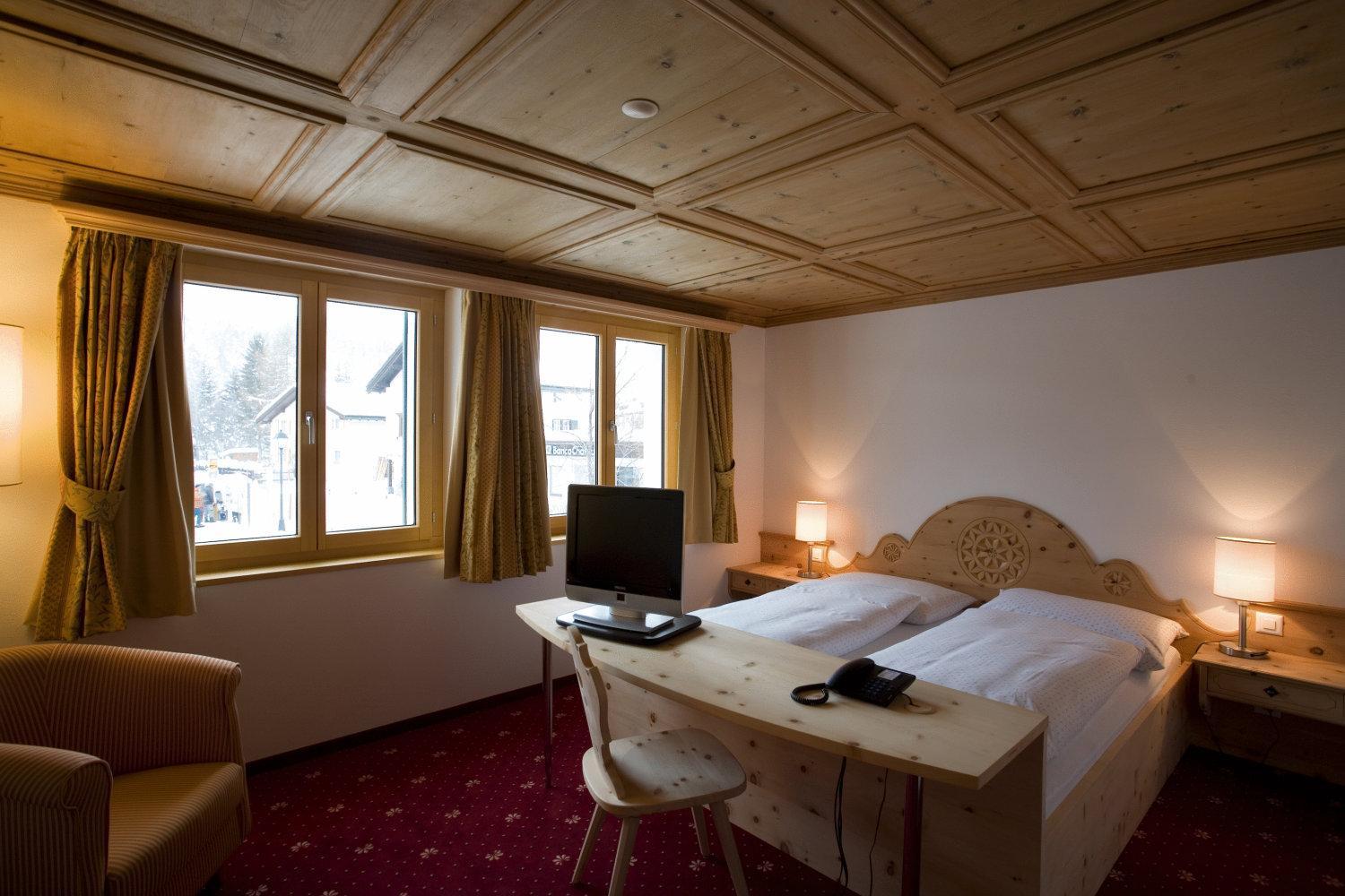 Im Zimmer duftet es heimelig nach dem Arvenholz der geschreinerten Einbaumöbel. Personal immer sehr nett und hilfsbereit. Zentrale Lage gegenüber dem Eisplatz und der Tiefgarage.