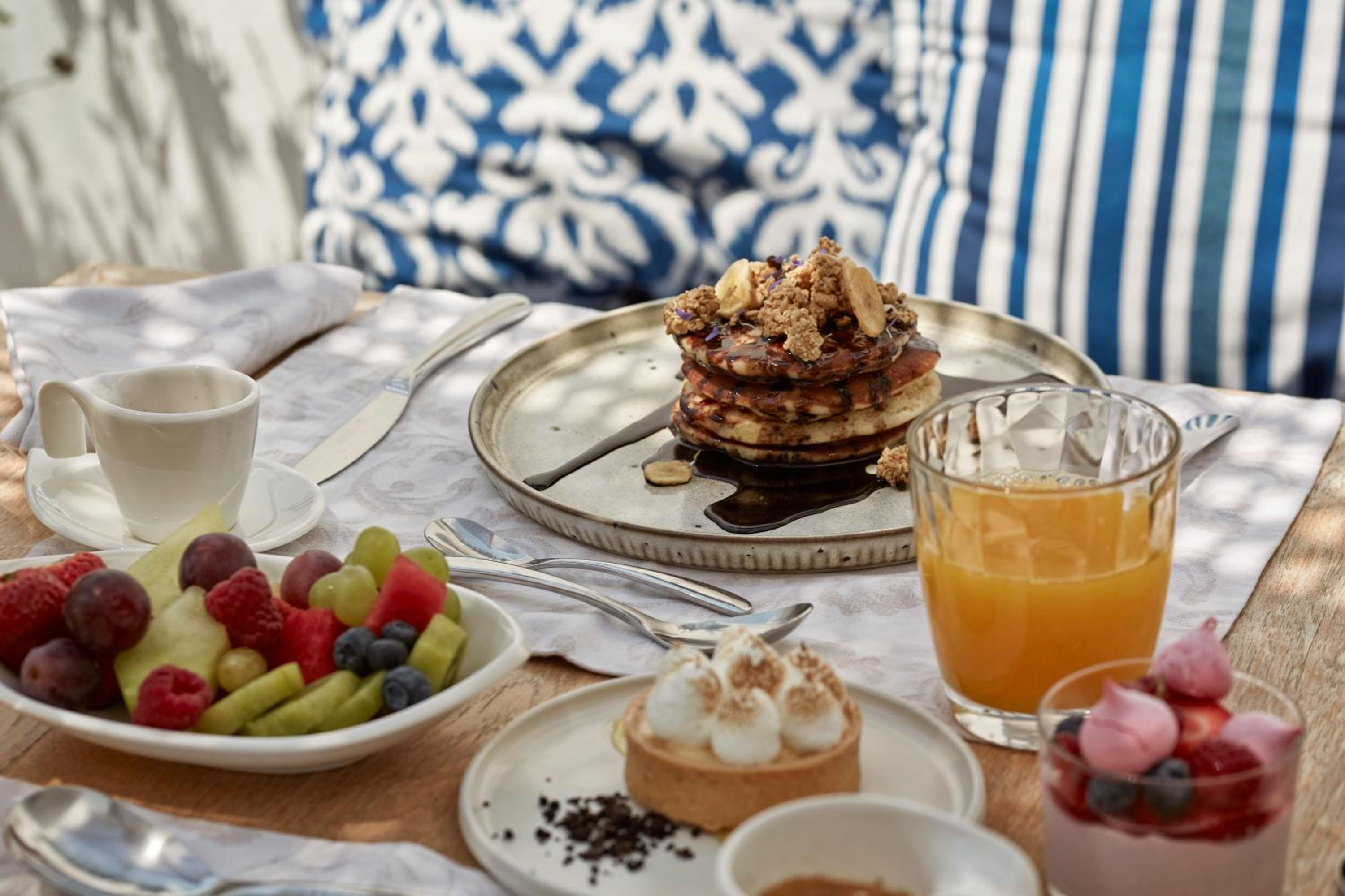 The rooms are very comfortable , clean and chic. Beds so comfortable you don't want to get out of them in the morning. The food at the restaurant is very good (as a New Yorker I have high standards but they exceeded them). The beets, Greek salad, burger, all the souvlaki's , bread basket, all standouts.