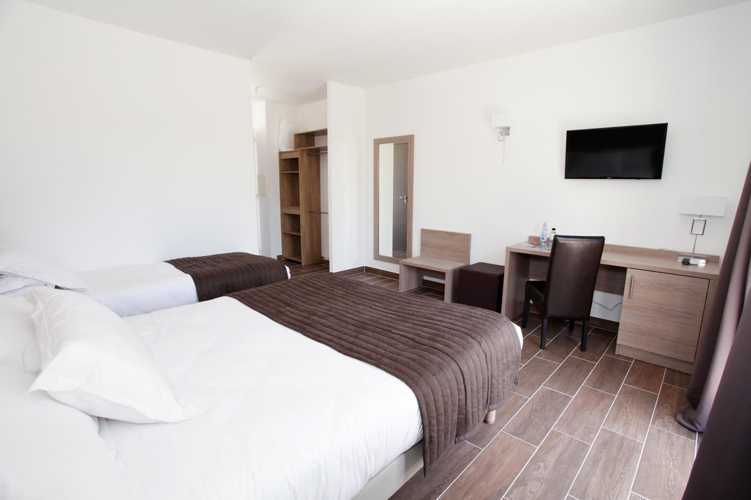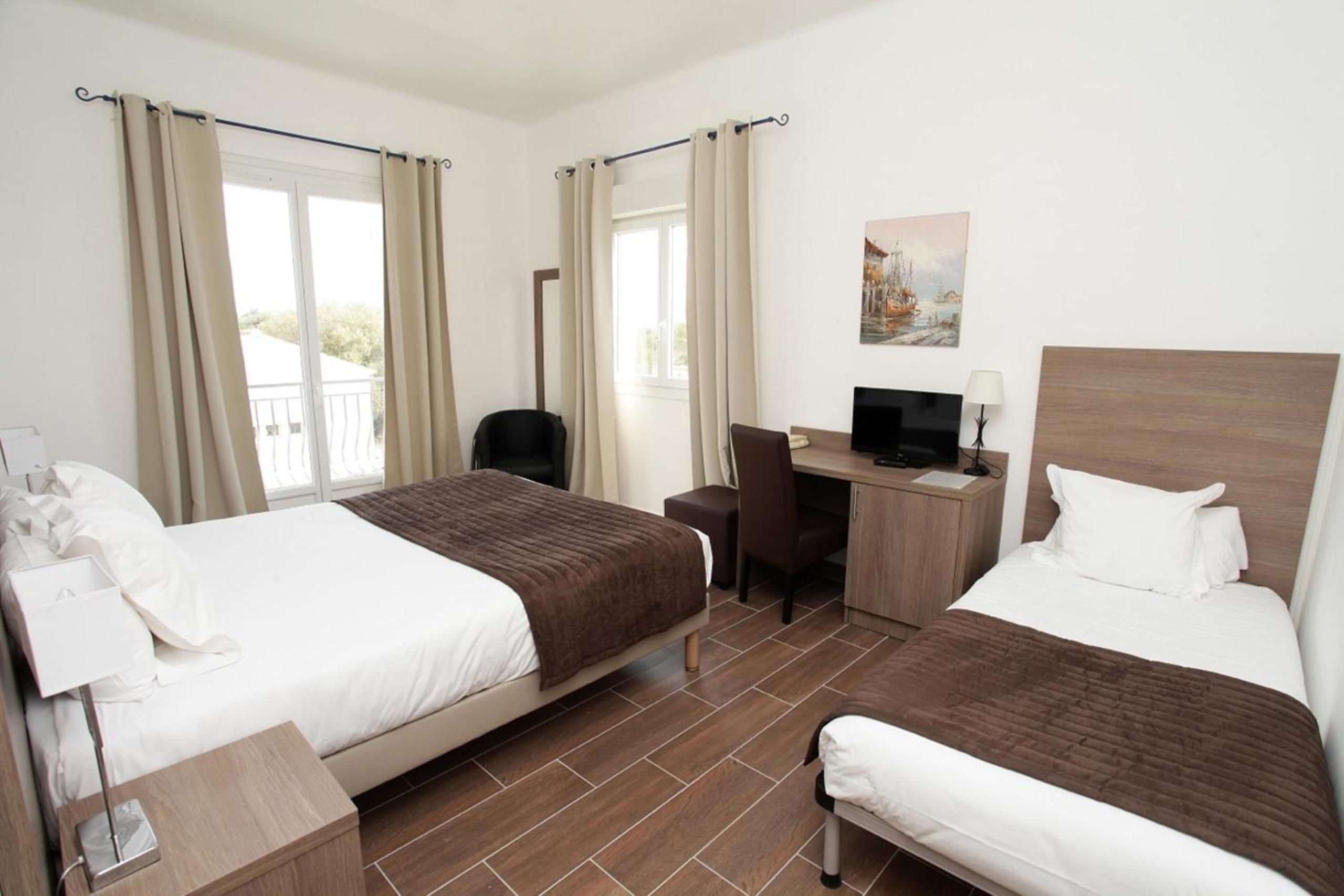 Charming Accommodations: Each air-conditioned guest room at Hôtel des Nacres features a flat-screen TV, radio, and telephone. Relax on your private balcony and enjoy the convenience of a private bathroom with a hairdryer.