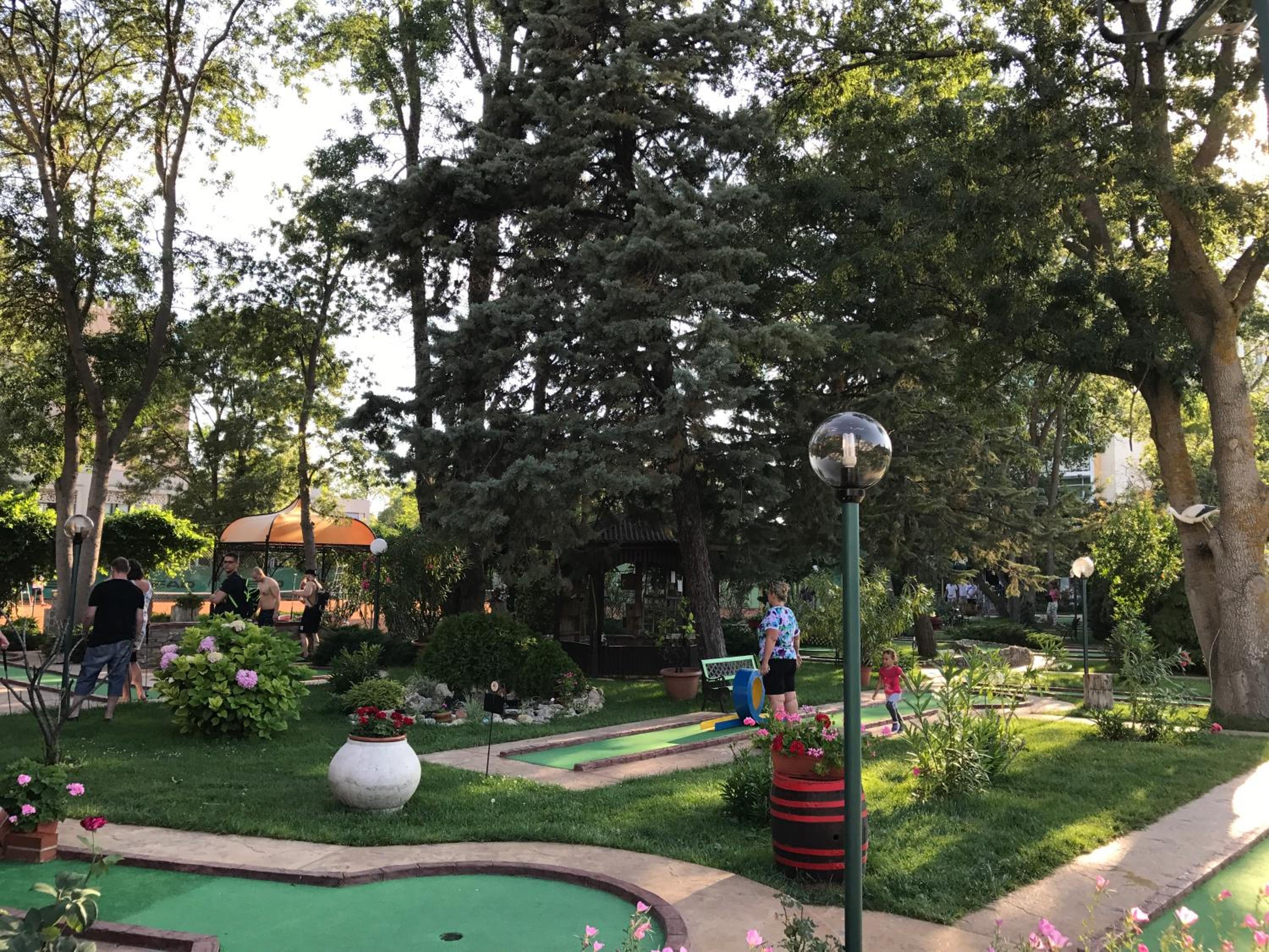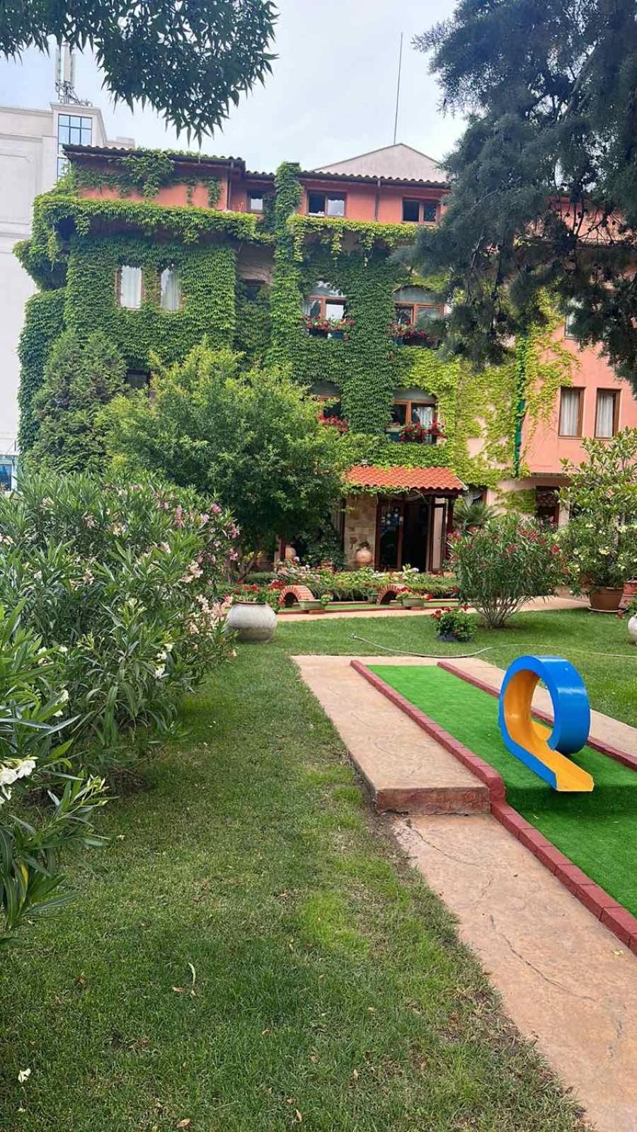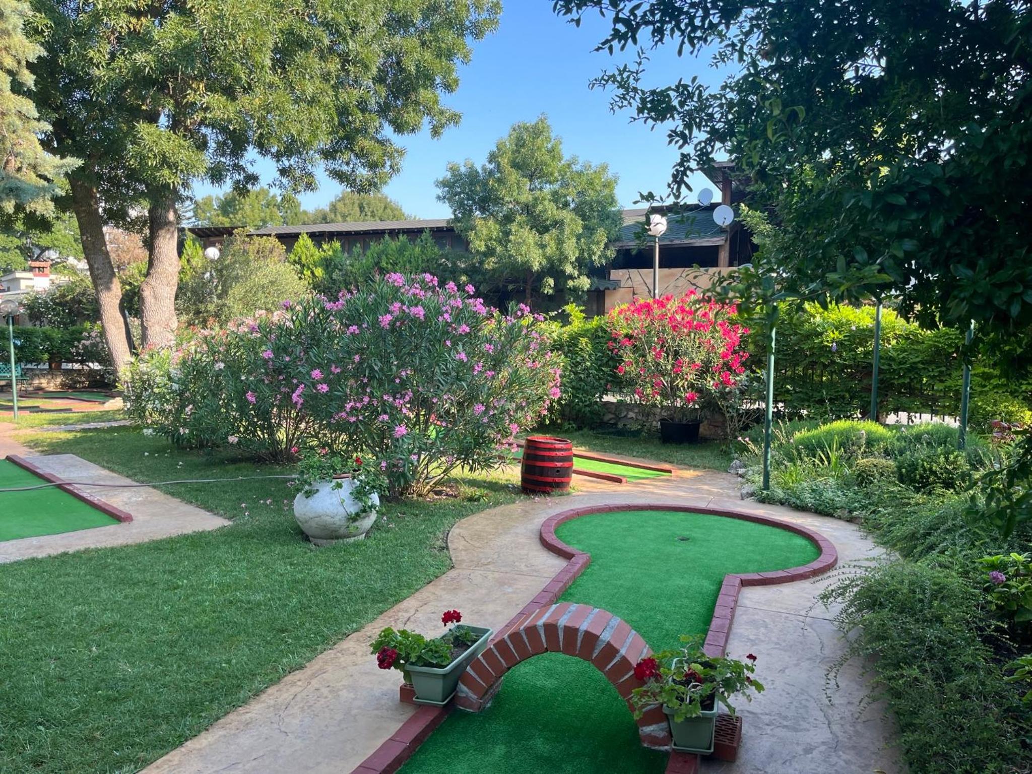 Este o oaza de liniste si verdeata intr-o statiune agitata. Plaja este foarte aproape. Gradina ce gazduieste terenul de minigolf este minunata, plina de leandri infloriti si lamai plini de fructe, cu smochini si tot felul de alte plante care dau un farmec aparte. Gazdele , o familie frumoasa, extrem de primitoare si receptiva la orice nevoie a oaspetilor. Pensiunea este decorata cu mult bun gust atat pe interior cat si pe exterior iar perdeaua de iedera care imbraca exteriorul este o adevarata incantare pentru ochi. Am fi vrut sa avem mai mult timp sa jucam minigolf si tennis. Camerele sunt spatioase si patul foarte confortabil.