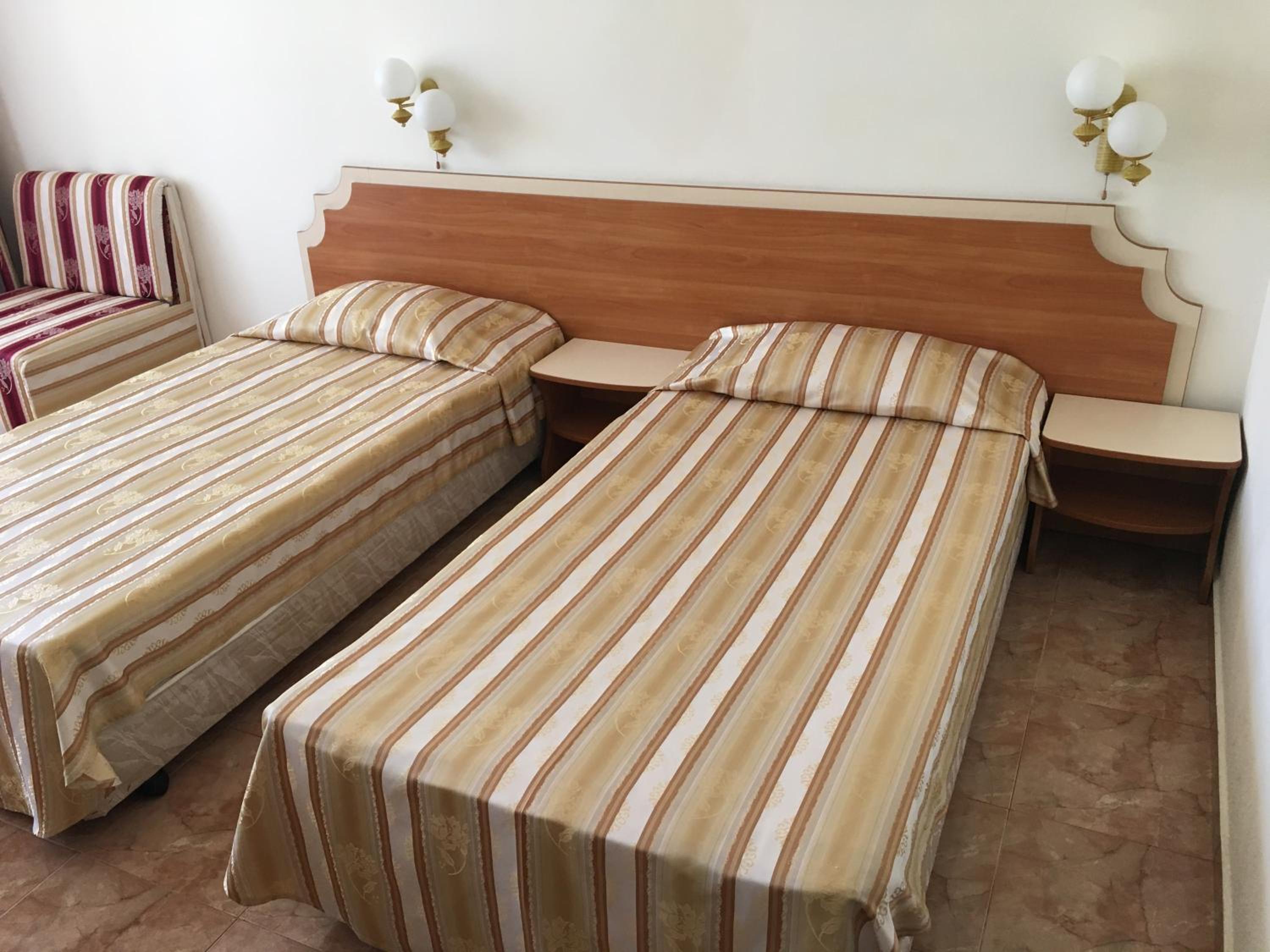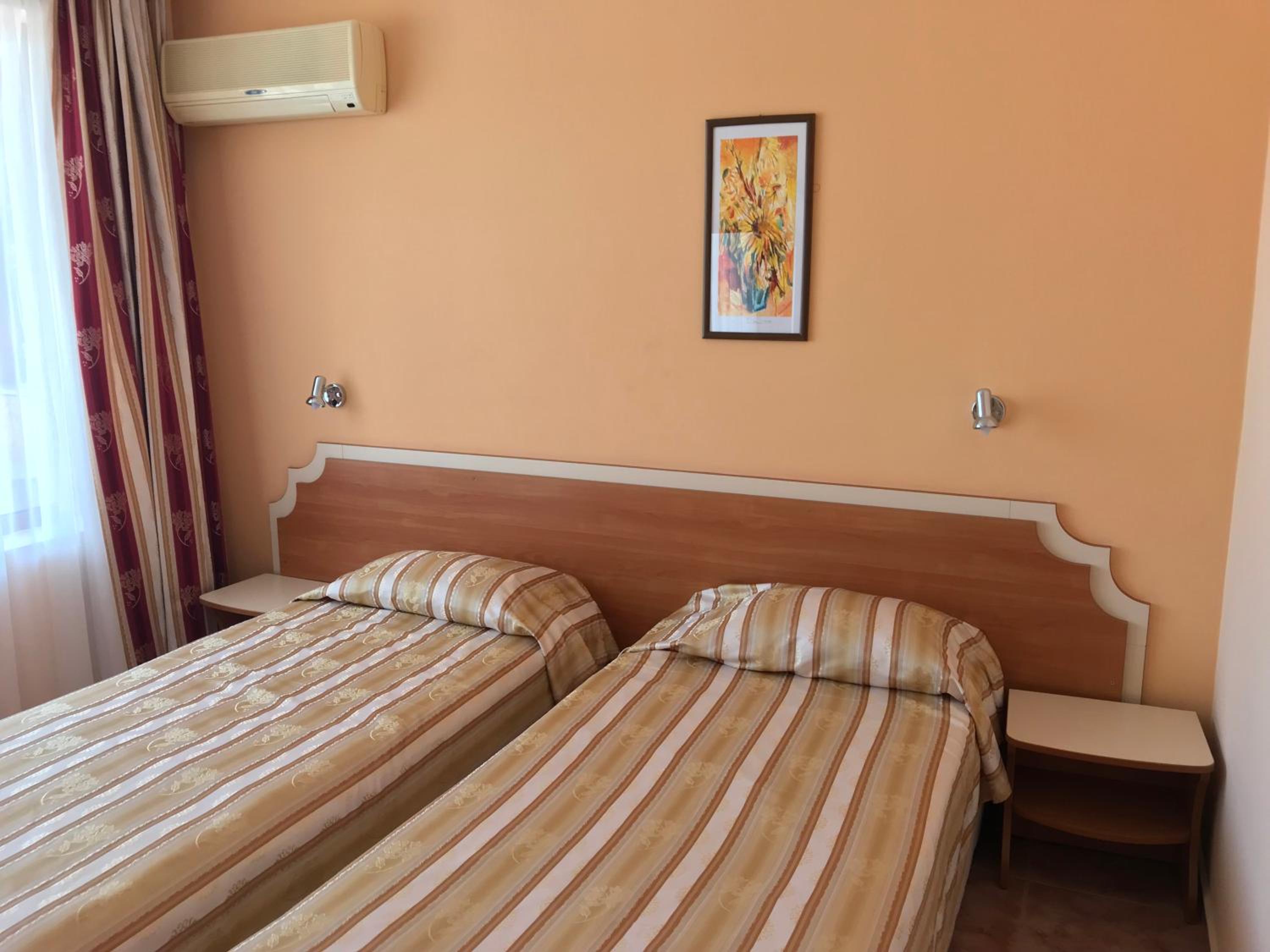 Nestled in a lush garden, Oleander House and Tennis Club offers a serene retreat in Sunny Beach. The rooms boast balconies overlooking the greenery, providing a peaceful escape for guests.