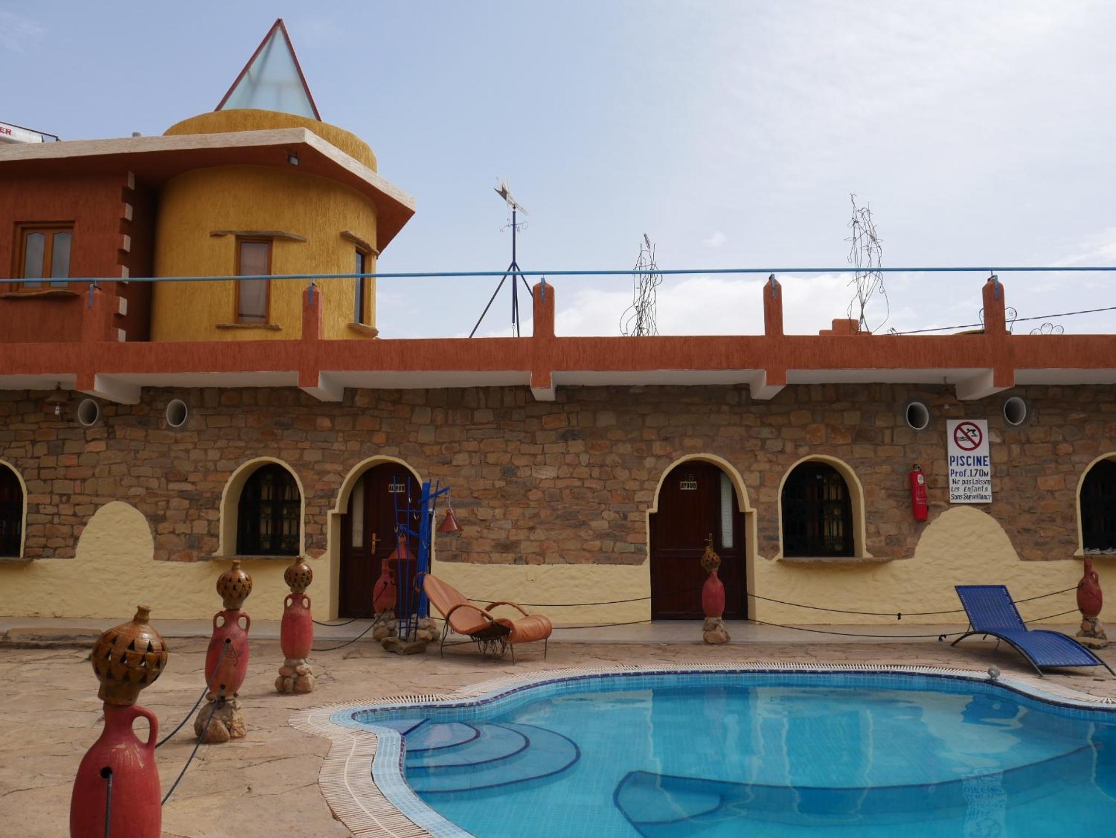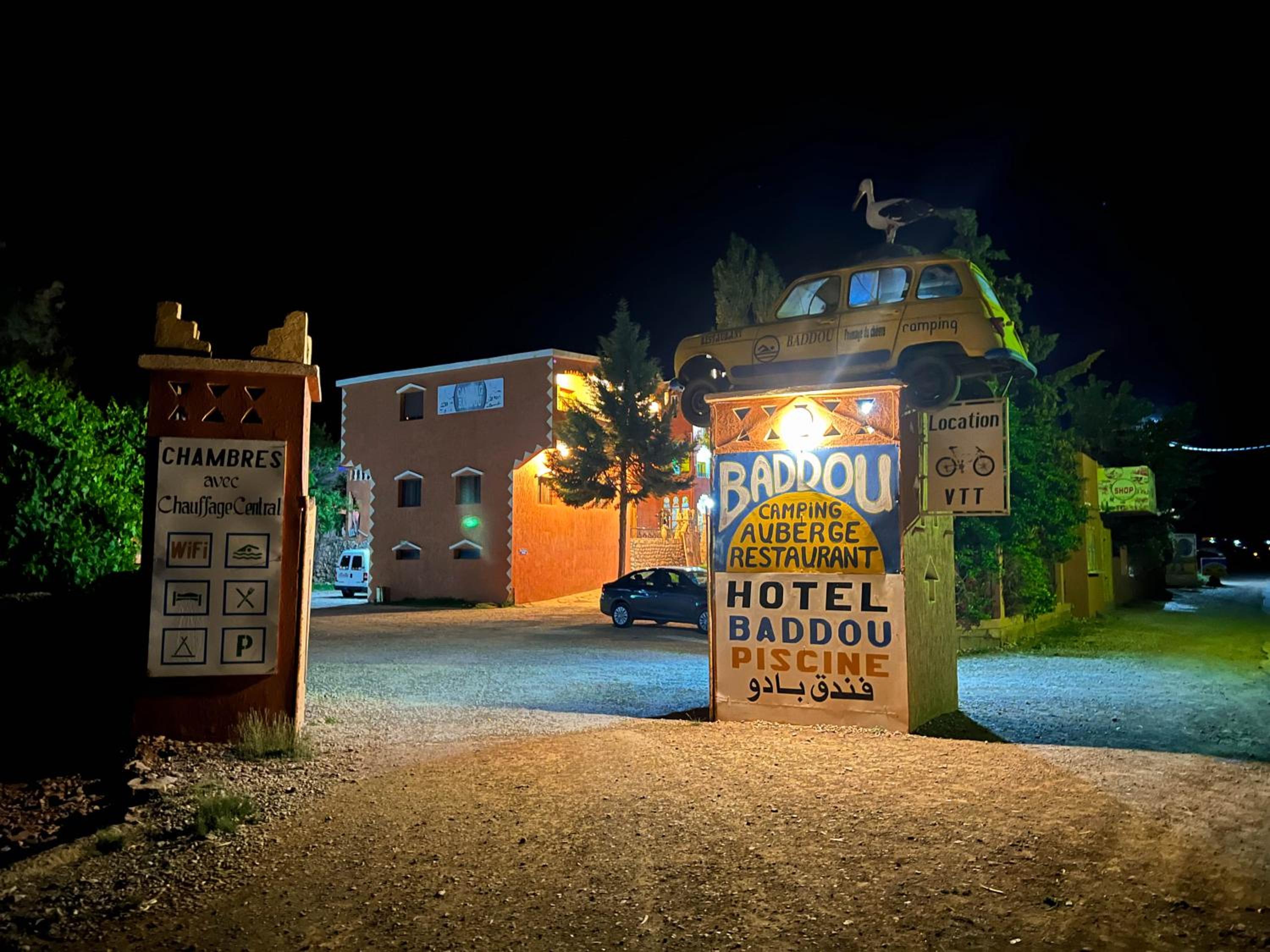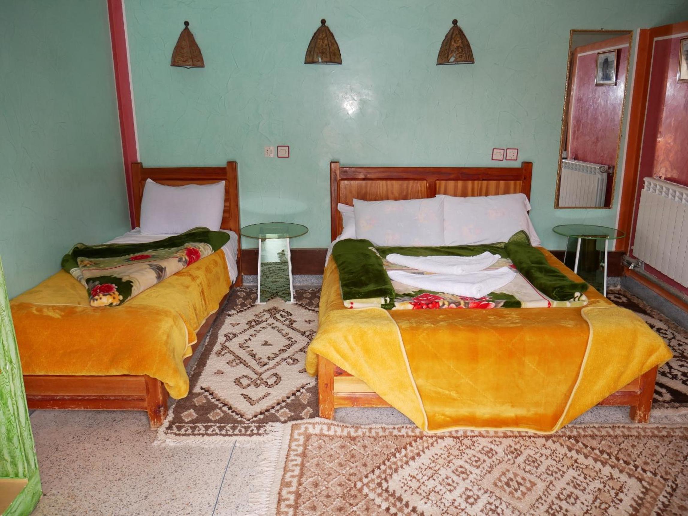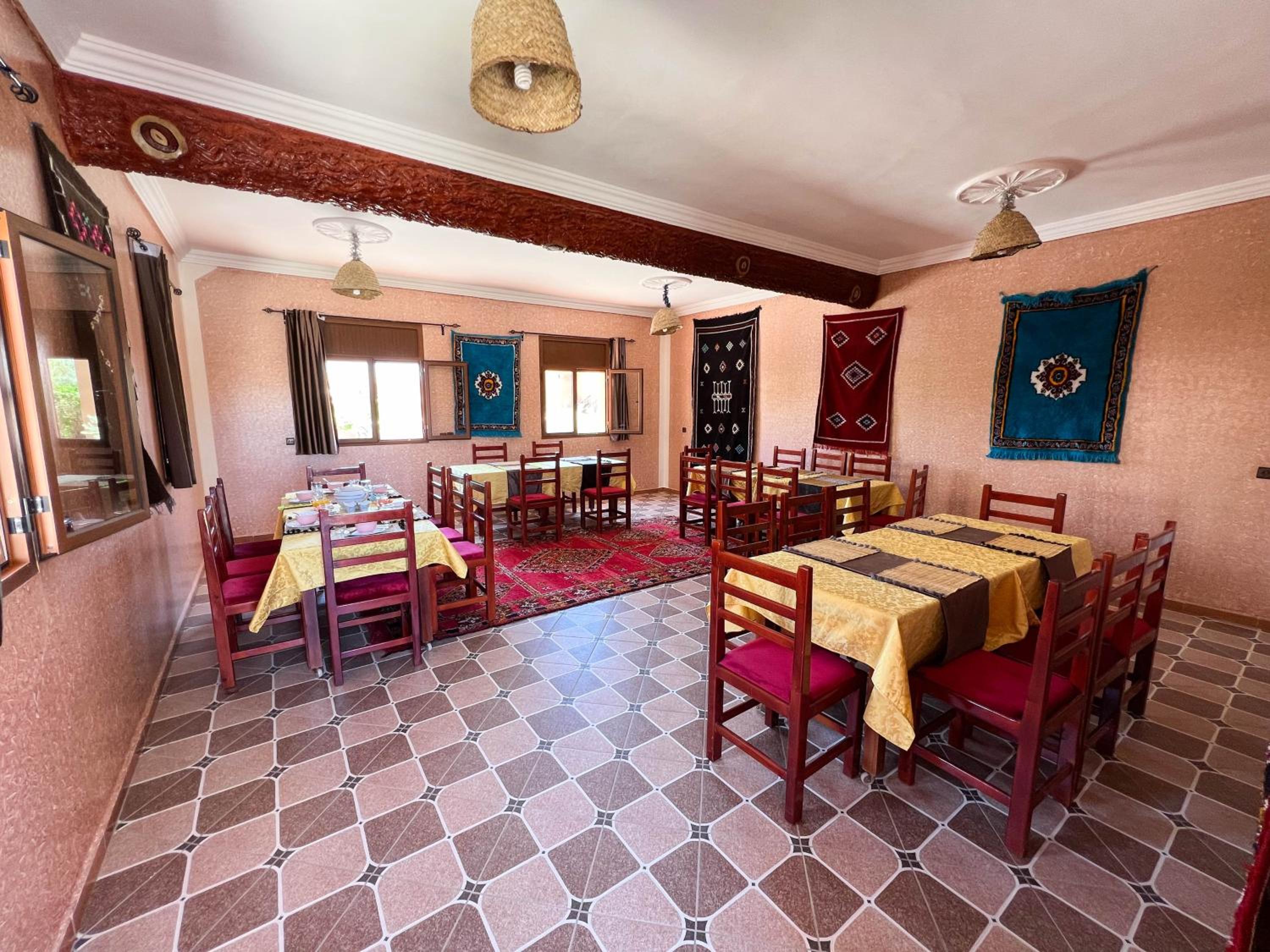 Our host was great, very warm and friendly. He Spoke French and English. Food was great and the rooms were basic but comfortable. The location for the run to Todgha Gorge is excellent. He also has French Renault 4's and 2CV's on the gates which adds to the charm.