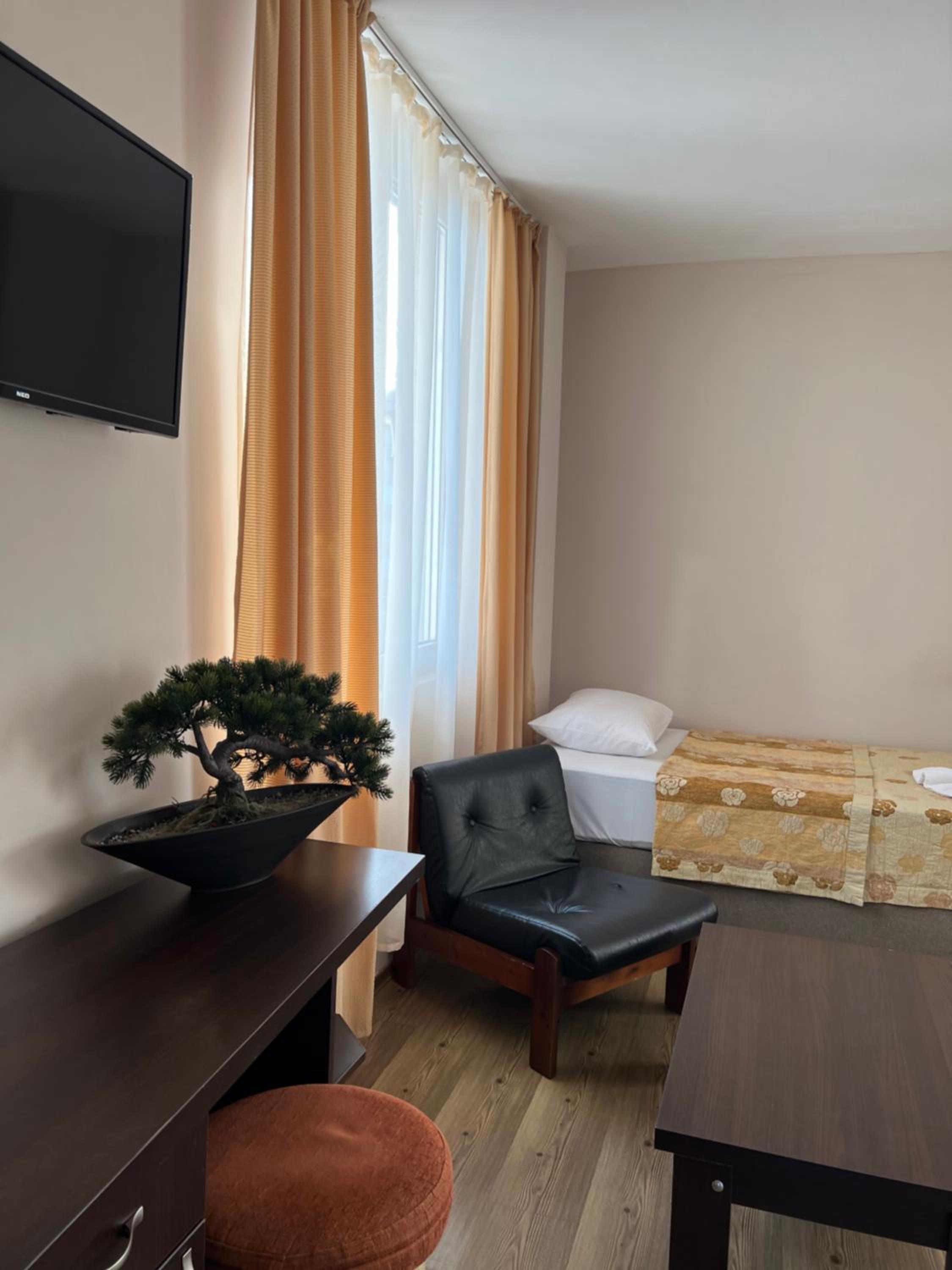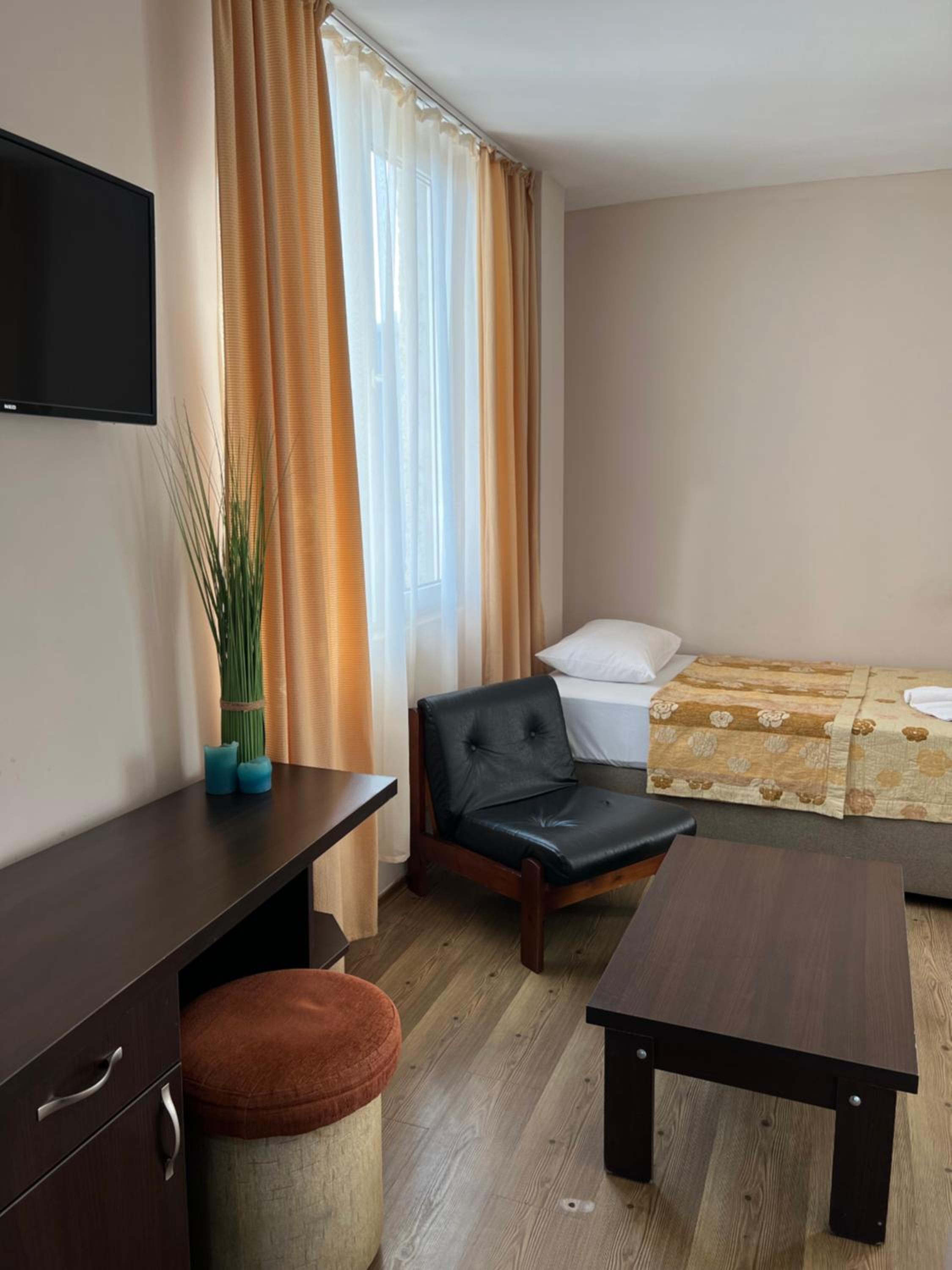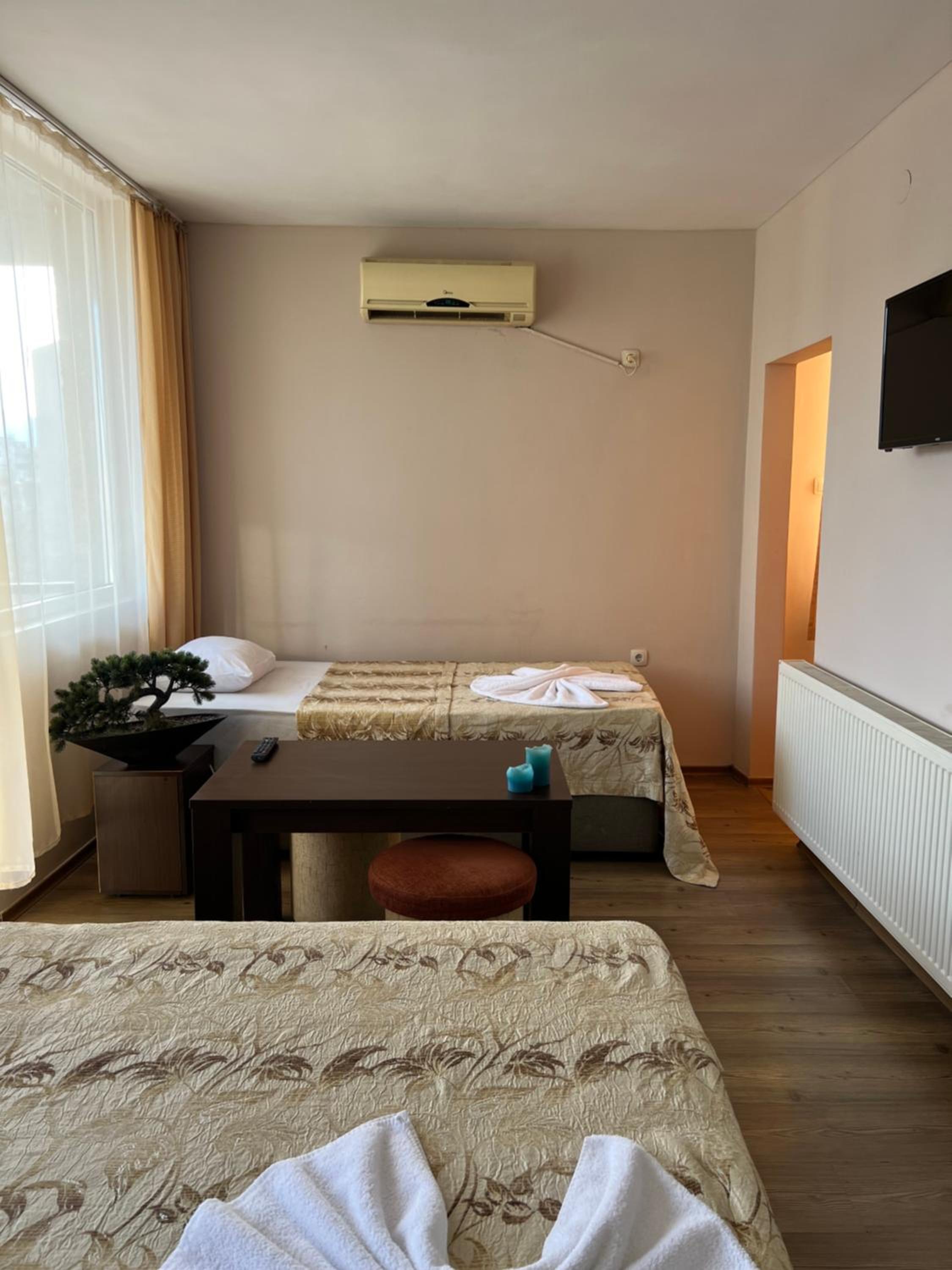 Each room at our 1-star hotel is thoughtfully designed with amenities such as air conditioning, a private bathroom, and a balcony or terrace providing scenic garden or city views. The cozy bed linen and towels ensure a relaxing stay for every guest.