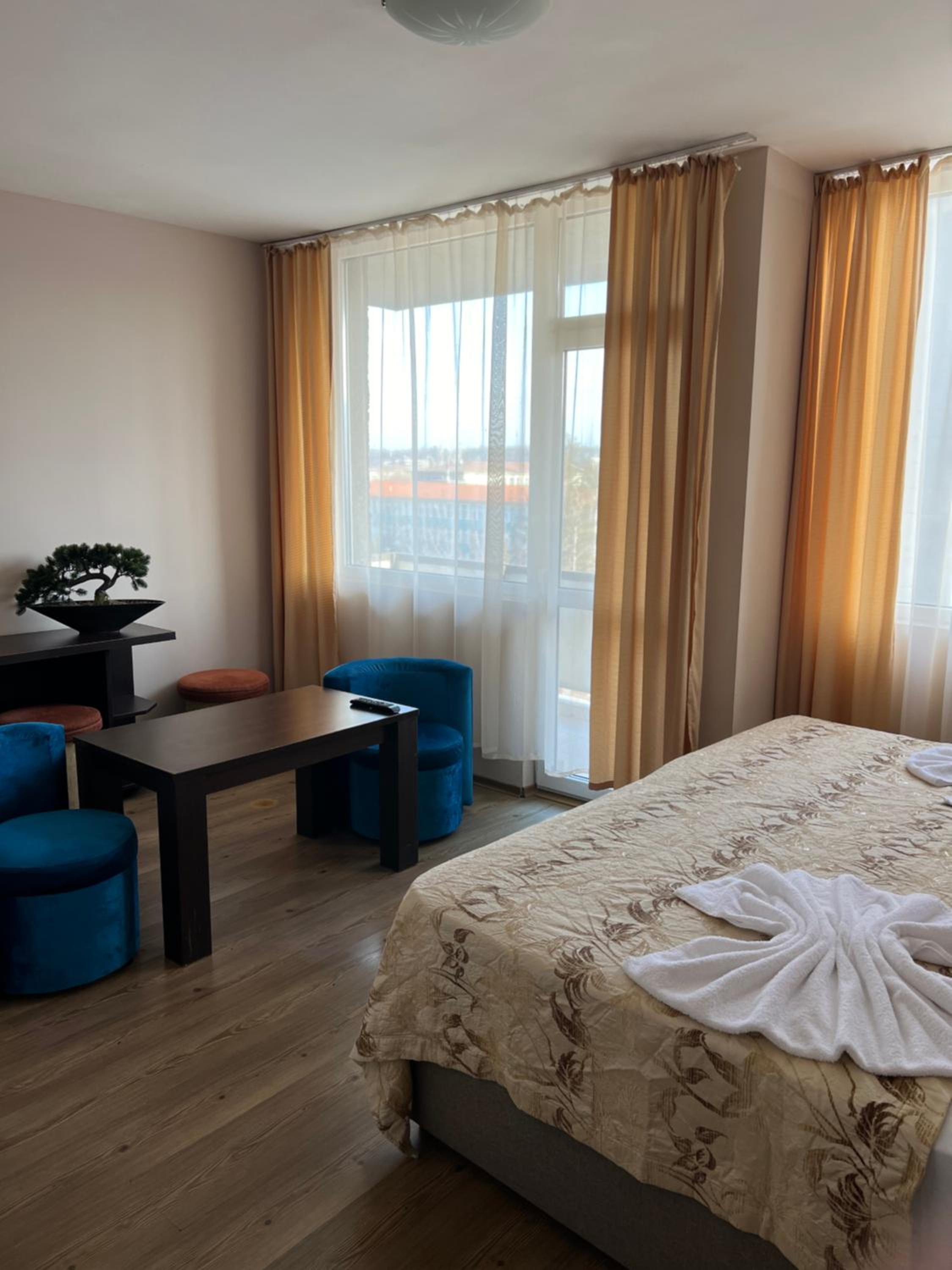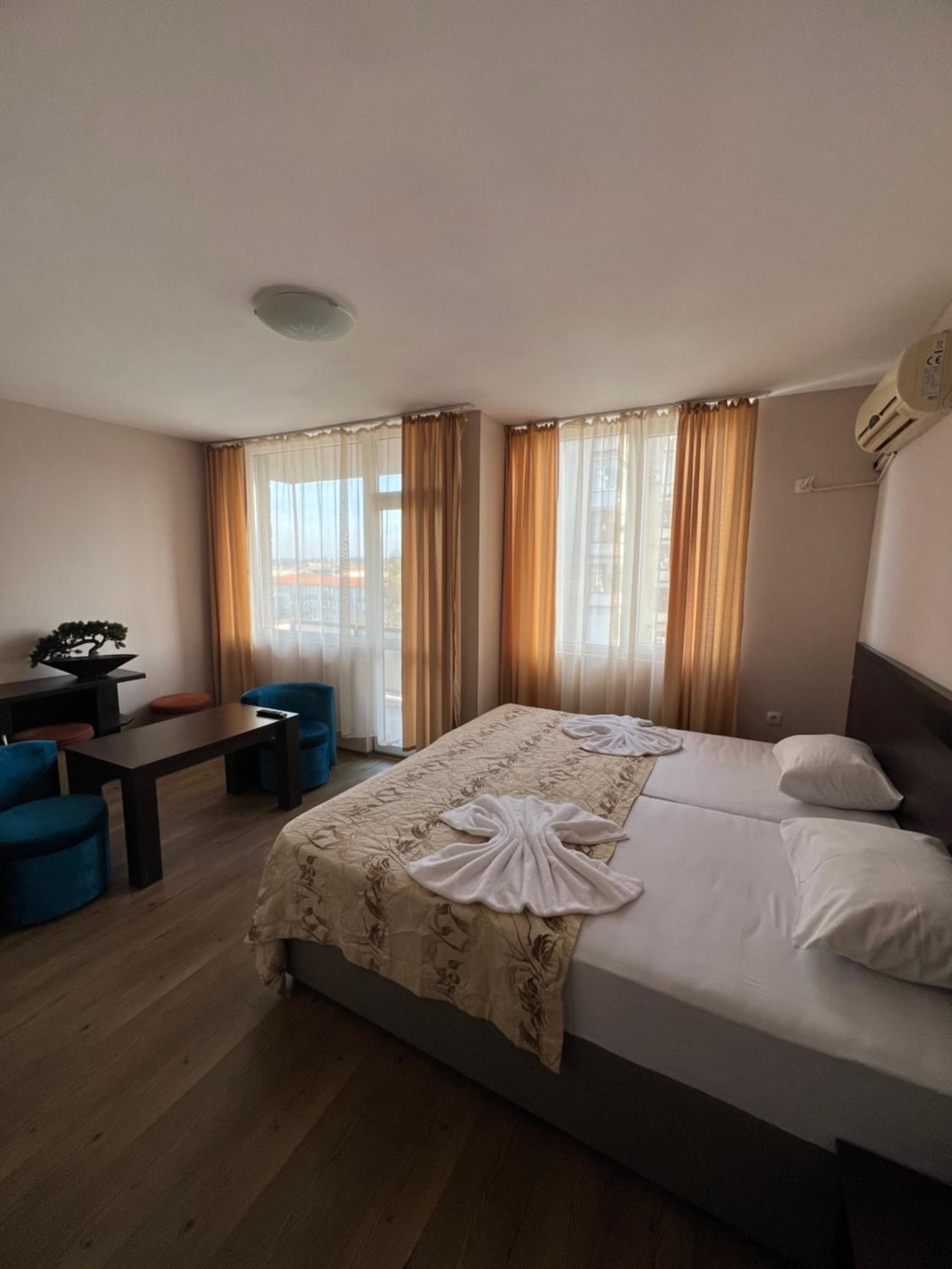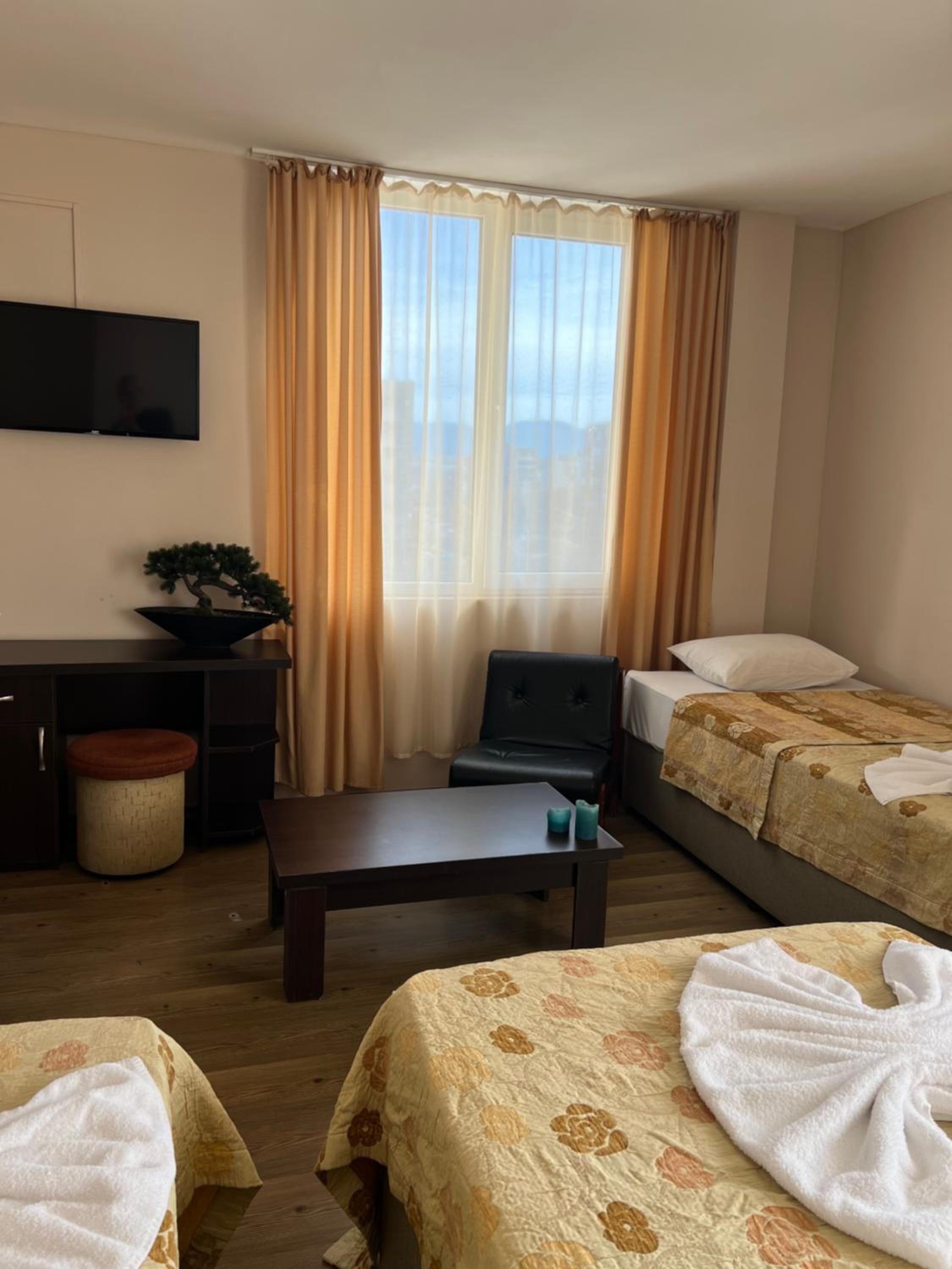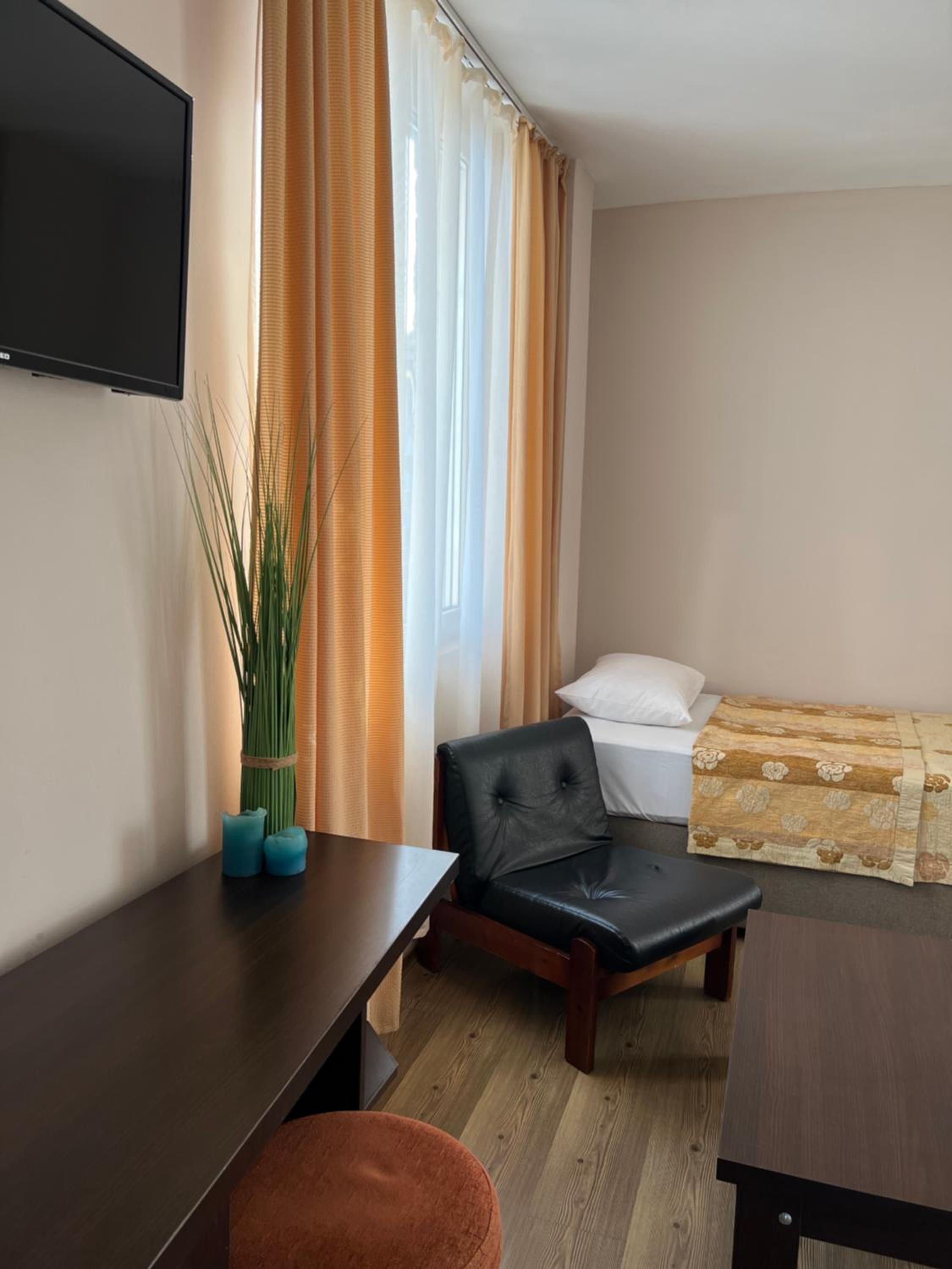 Each room at our 1-star hotel is thoughtfully designed with amenities such as air conditioning, a private bathroom, and a balcony or terrace providing scenic garden or city views. The cozy bed linen and towels ensure a relaxing stay for every guest.