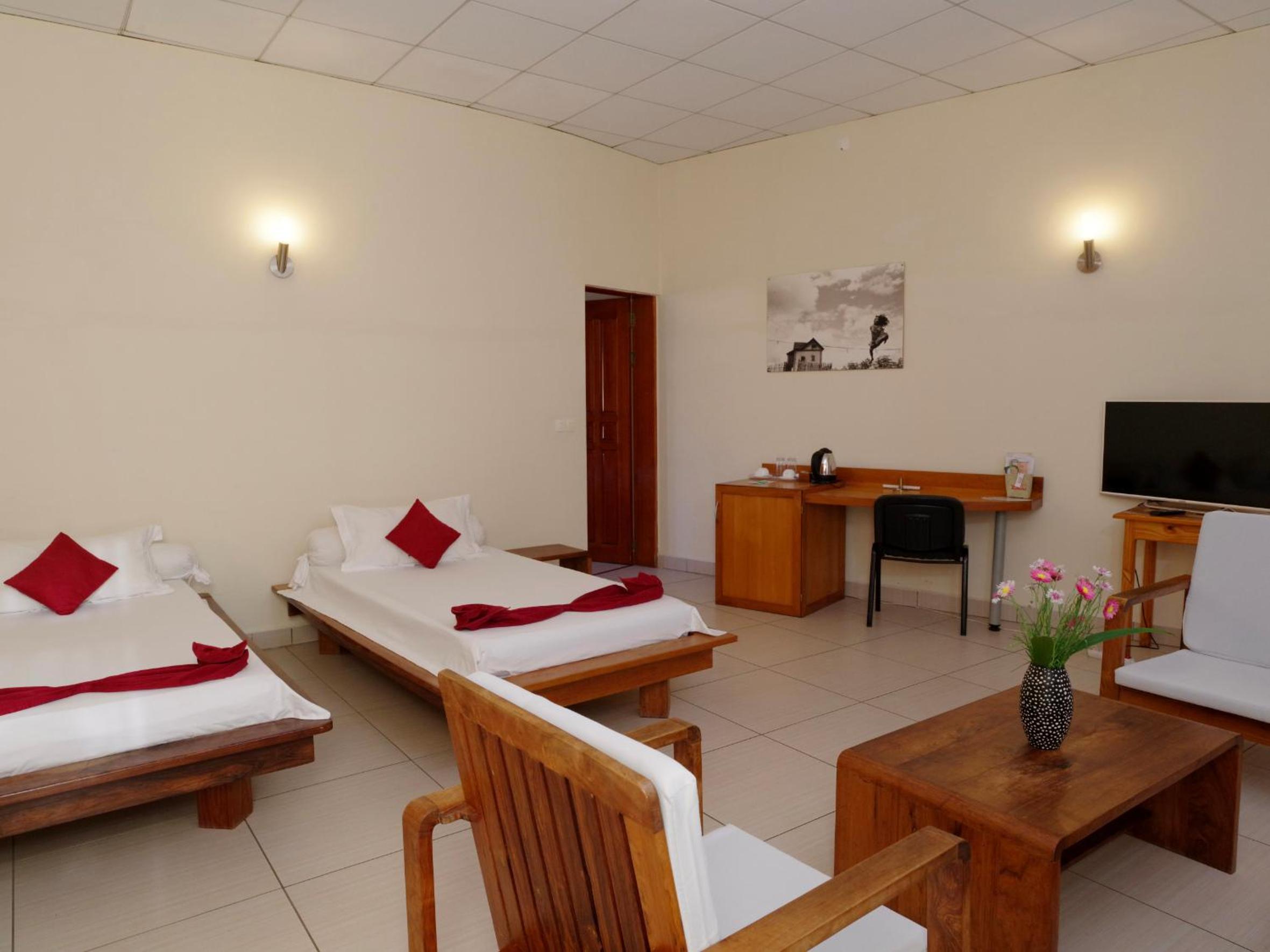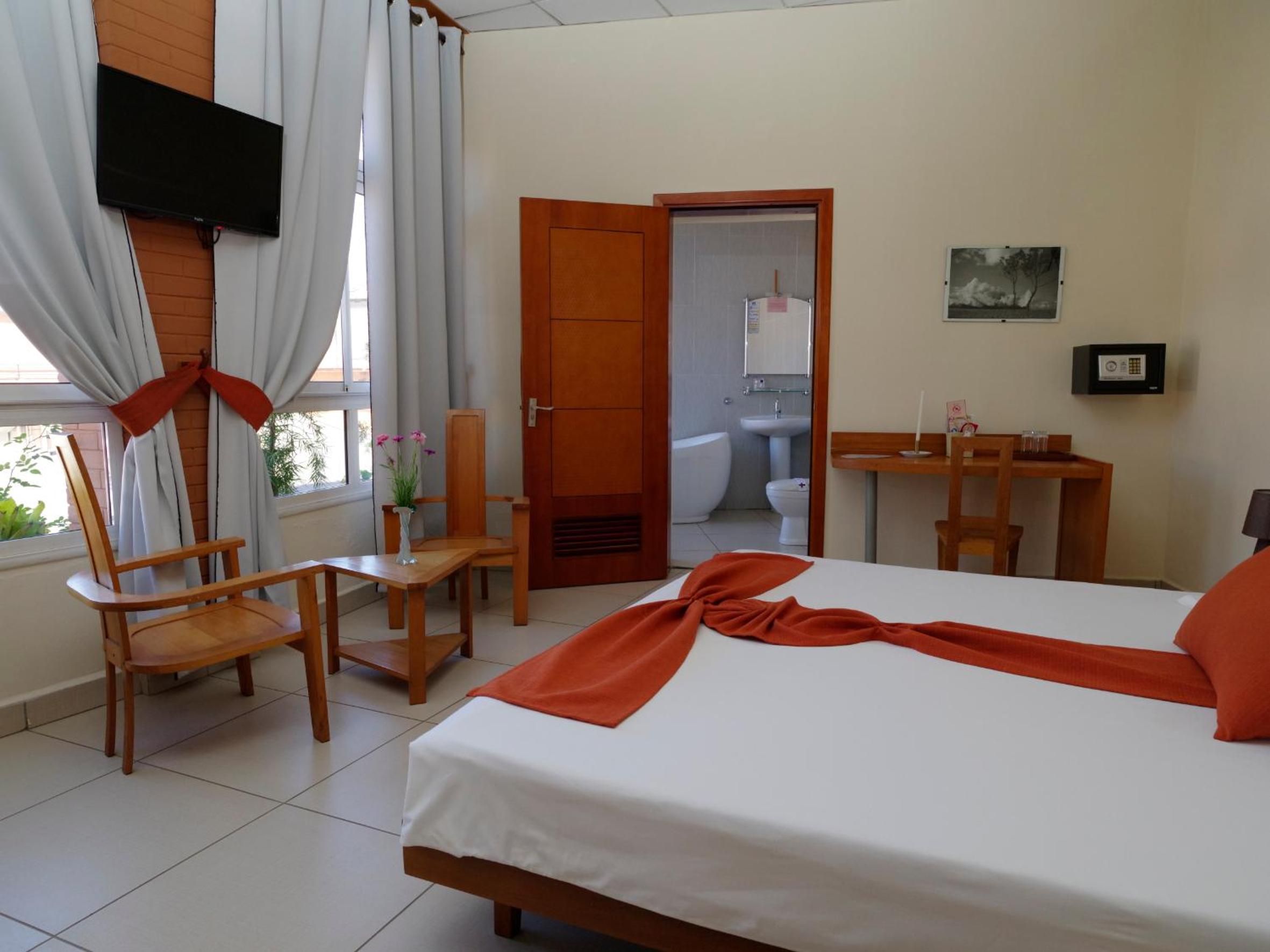Hit and miss, booked on two separate occasions. First room was impeccable, king bed nothing to fault in the facilities and then the second time got the room next door (same class of booking) and the bed was smaller, the chrome in the shower was fraying and sharp, stones were missing in the bathroom and one of the bed side lamps was missing. Best front desk service out of anywhere we stayed in Madagascar. Lots of extra facilities (pool/ games area/ spa/ hammam)