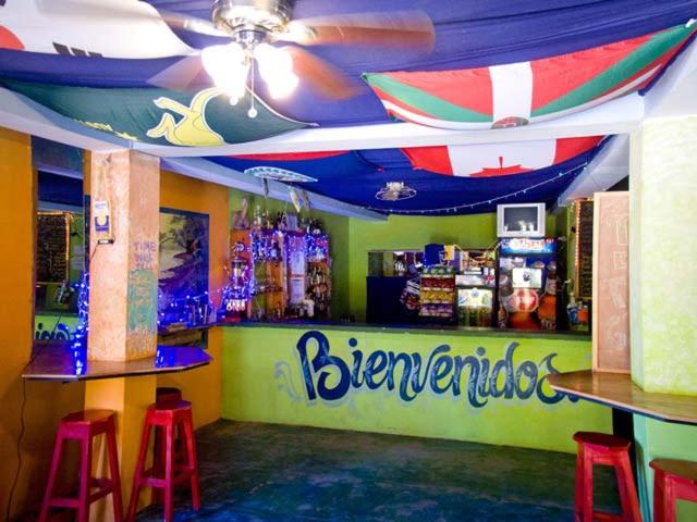 Next to the beach, boats, dive shops. There's a kitchen to share and low-end and loud bar downstairs. Parking in abundance.