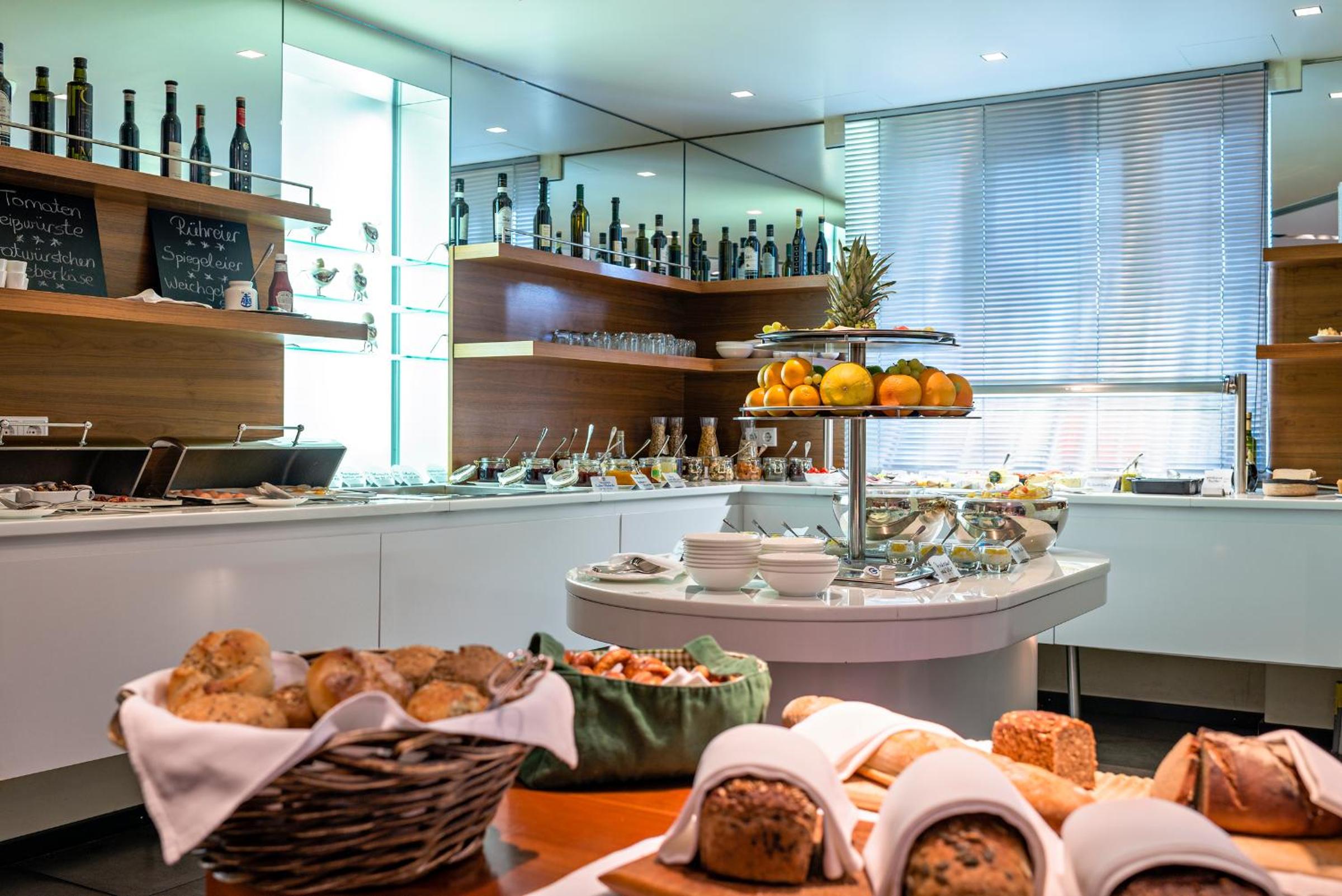 Guests can indulge in regional Bavarian dishes for lunch and dinner at the hotel's restaurant. Additionally, a variety of single malts, wines, and cocktails are available on the terrace, perfect for unwinding after a long day of sightseeing.