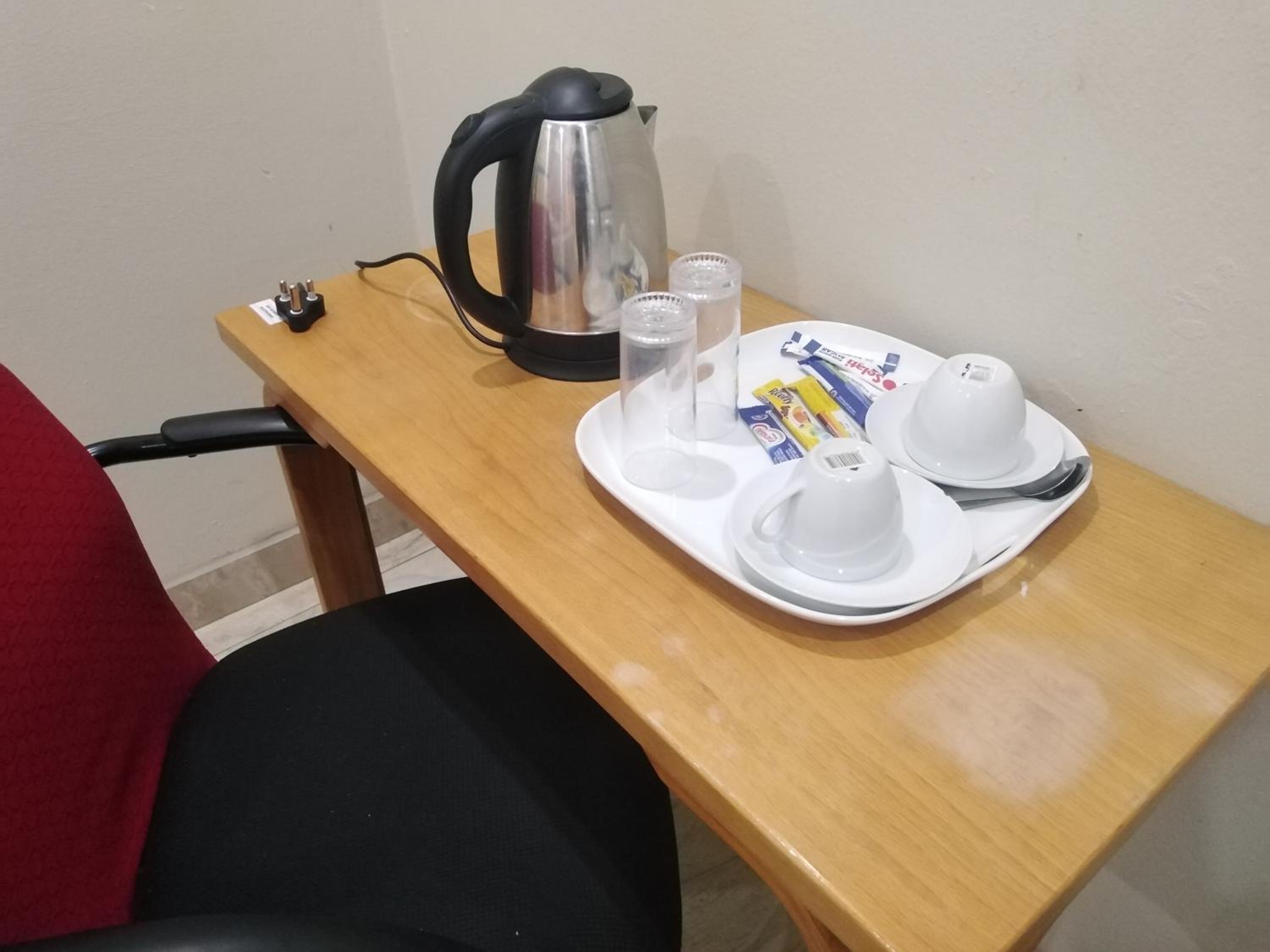 Tea/ cofee making facilities were not available in the room. It could be more pleasant if you could provide a kettle and cup in the rooms as part of the package.