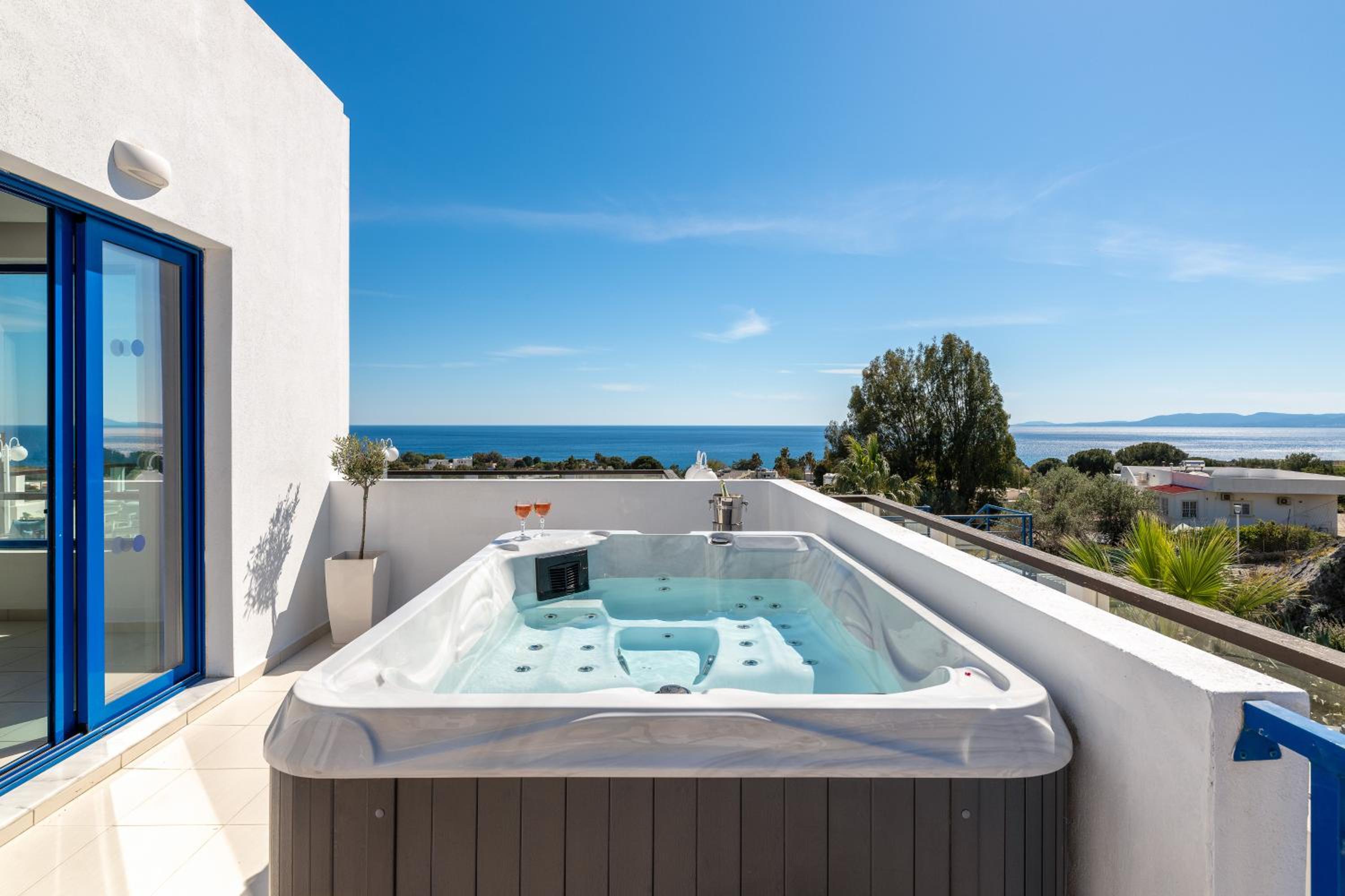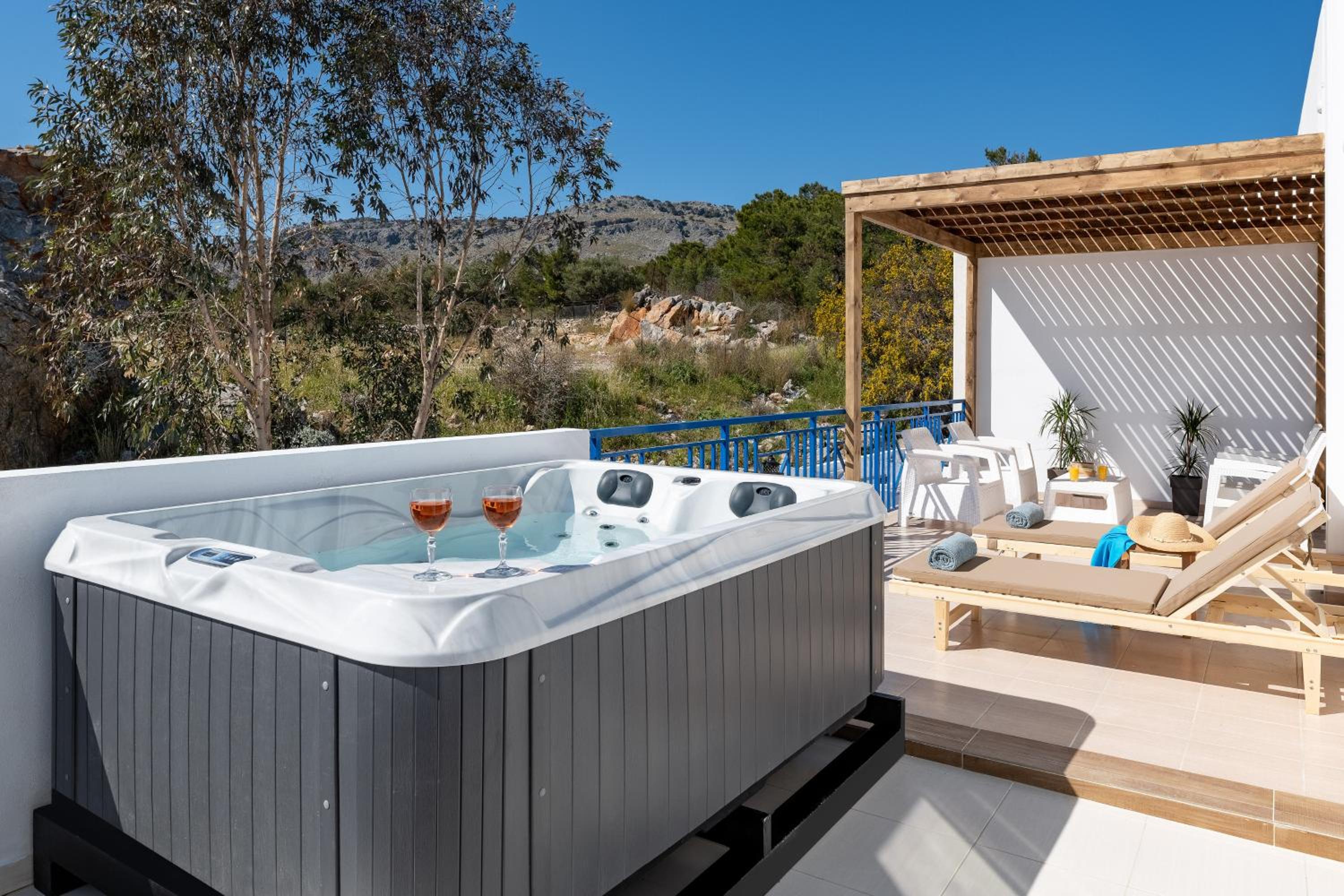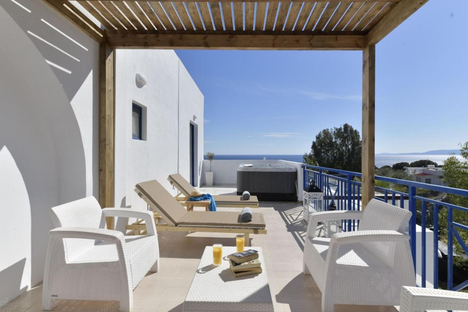L'emplacement est parfait, l'hôtel très calme. A 20mn à pied du centre de Pefki. Nous avions une belle chambre avec une terrasse magnifique. Vue mer avec jacuzzi, bain de soleil et salon de jardin. La literie est très confortable. Le petit-déjeuner est très complet avec un chef qui vous cuisine des omelettes à volonté. Du jus d'orange frais et beaucoup de choix aussi bien sucré que salé avec des produits locaux. Merci à l'ensemble du personnel pour sa gentillesse et sa serviabilité.