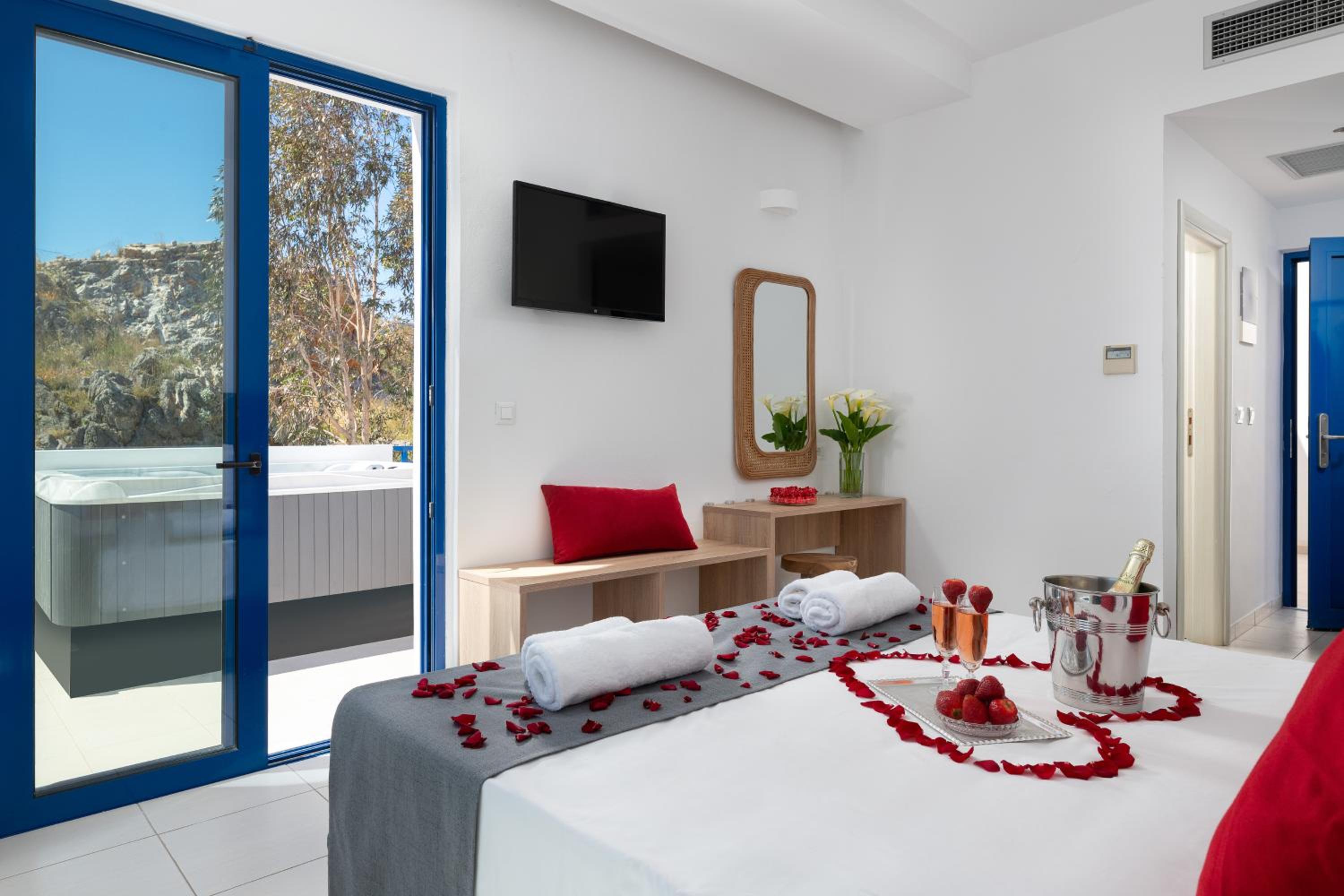 Είχαμε κλήση την junior suite με την ιδιωτική πισίνα, ο Κύριος στη ρεσεψιόν ήταν πολύ ευγενικός και μας ενημέρωσε για τις υπηρεσίες του ξενοδοχείου, το δωμάτιο ήταν καθαρό και το πρωινό είχε τα πάντα...
