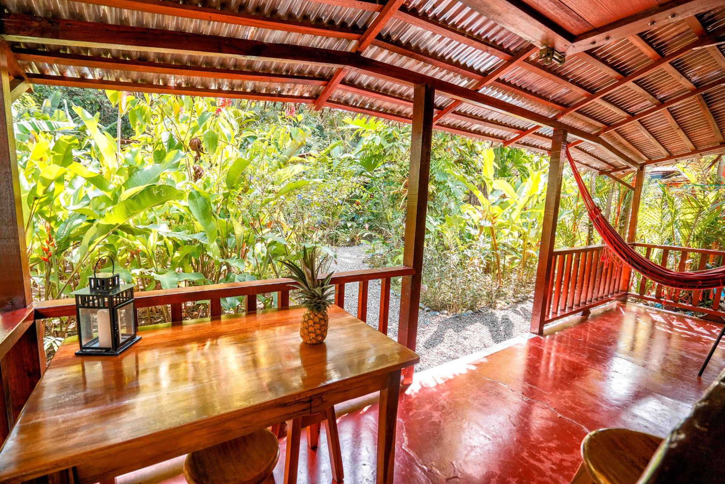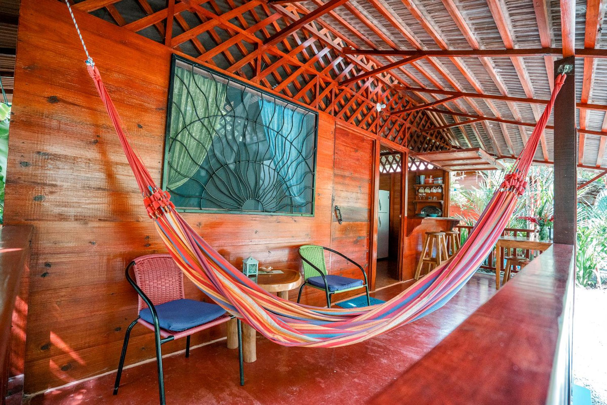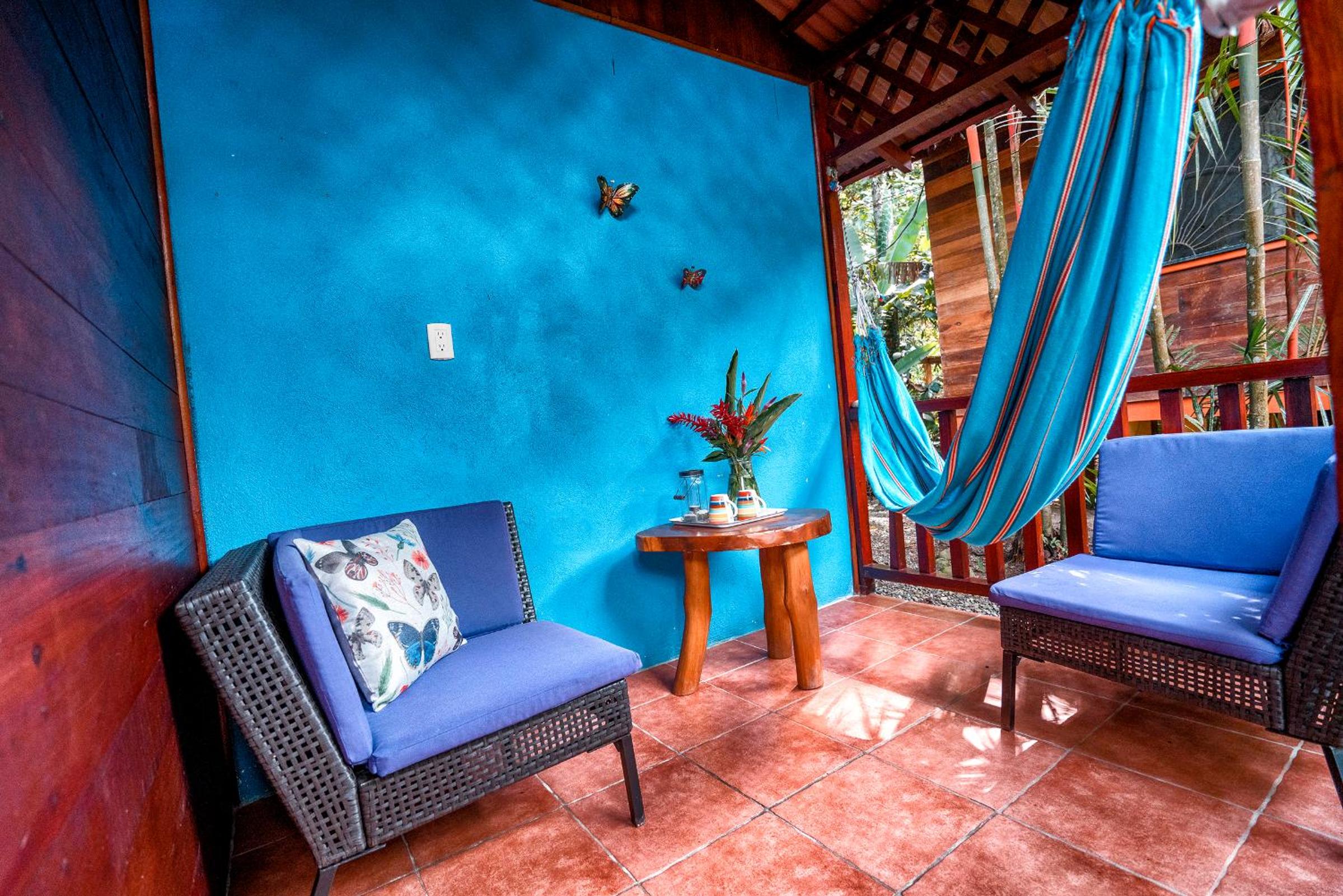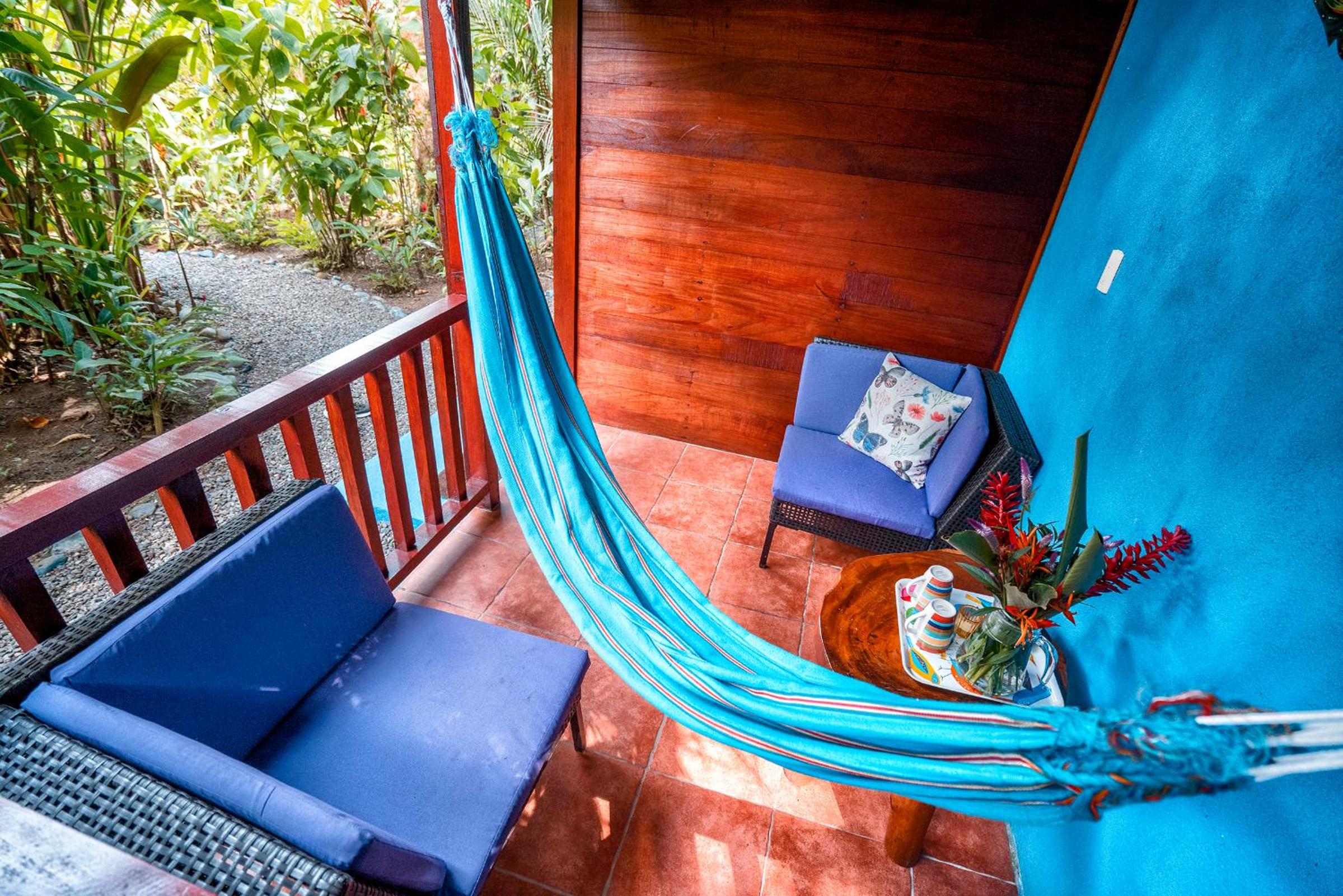 Comfortable Amenities: Each bungalow at Casitas Las Flores features a seating area, private bathroom with free toiletries, fan, and mosquito net for a peaceful night's sleep. Enjoy the outdoor furniture and hammock on the terrace overlooking the garden.