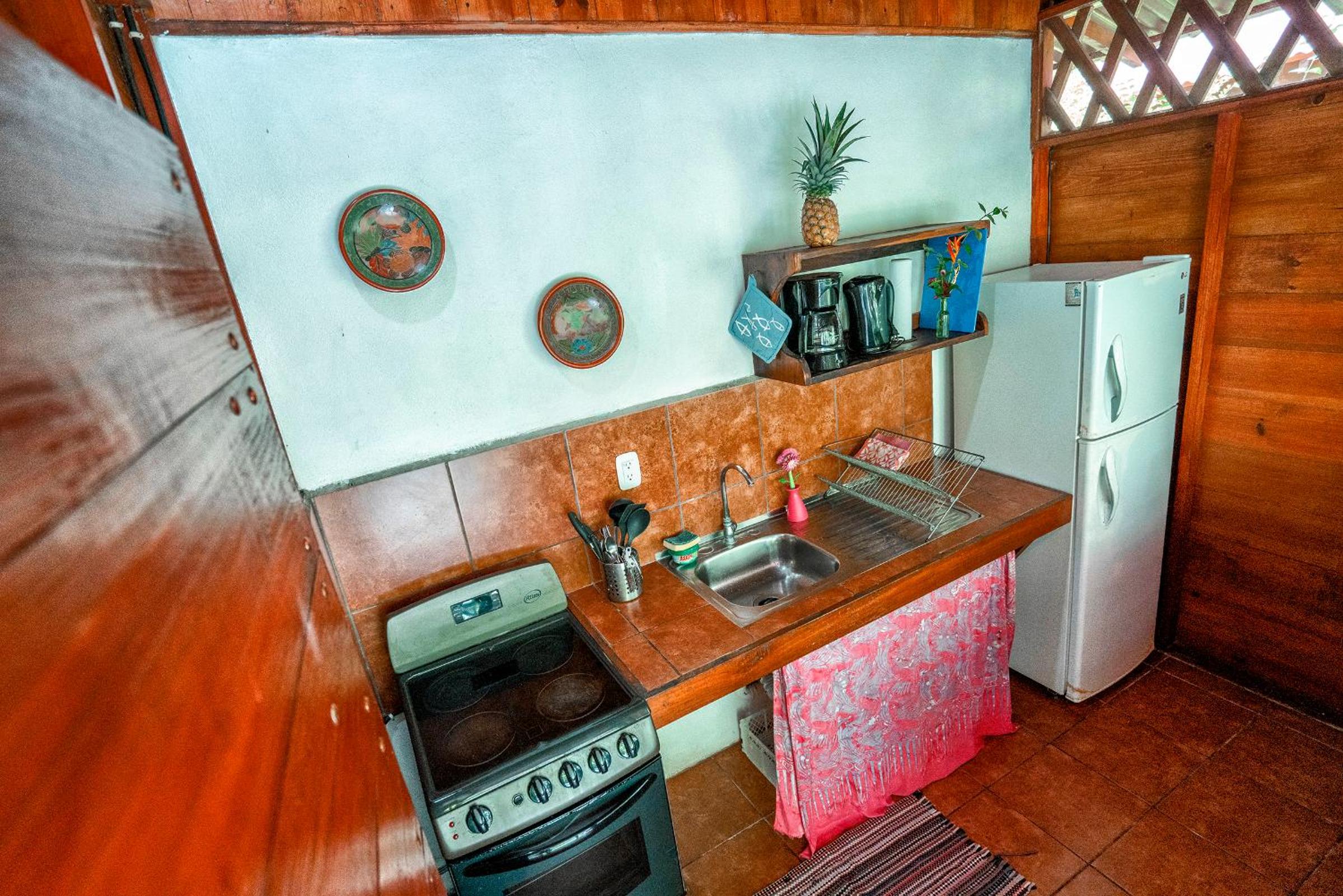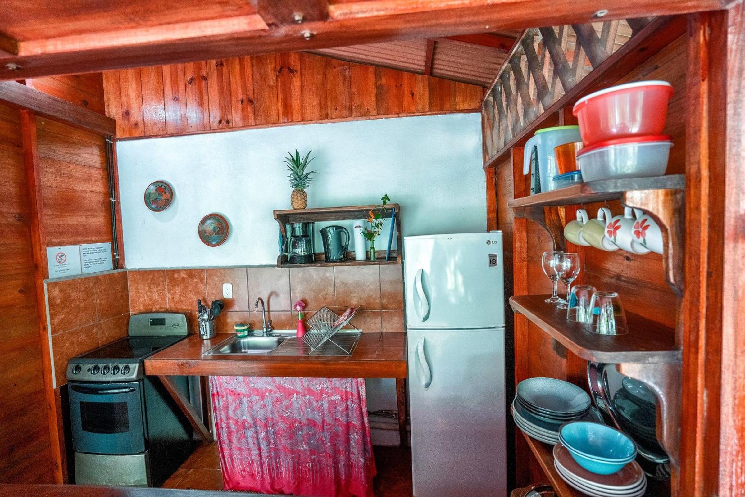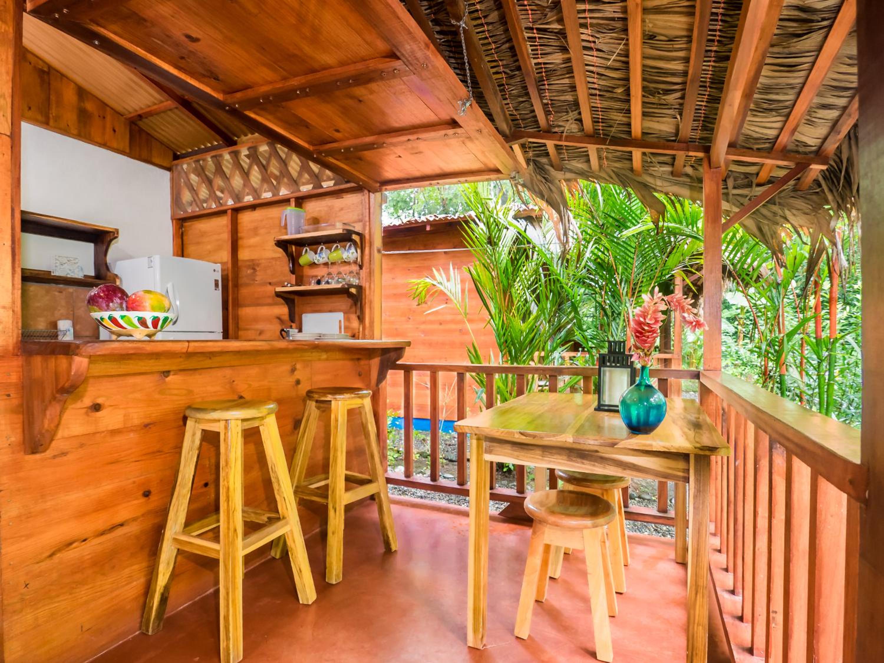 Lovely little cabin in a lovely jungle garden. Only 5 mins walk to Playa Negra, and 15 into the centre of Puerto Viejo. Kitchen has everything one needs for basic cooking. At night only the sounds of the jungle are all around.