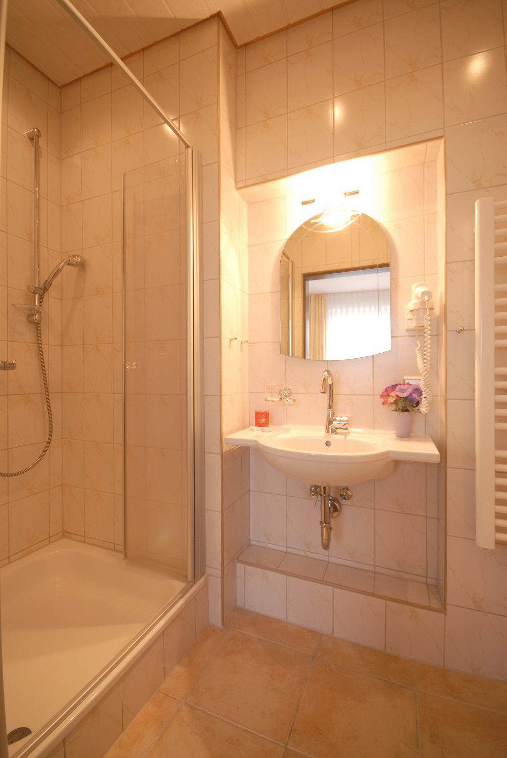 Der Einstieg zur Dusche ist nur was fûr sportler,das Badezimmer ist in die Jahre gekommen