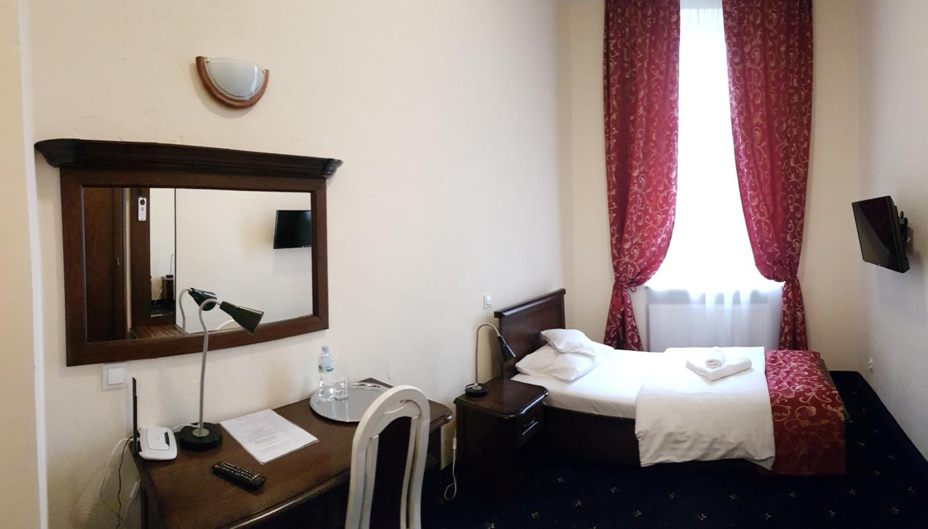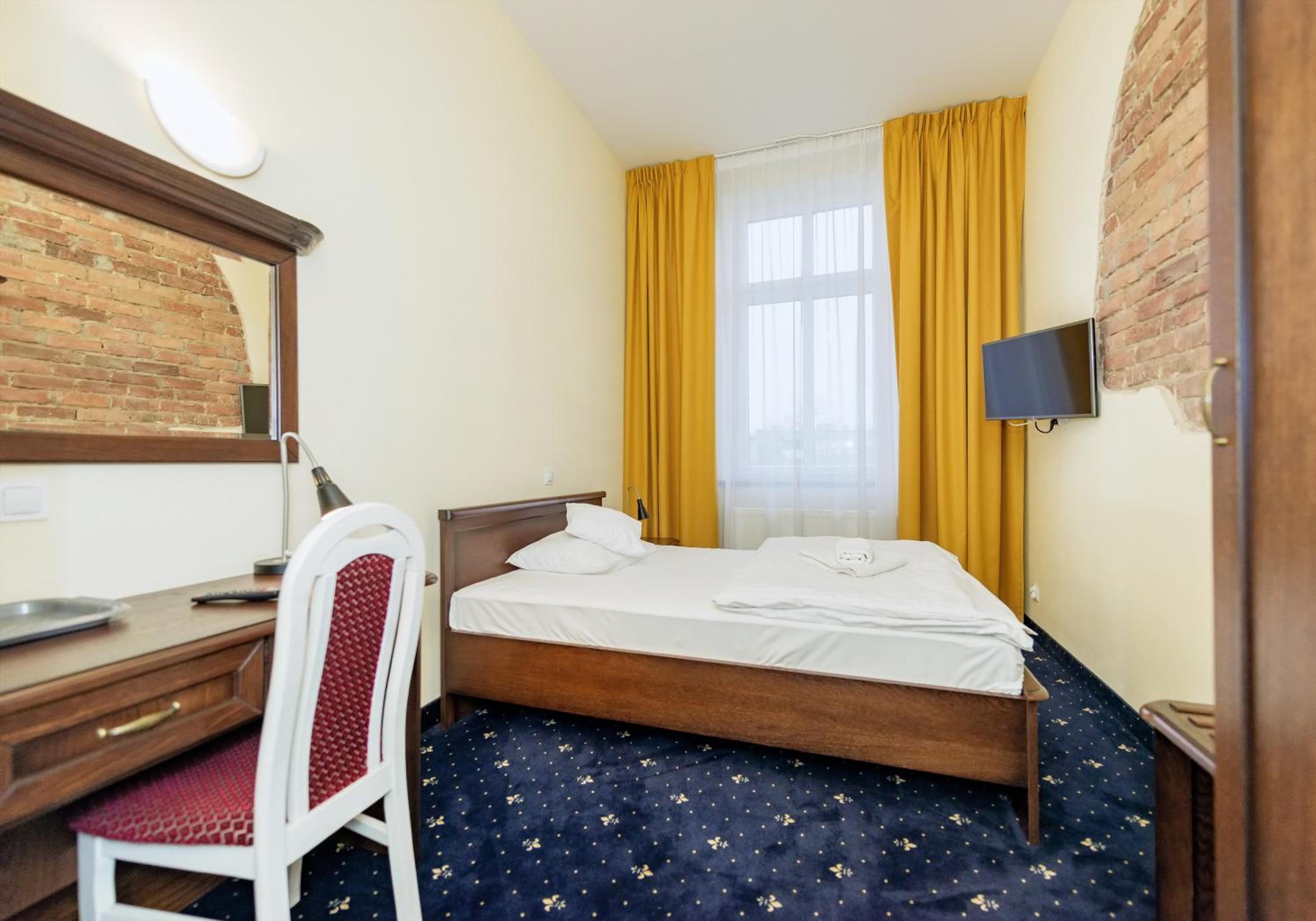 Bardzo skrzypiące materace, strach było poruszyć się by wzajemnie nie budzić się. Rano bolały nas plecy od sprężyn. W łazience obluzowany kran przy umywalce, wypaczona futryna drzwi od łazienki oklejona czarną taśmą - od nie wiem kiedy wisi kartka "przepraszamy trwa remont" ale jakoś go nie widać... Widać, że hotel lata świetności ma już za sobą, broni się lokalizacją. Do tego wszystkiego rozkopana ulica, brak możliwości dojazdu, hałas - choć to już nie wina hotelu.