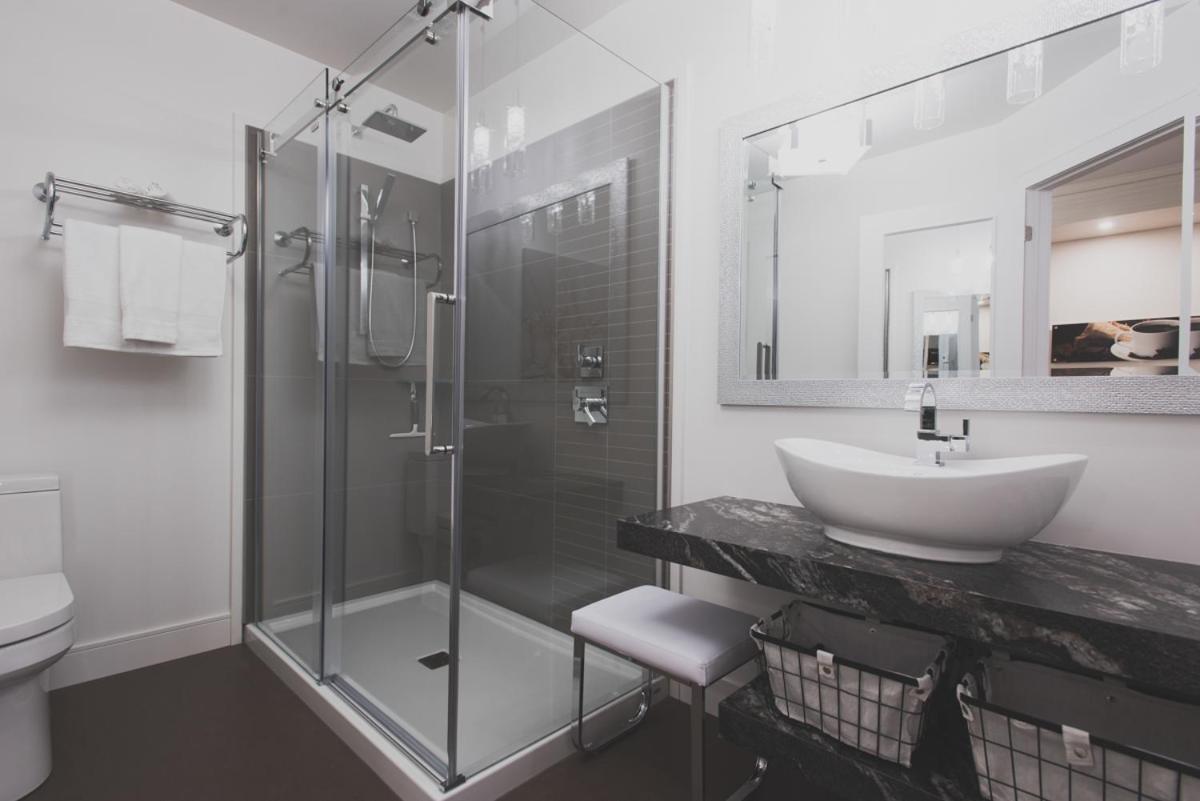 Les suites de la chocolaterie in Ville-Marie offers a luxurious stay with well-equipped rooms featuring air conditioning, flat-screen TVs, and modern amenities like a coffee machine and free toiletries.