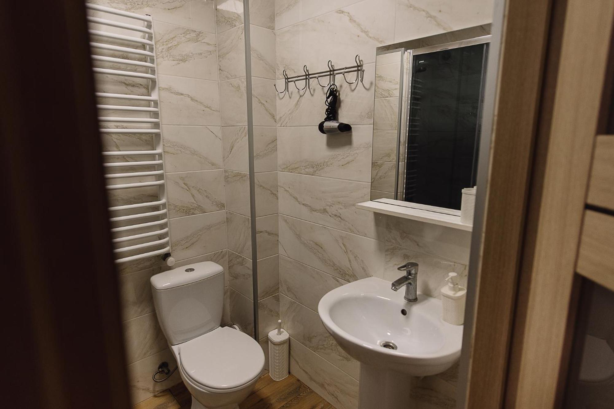 Ремонт хоч і свіжий, але вже трохи використаний. Двері від вологи в ванну розбухли(