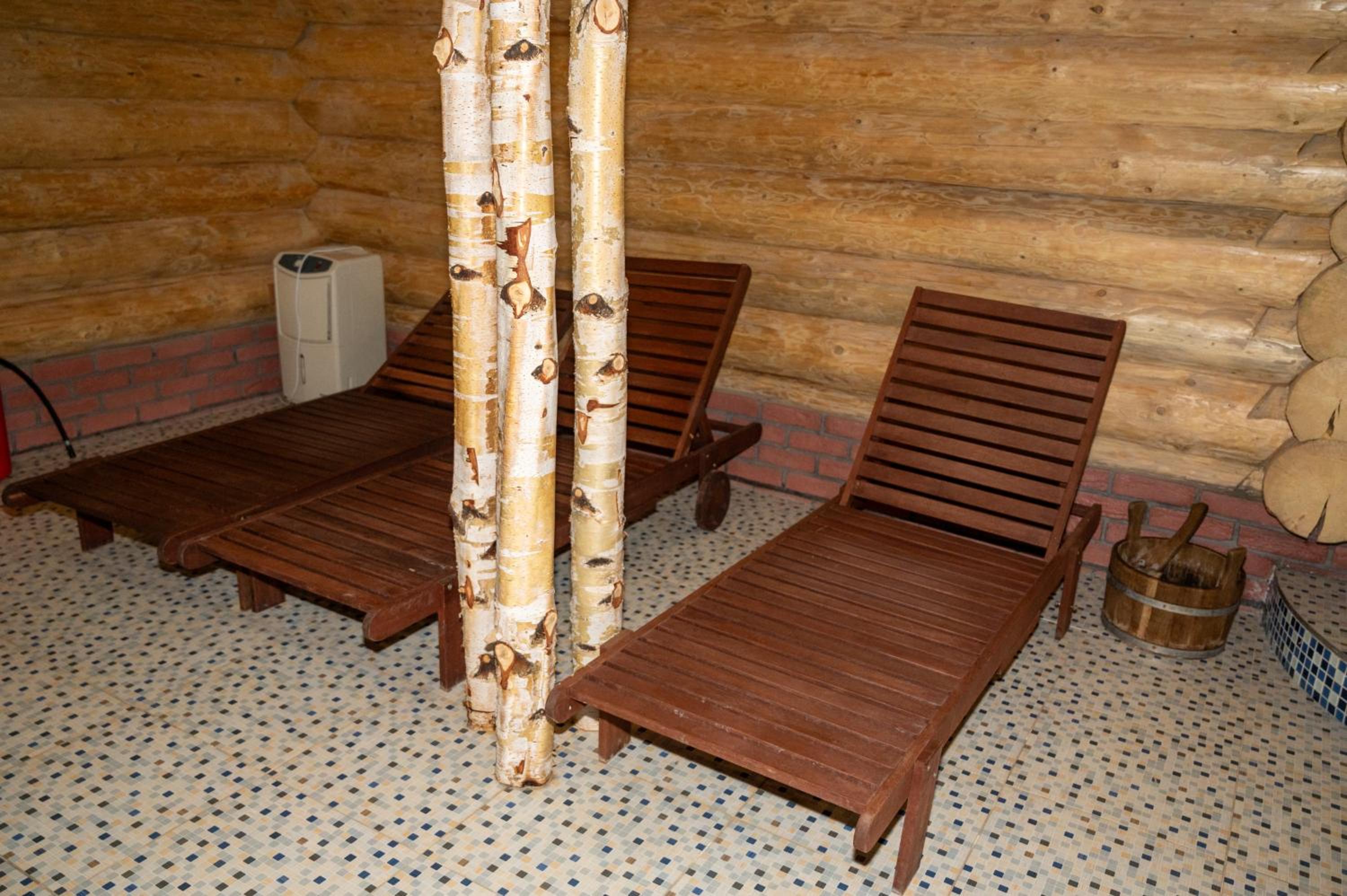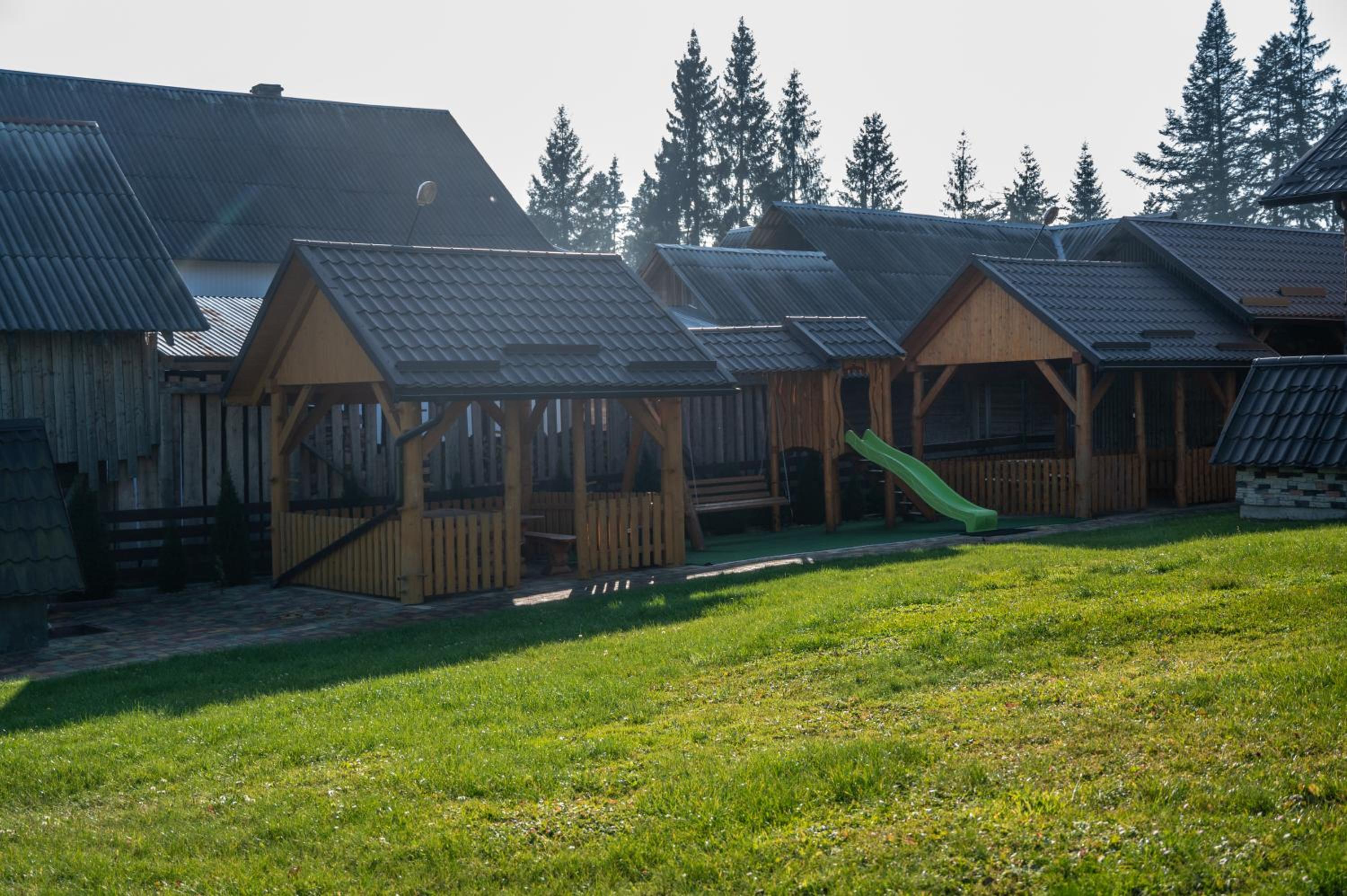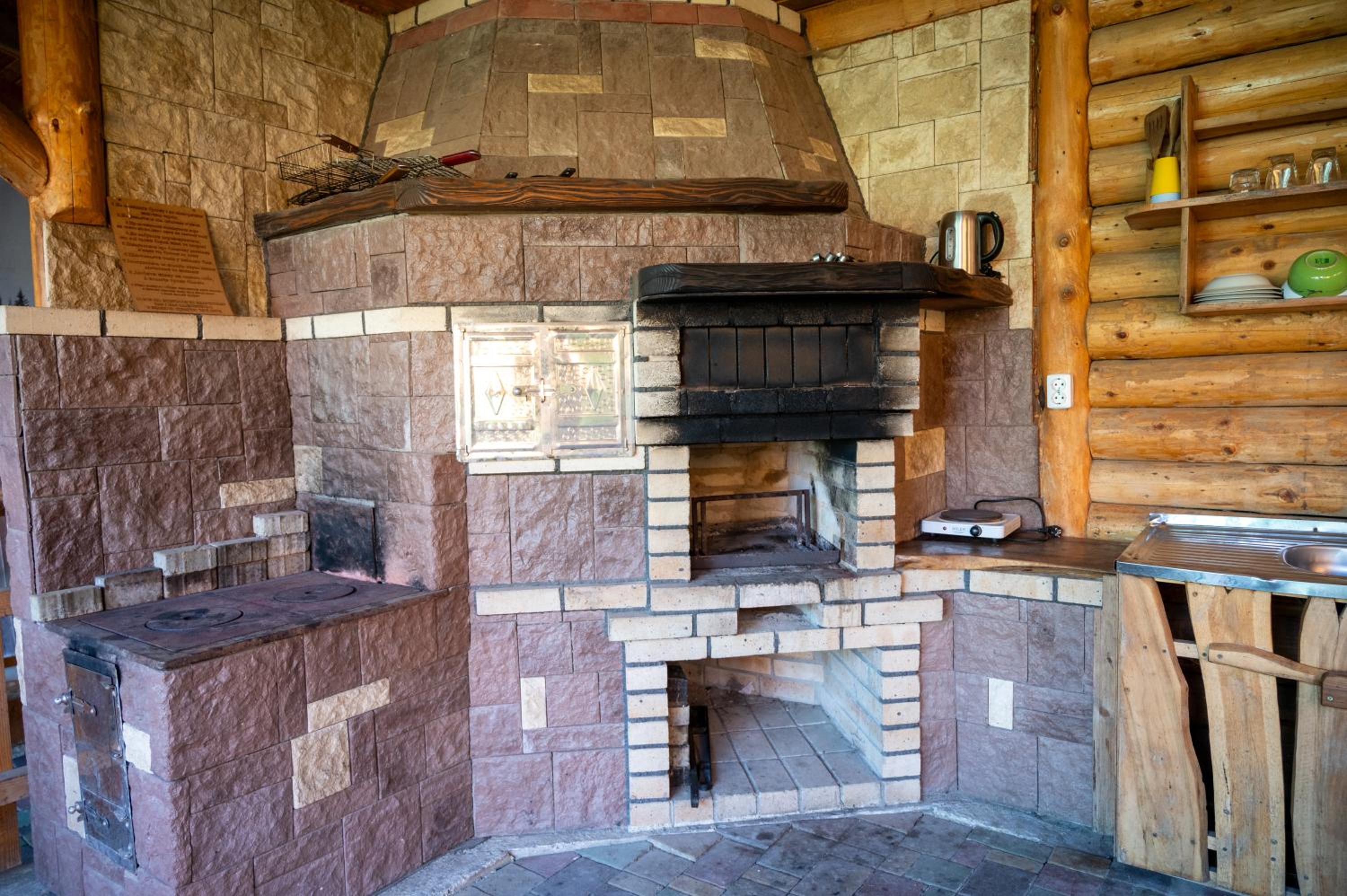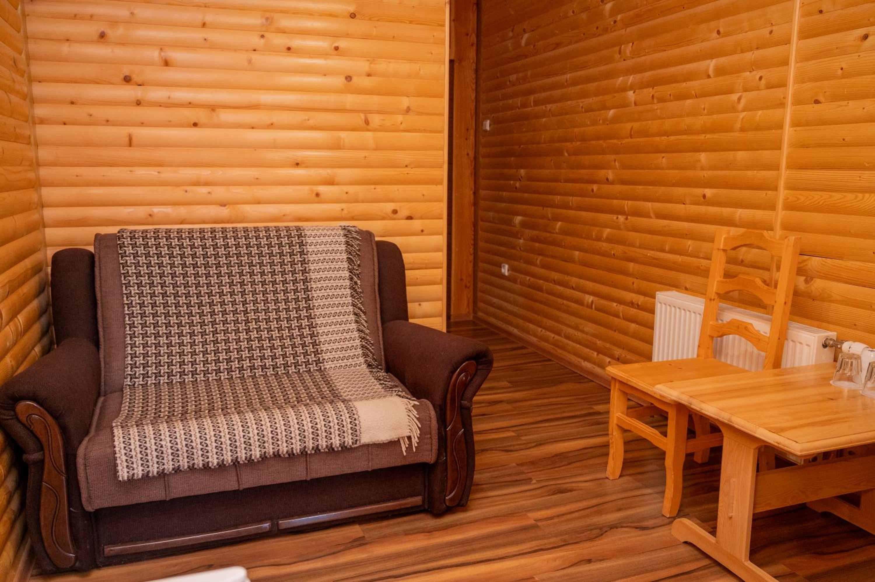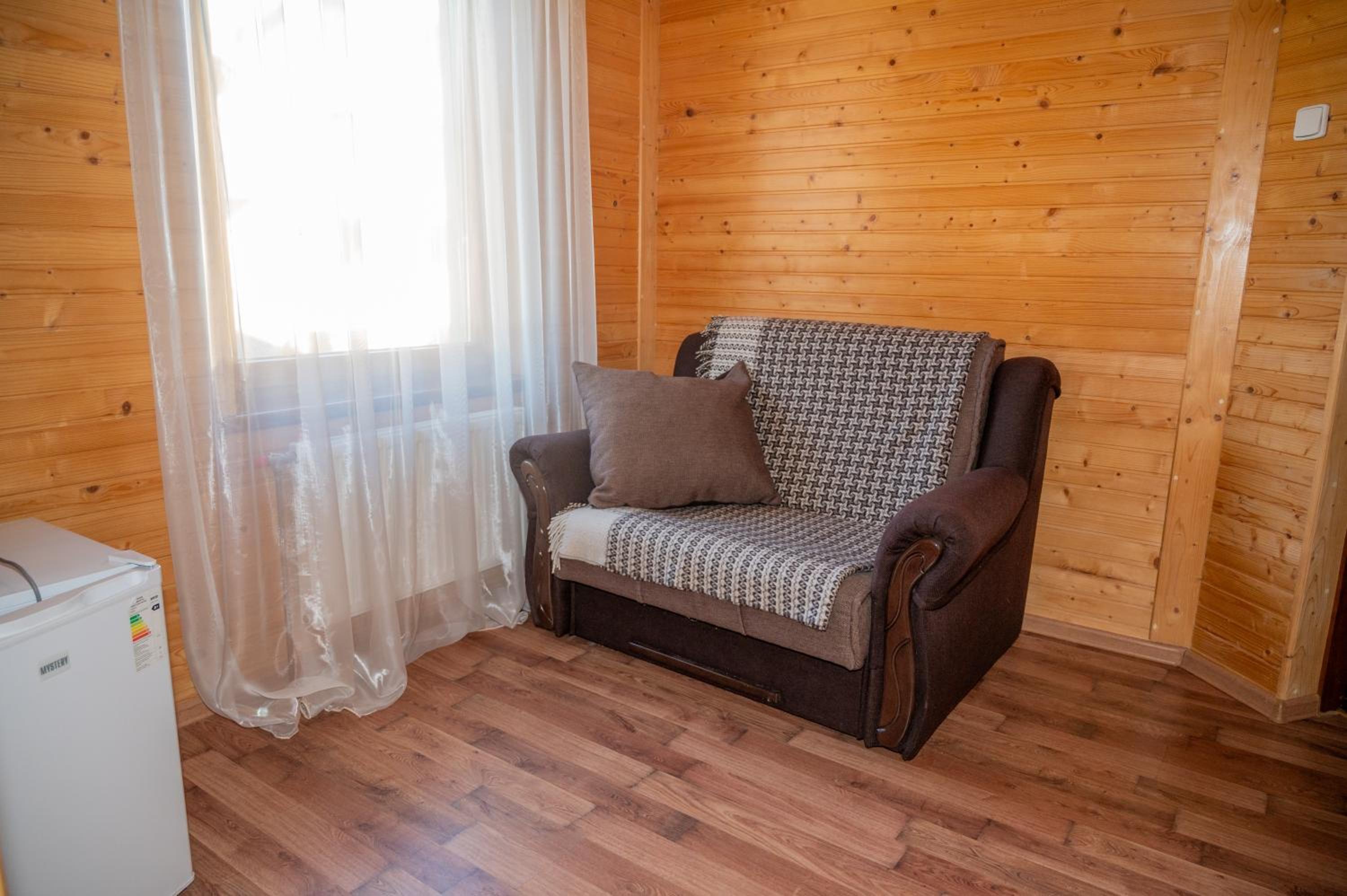 Заявлені дрібниці всі в наявності: холодильник із морозилкою в номері, чайник, фен та мило, гель для душу, шампунь у ванній кімнаті, капці у передпокої. Є басейн (невеличкий, без підігріву, проте за день дуже добре нагрівався на сонці, тому плавала і малеча, і дорослі), сауна, гарячі бочки, мангал, піч, альтанки, шезлонги та парасолі від сонця, м'якенький газон, місце для парковки, територія вся під відеоспостереженням.