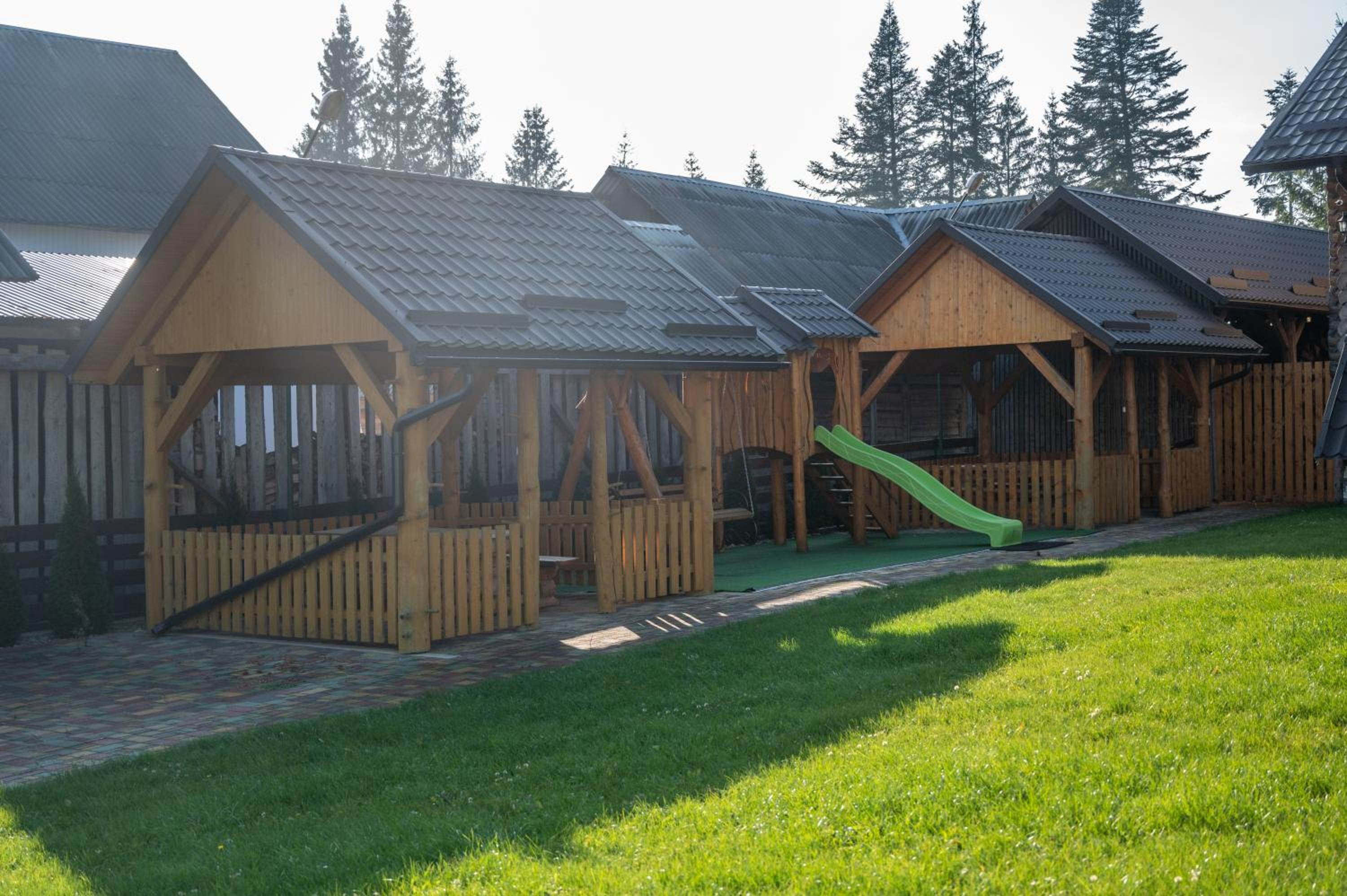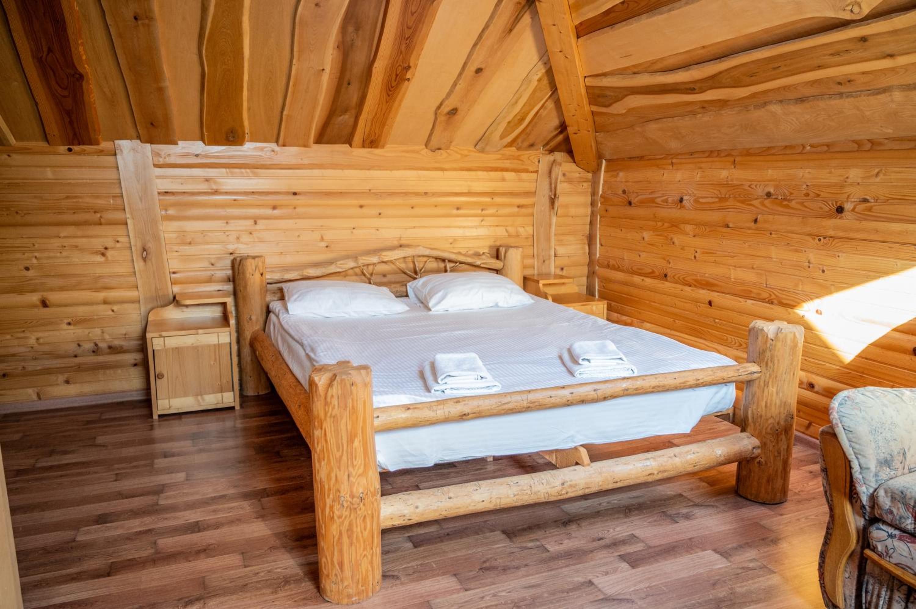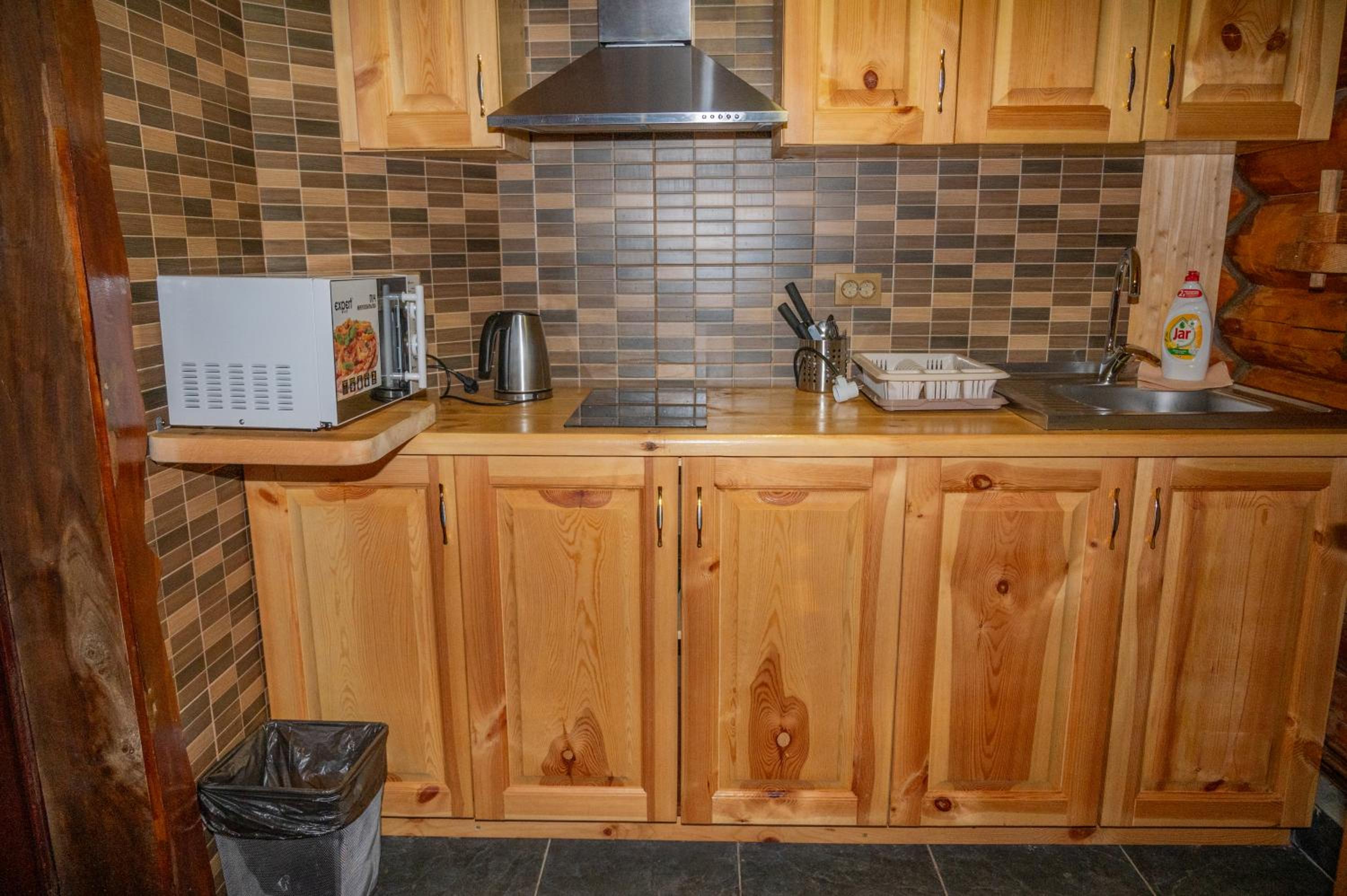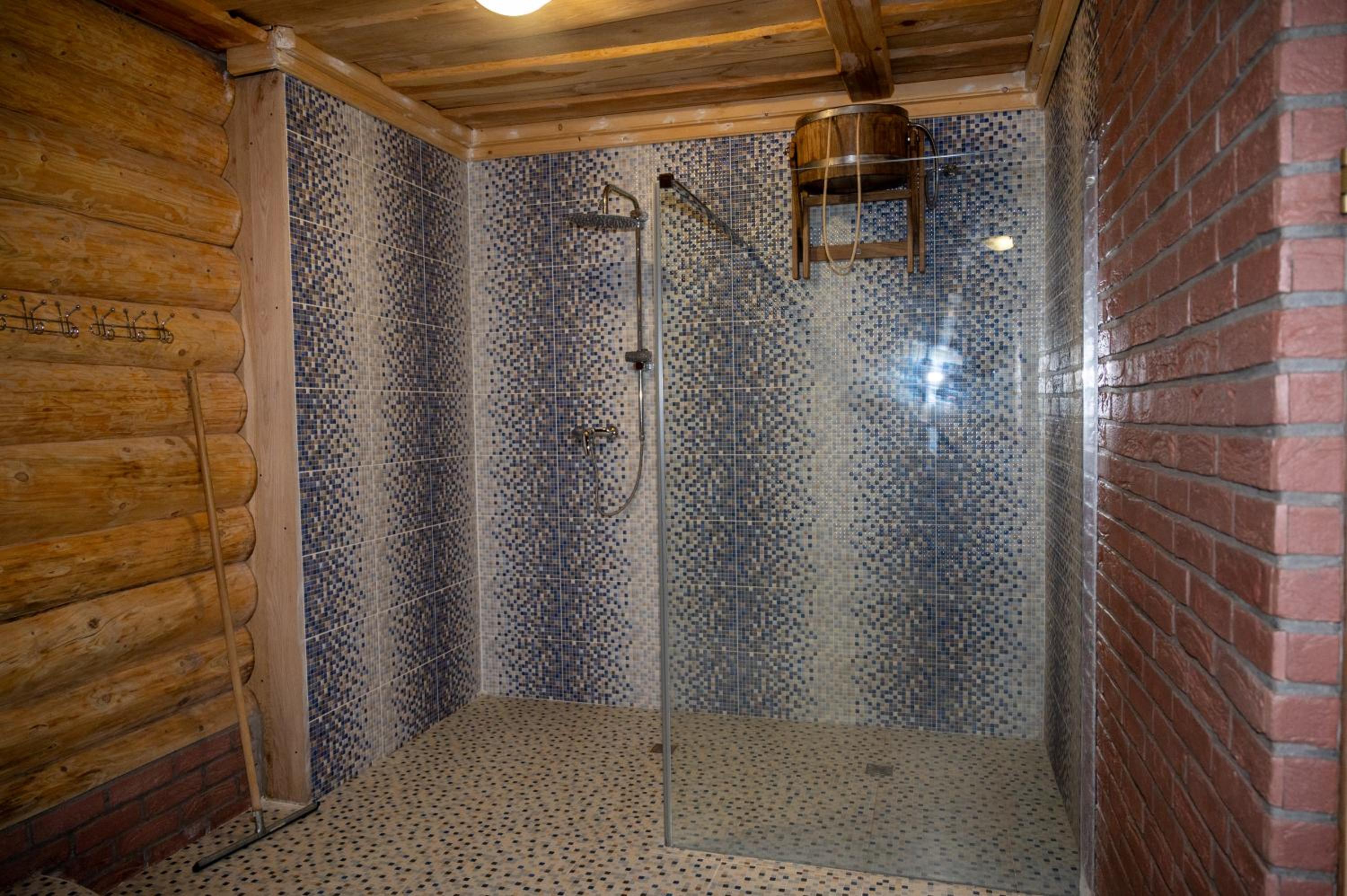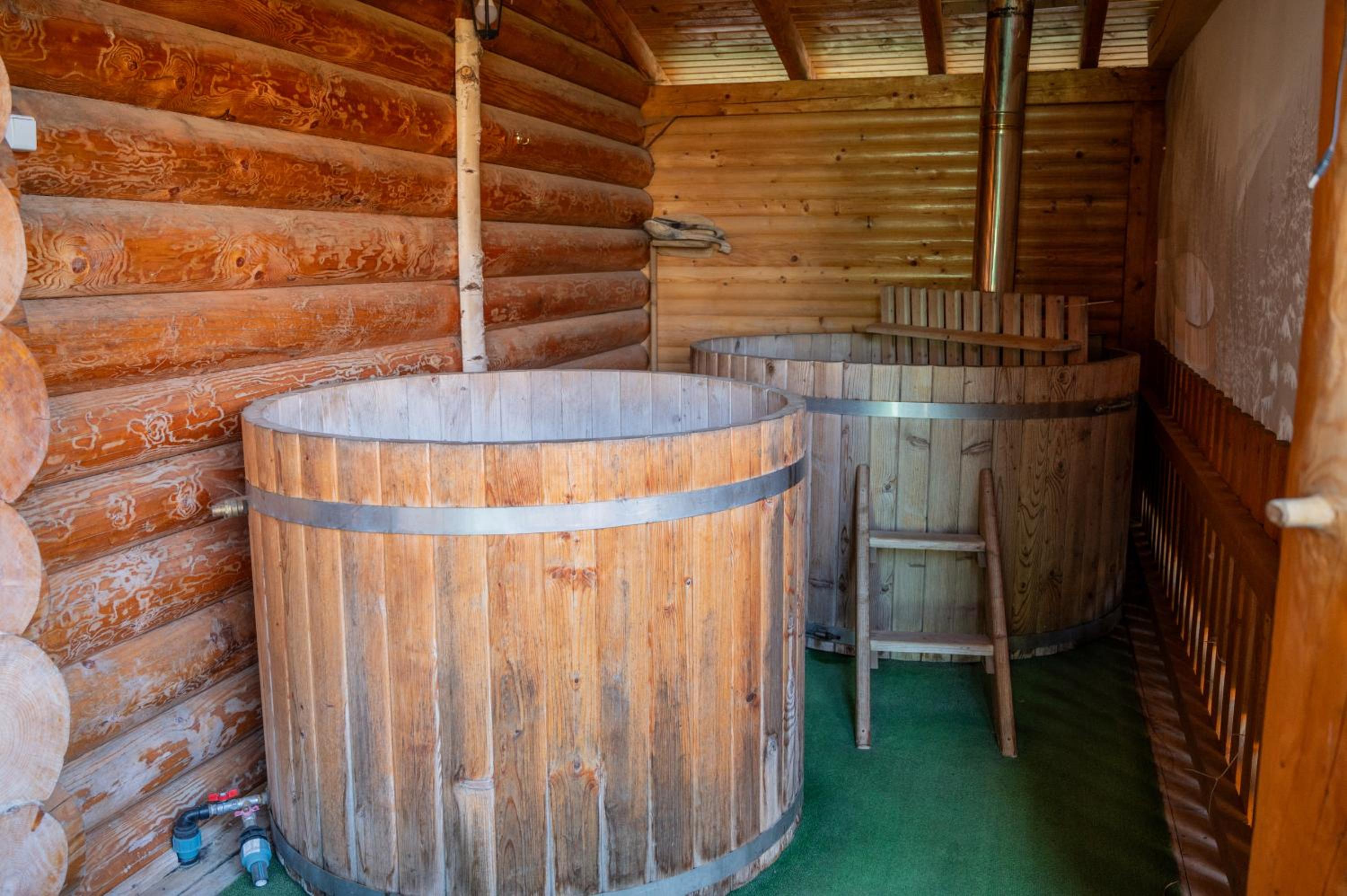 Заявлені дрібниці всі в наявності: холодильник із морозилкою в номері, чайник, фен та мило, гель для душу, шампунь у ванній кімнаті, капці у передпокої. Є басейн (невеличкий, без підігріву, проте за день дуже добре нагрівався на сонці, тому плавала і малеча, і дорослі), сауна, гарячі бочки, мангал, піч, альтанки, шезлонги та парасолі від сонця, м'якенький газон, місце для парковки, територія вся під відеоспостереженням.