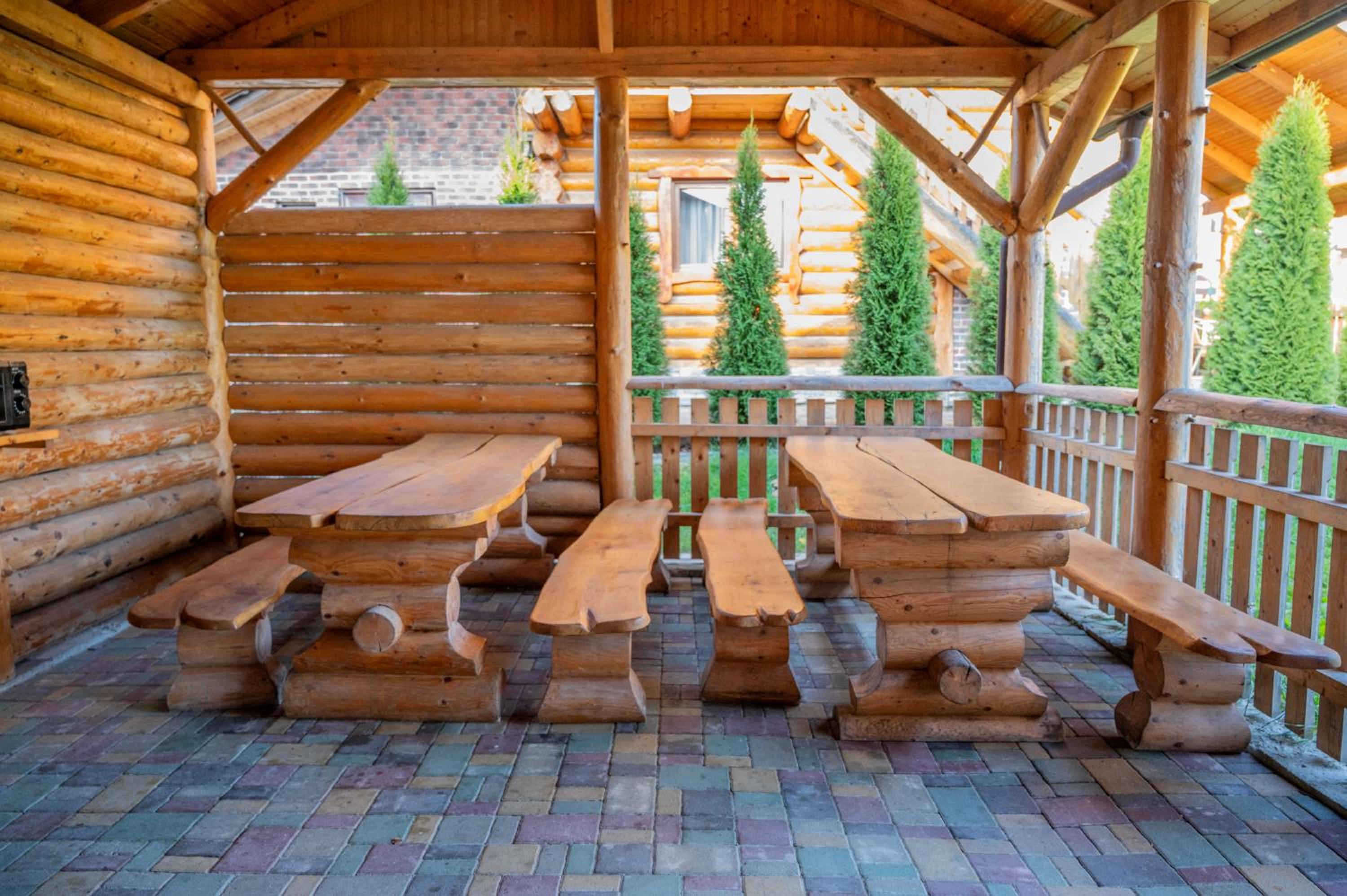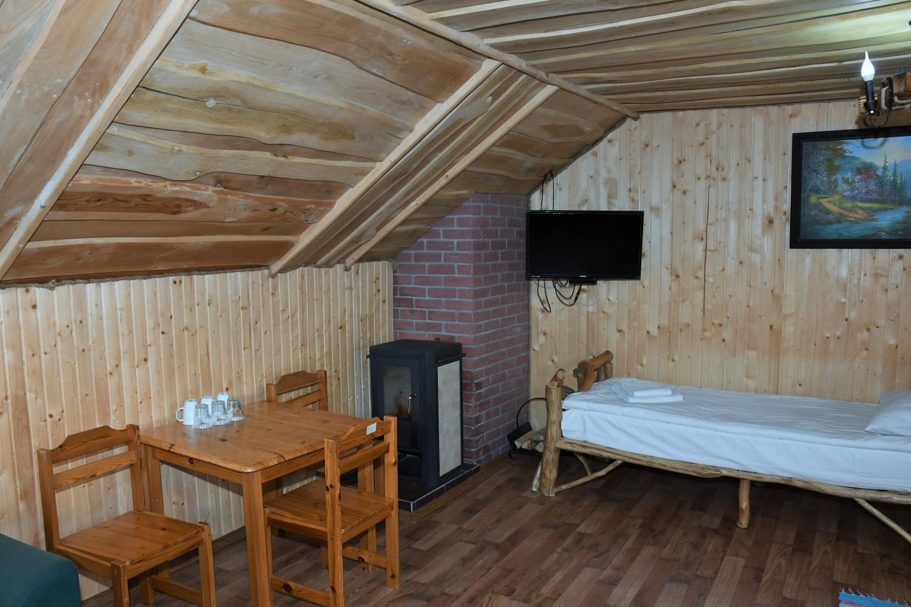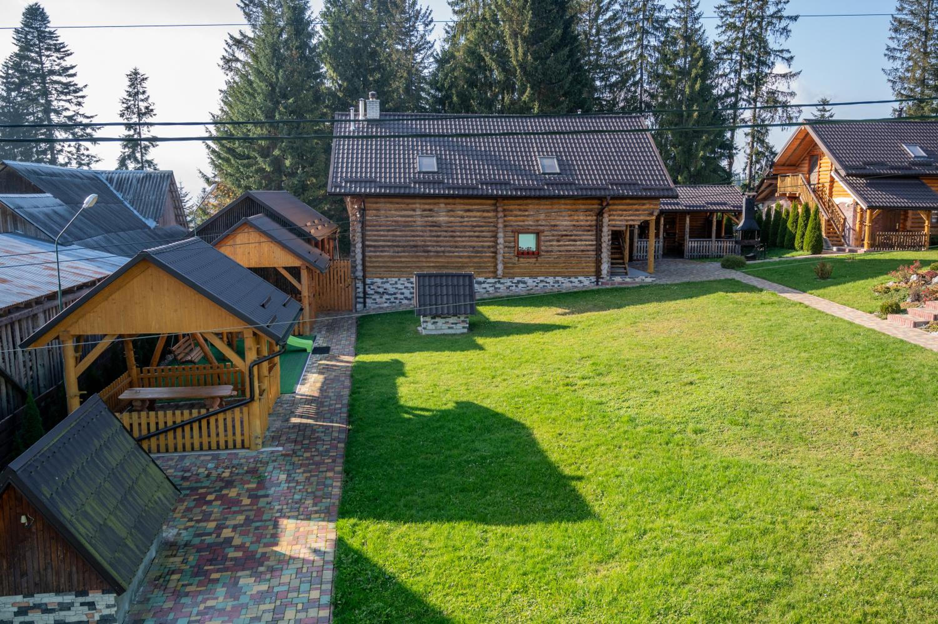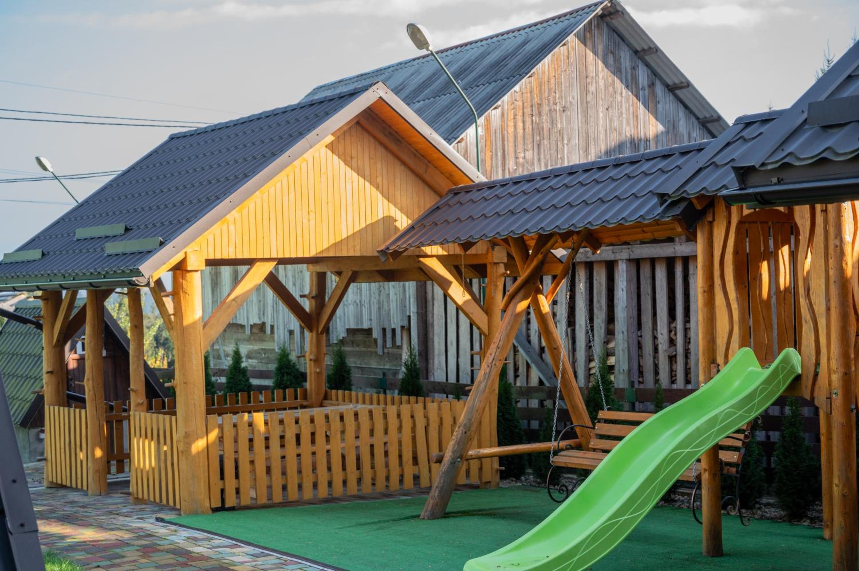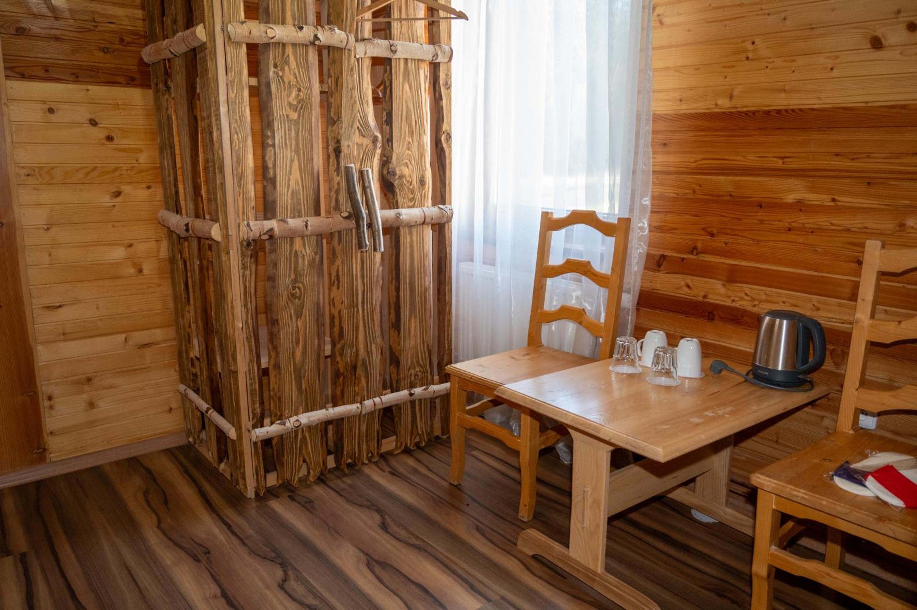 Заявлені дрібниці всі в наявності: холодильник із морозилкою в номері, чайник, фен та мило, гель для душу, шампунь у ванній кімнаті, капці у передпокої. Є басейн (невеличкий, без підігріву, проте за день дуже добре нагрівався на сонці, тому плавала і малеча, і дорослі), сауна, гарячі бочки, мангал, піч, альтанки, шезлонги та парасолі від сонця, м'якенький газон, місце для парковки, територія вся під відеоспостереженням.