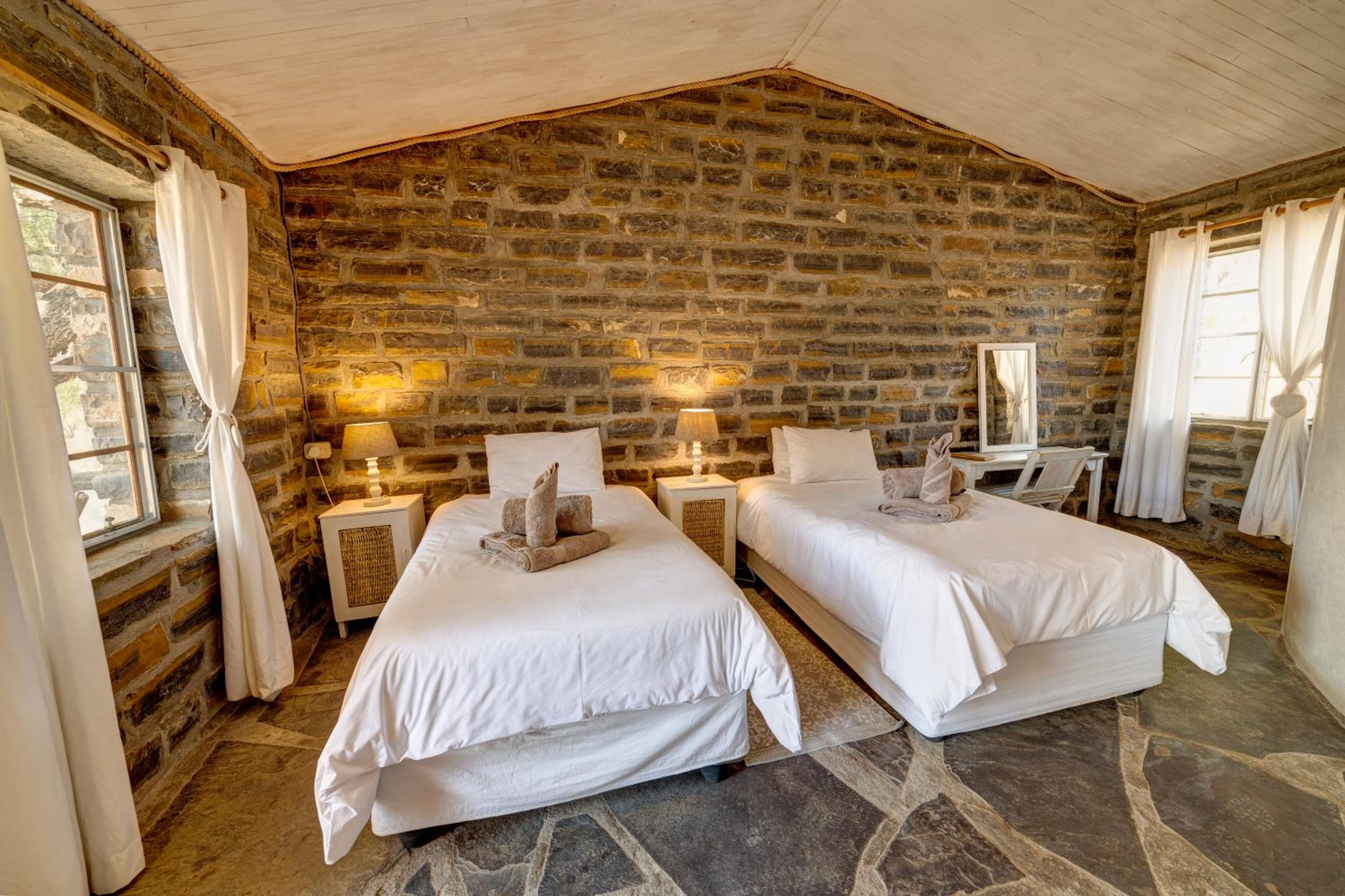 Neuras Wine & Wildlife Estate, located conveniently between Sesriem and Namib Naukluft Mountain Zebra Park, offers a range of accommodation options, each with its own outside seating area and provided with top-quality linen and bathroom amenities.